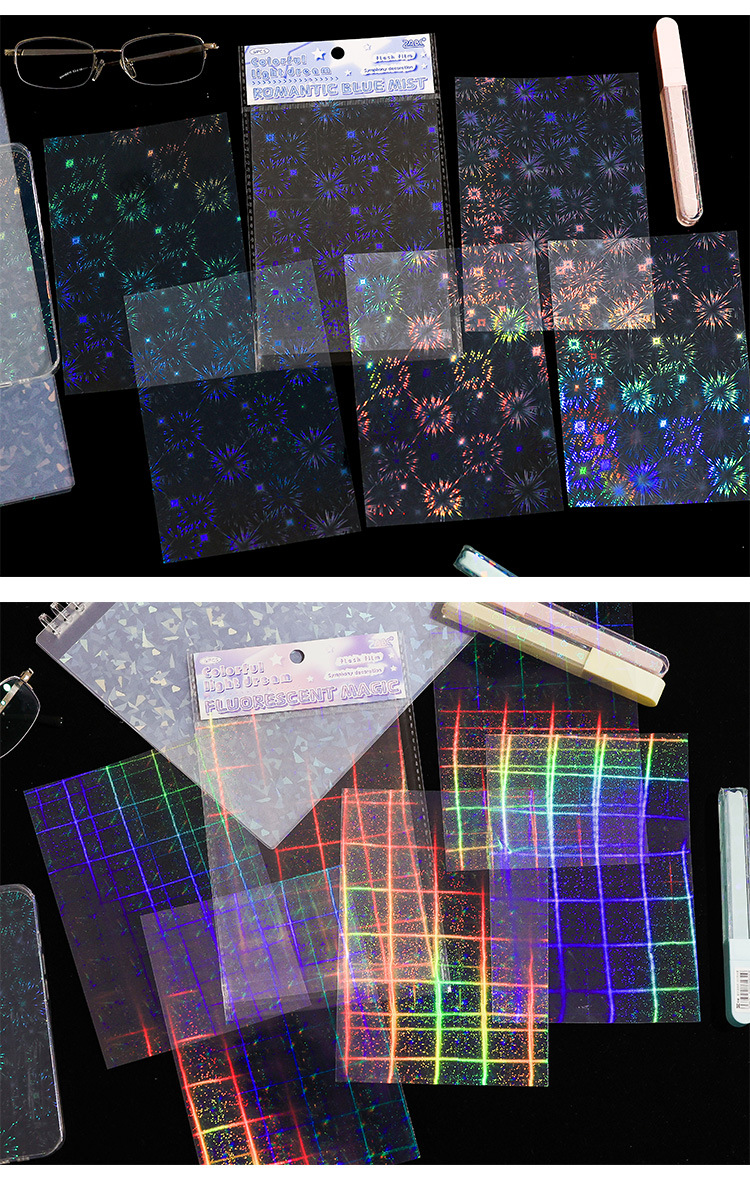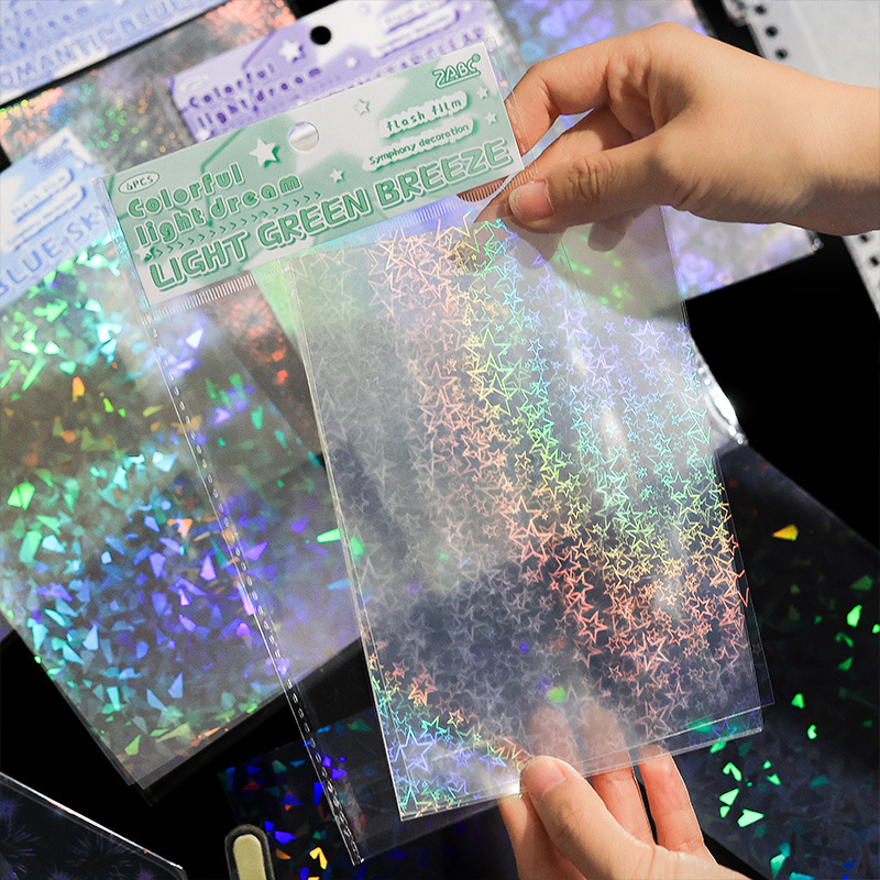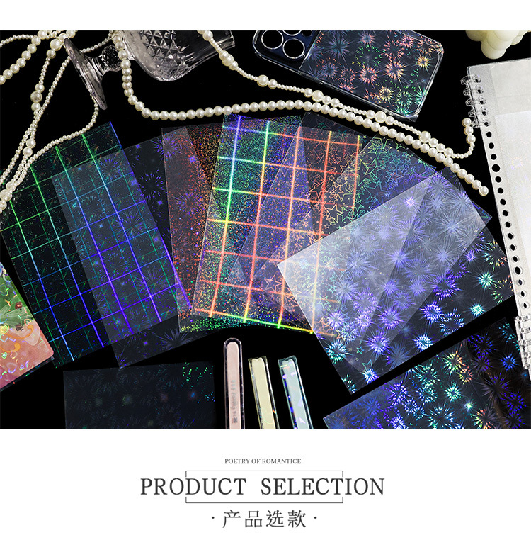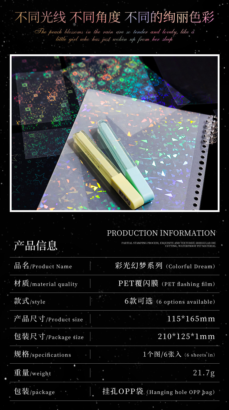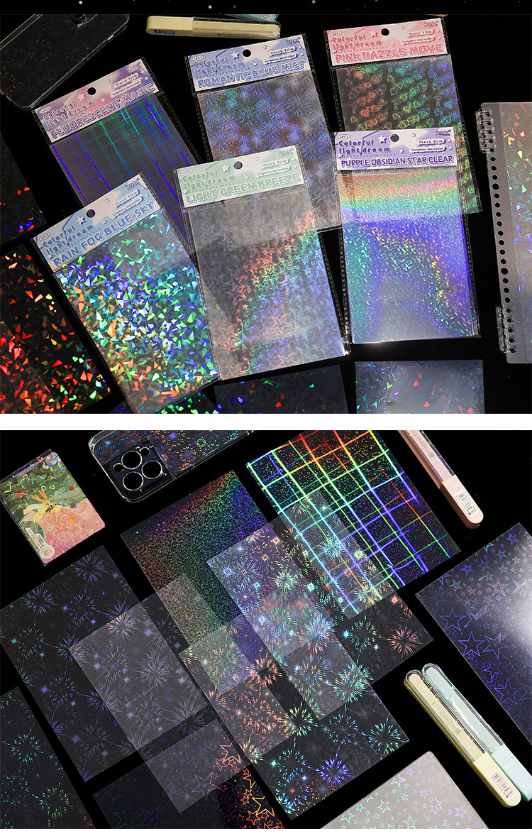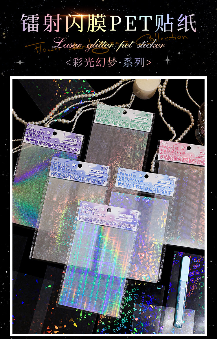 Yuezhen красочный свет фэнтези лазерная вспышка пленки ручной счет пакет наклейки трансграничный водонепроницаемый pet наклейка ручной счет материал наклейки