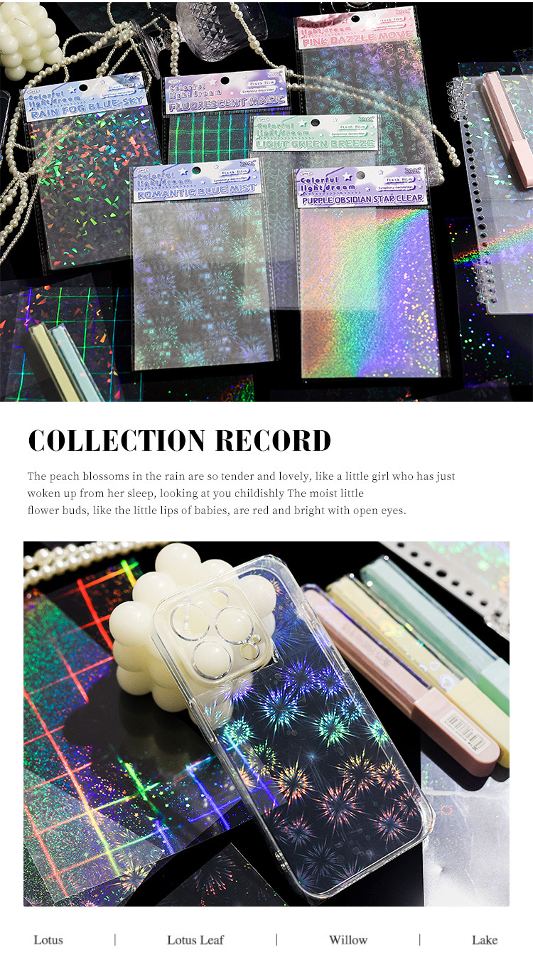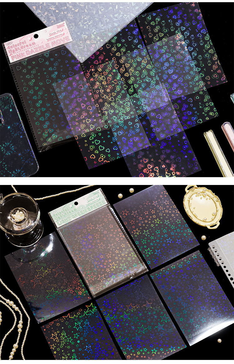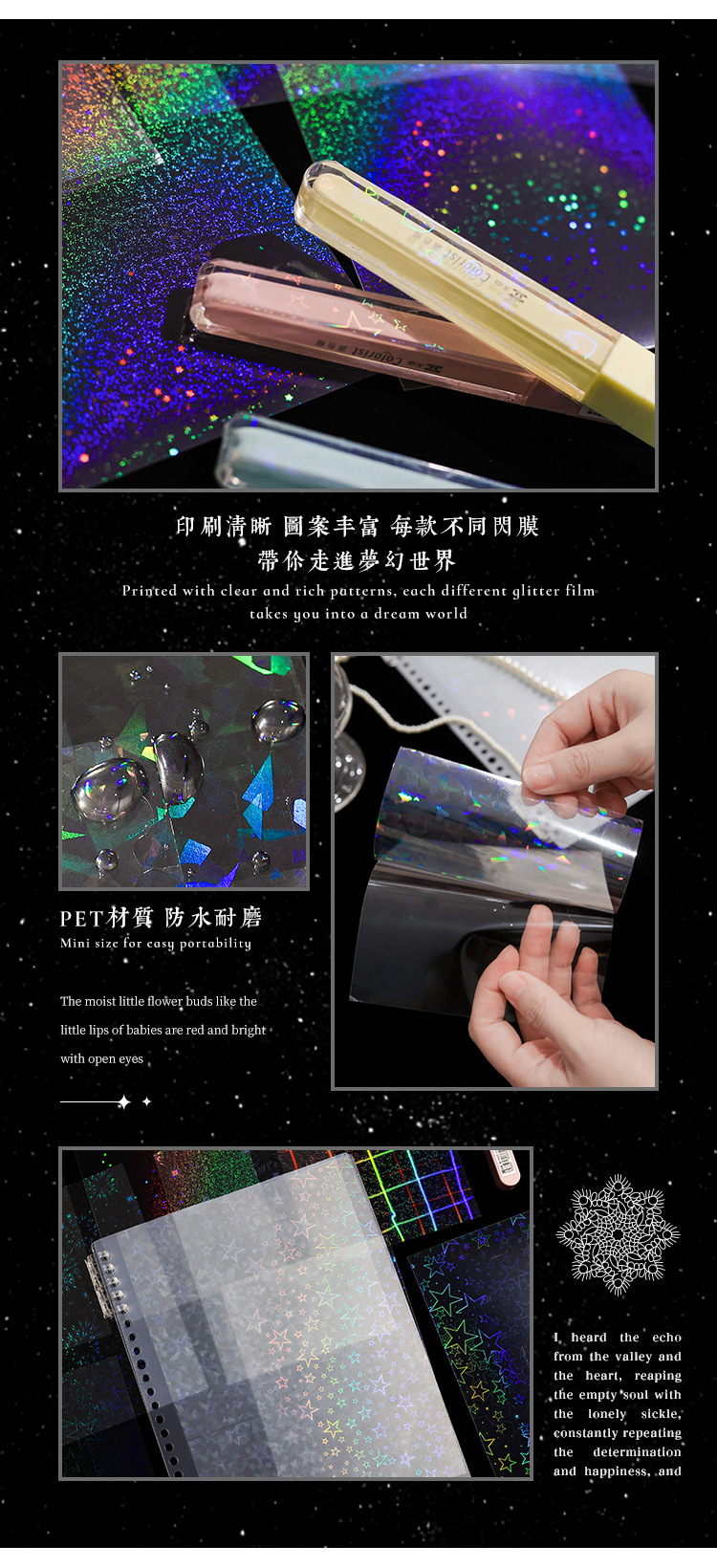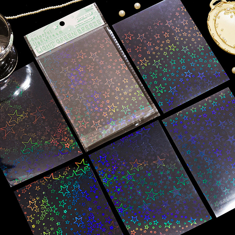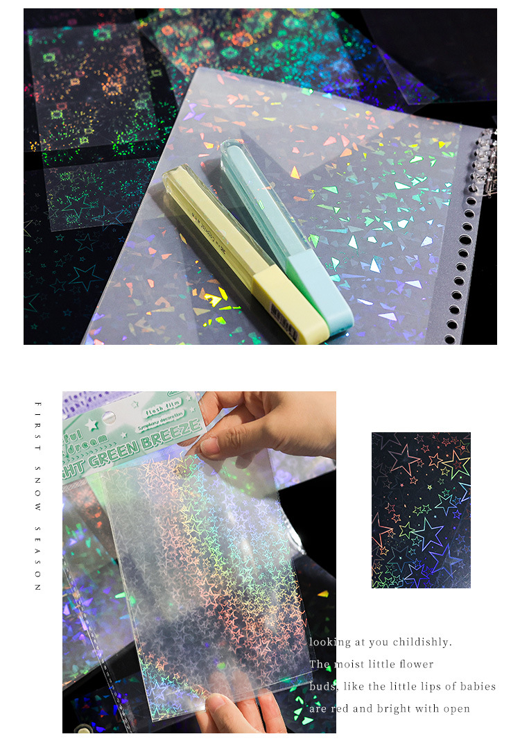 Yuezhen красочный свет фэнтези лазерная вспышка пленки ручной счет пакет наклейки трансграничный водонепроницаемый pet наклейка ручной счет материал наклейки