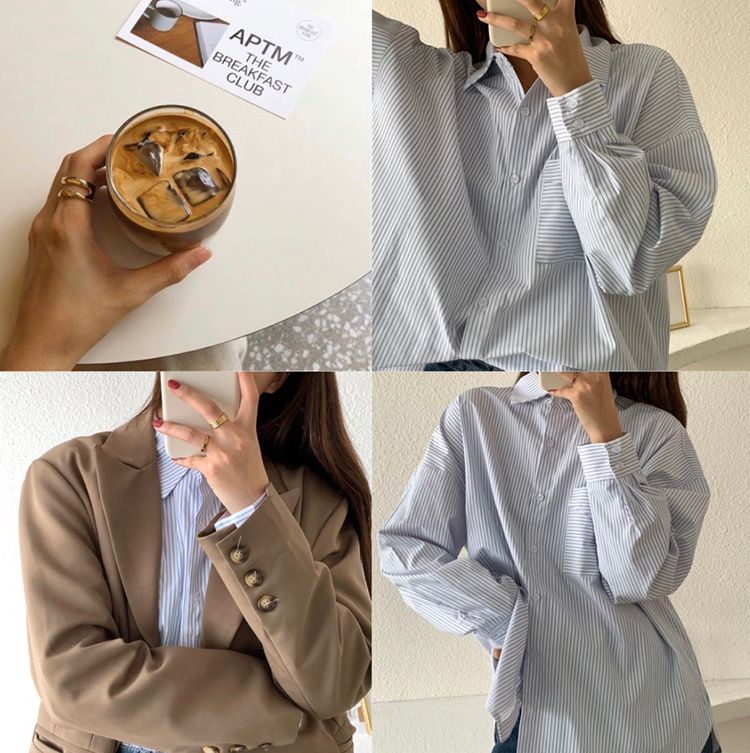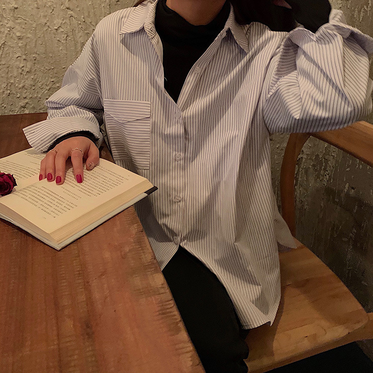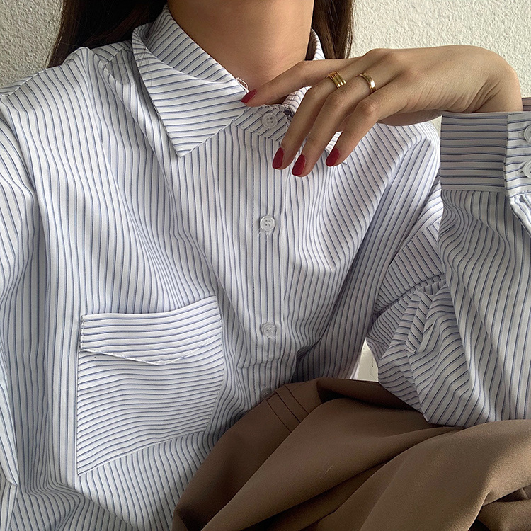 Весенний и осенний длинный рукав в полоску рубашка женский дизайн темпераментный рубашка ретро chic полосатый топ