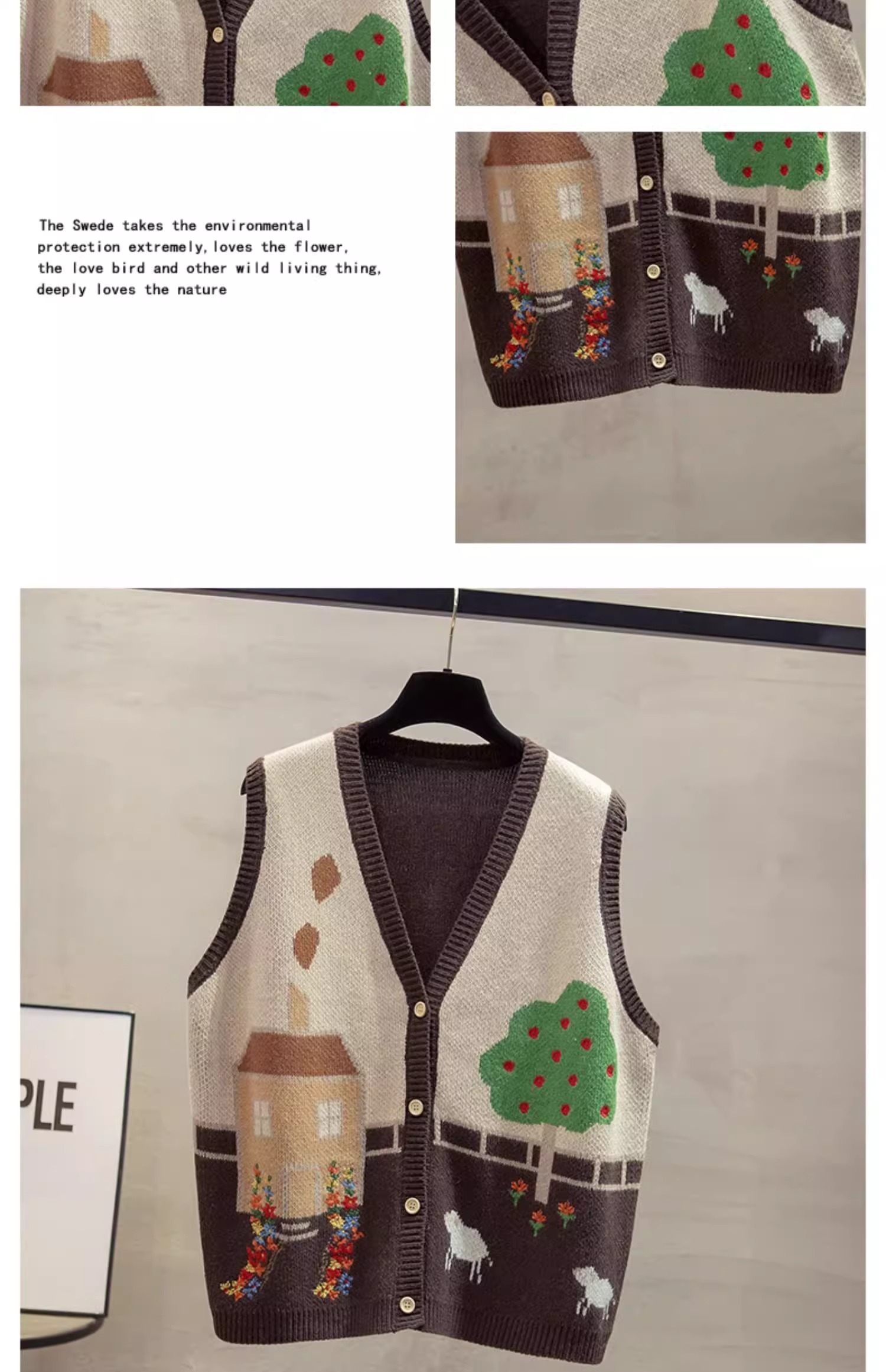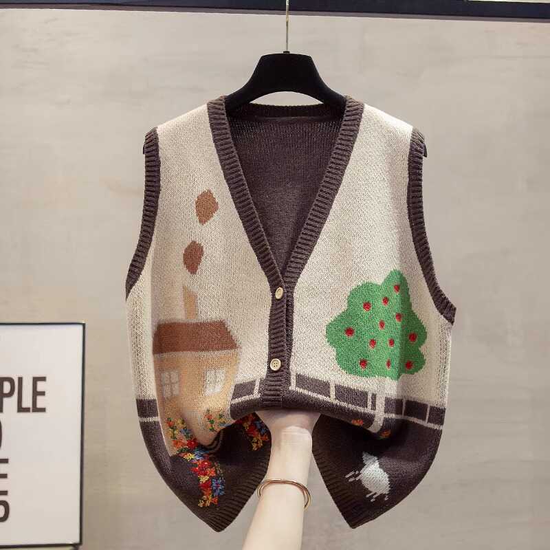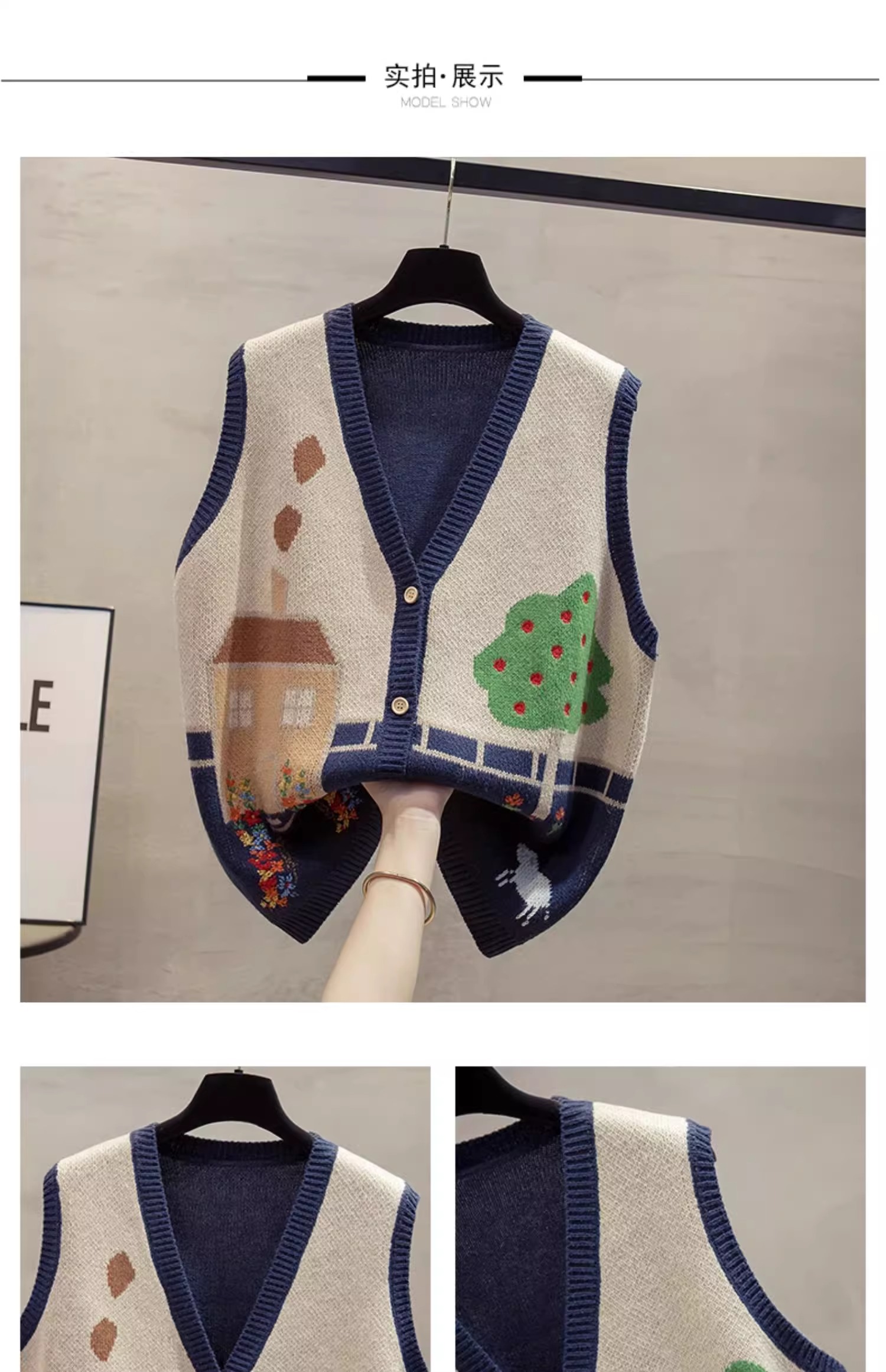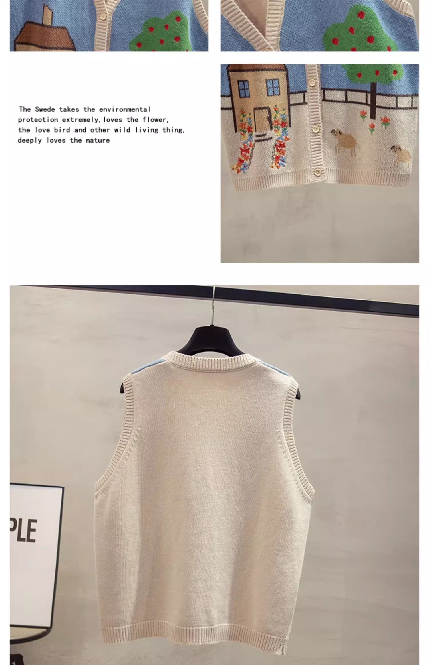 2024 Весенний и Осенний Новый Свободный Вышитый Вязаный Жилет Женский свитер Жилет Кардиган vi Воротник Женский плечо