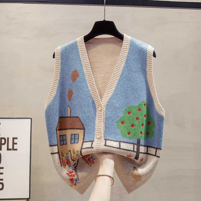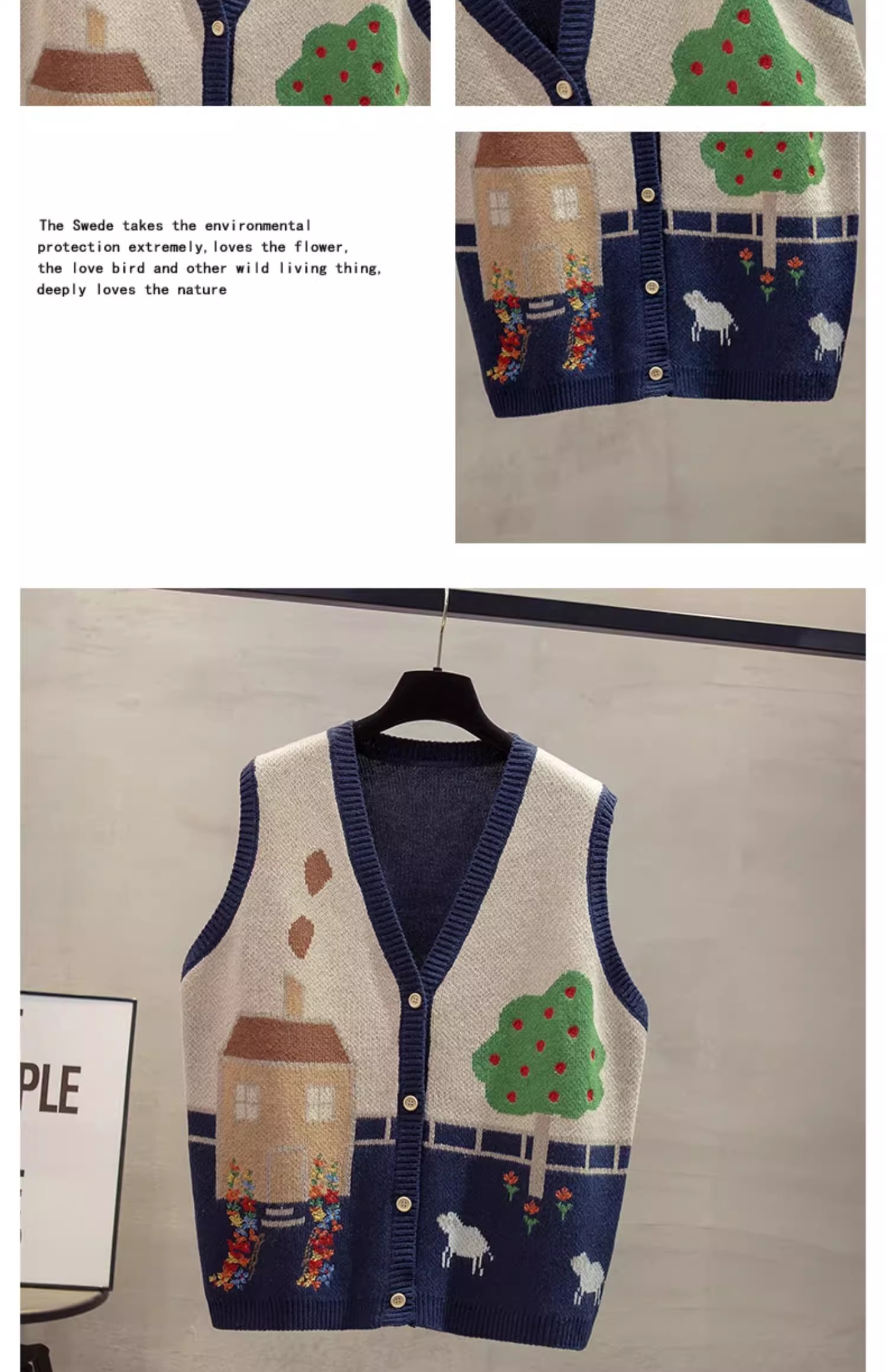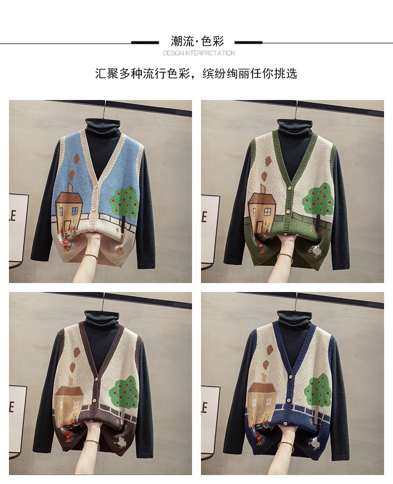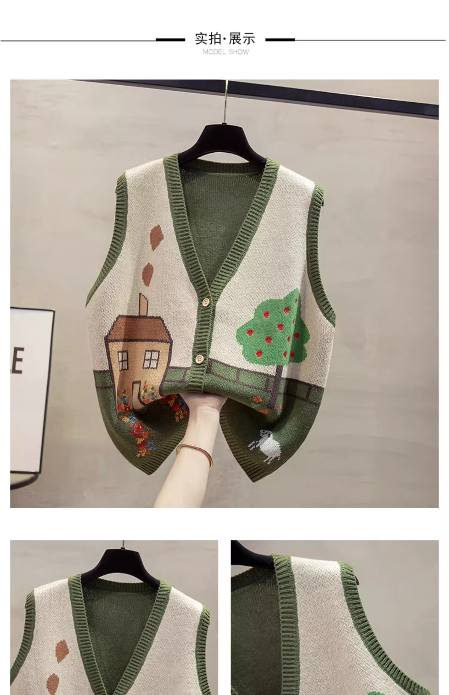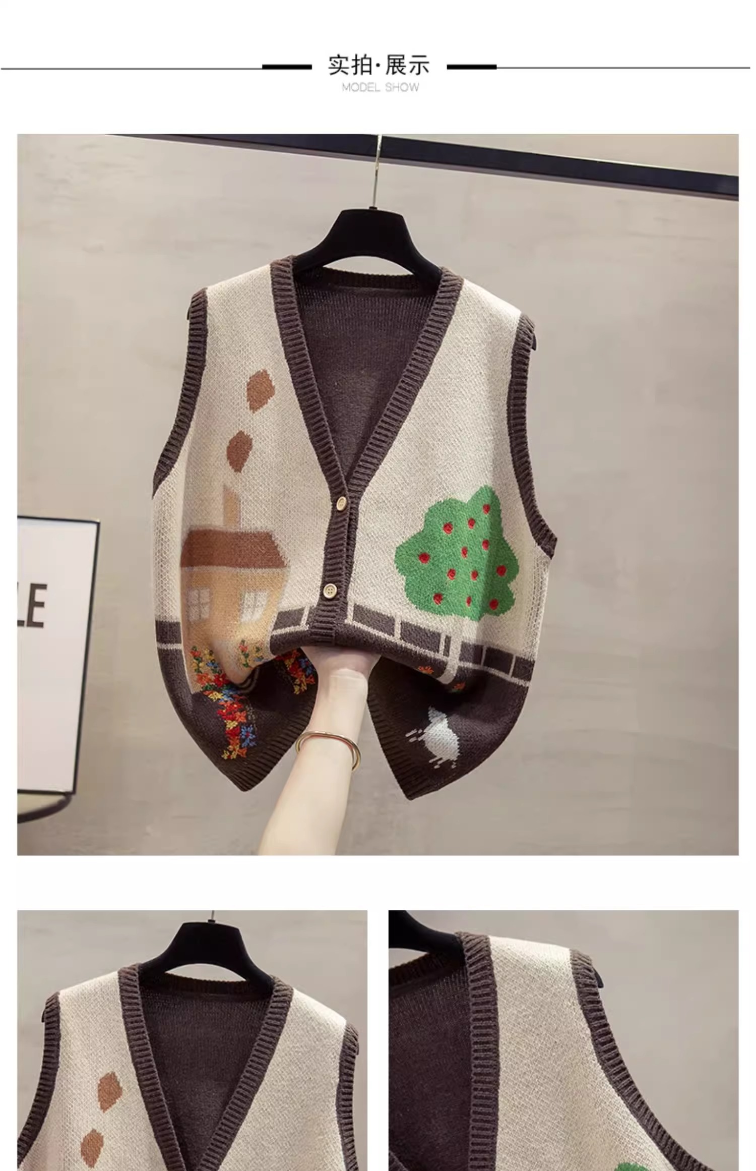 2024 Весенний и Осенний Новый Свободный Вышитый Вязаный Жилет Женский свитер Жилет Кардиган vi Воротник Женский плечо