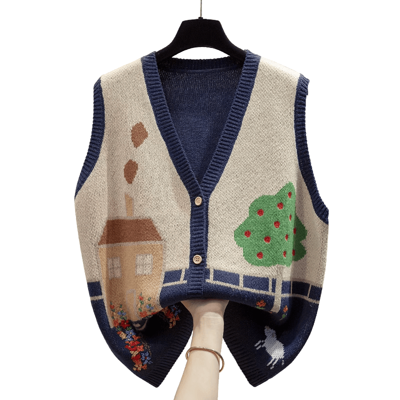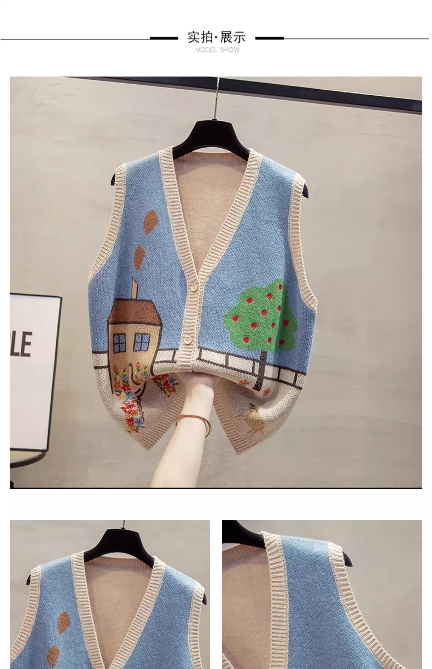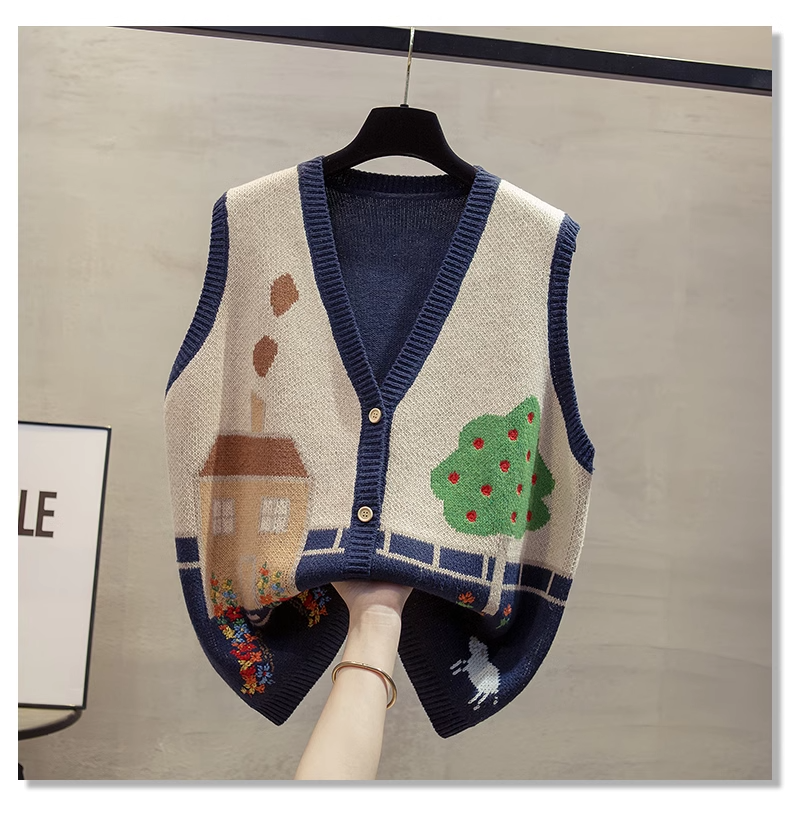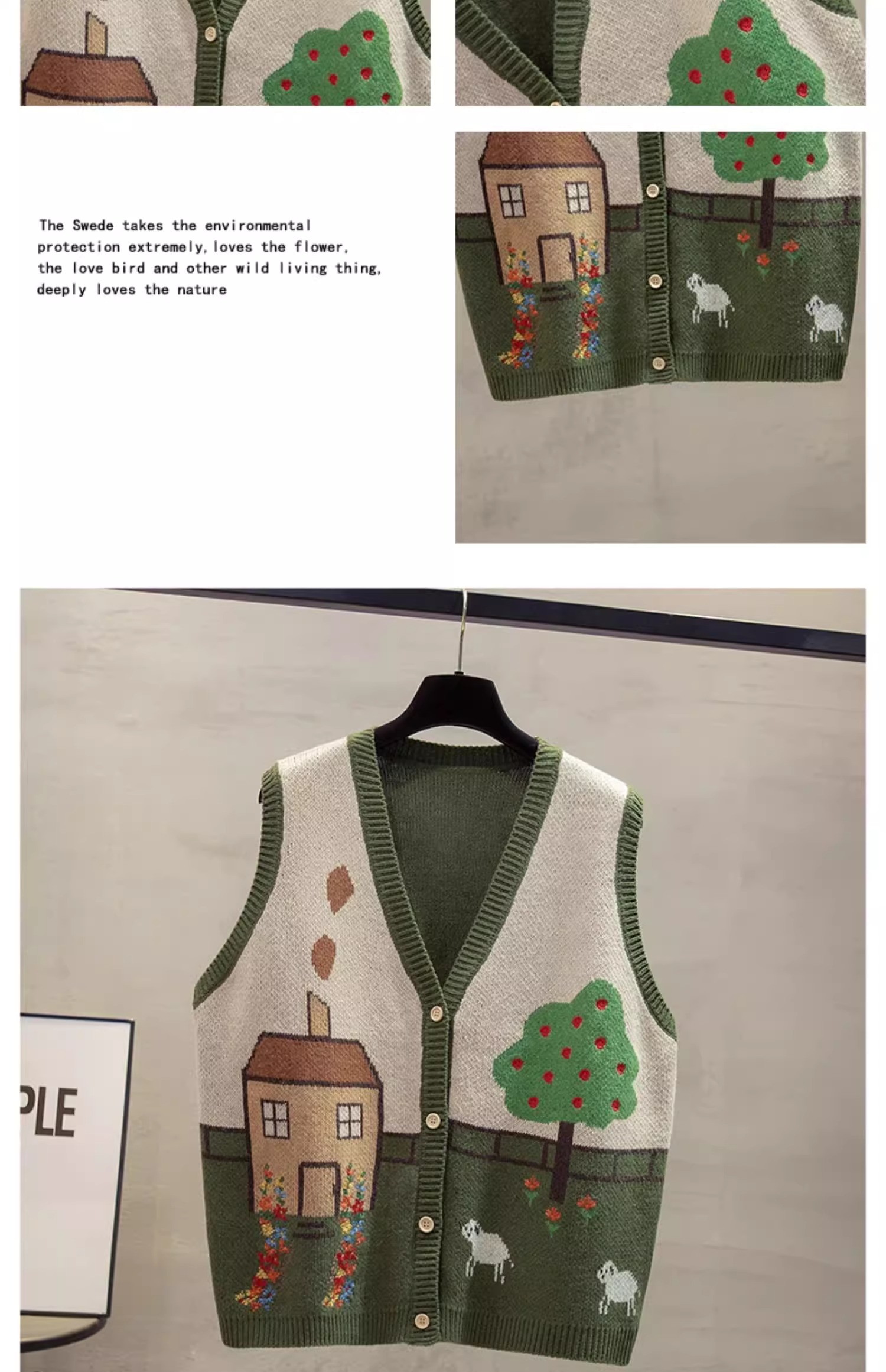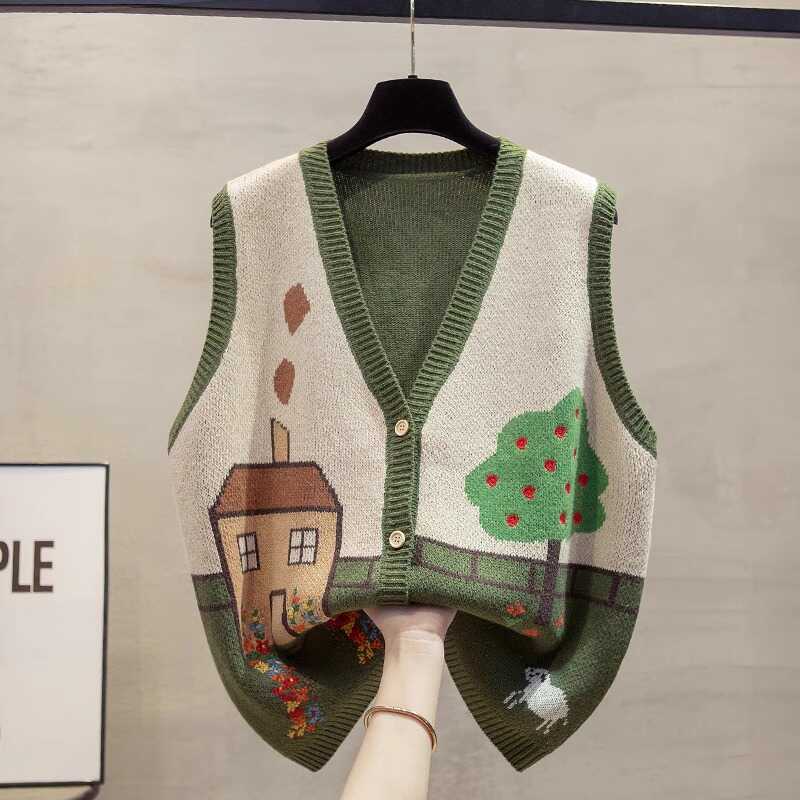 2024 Весенний и Осенний Новый Свободный Вышитый Вязаный Жилет Женский свитер Жилет Кардиган vi Воротник Женский плечо