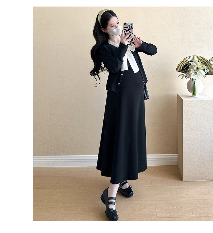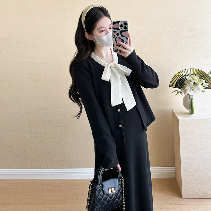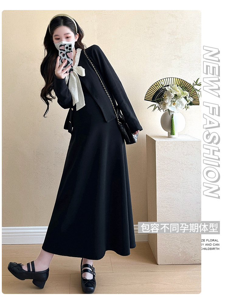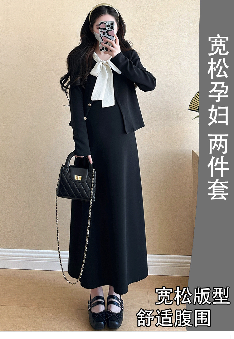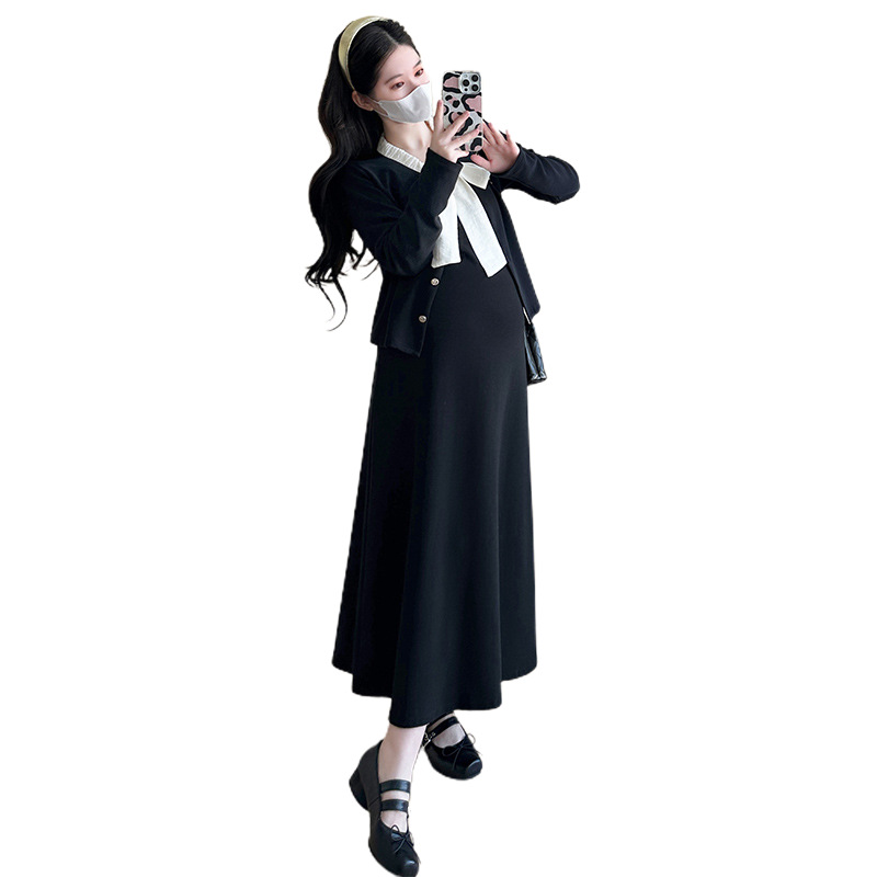 Одежда для беременных осень-зима 2024 новое платье на рабочем месте черная тонкая юбка большого размера осень-зима вне набора