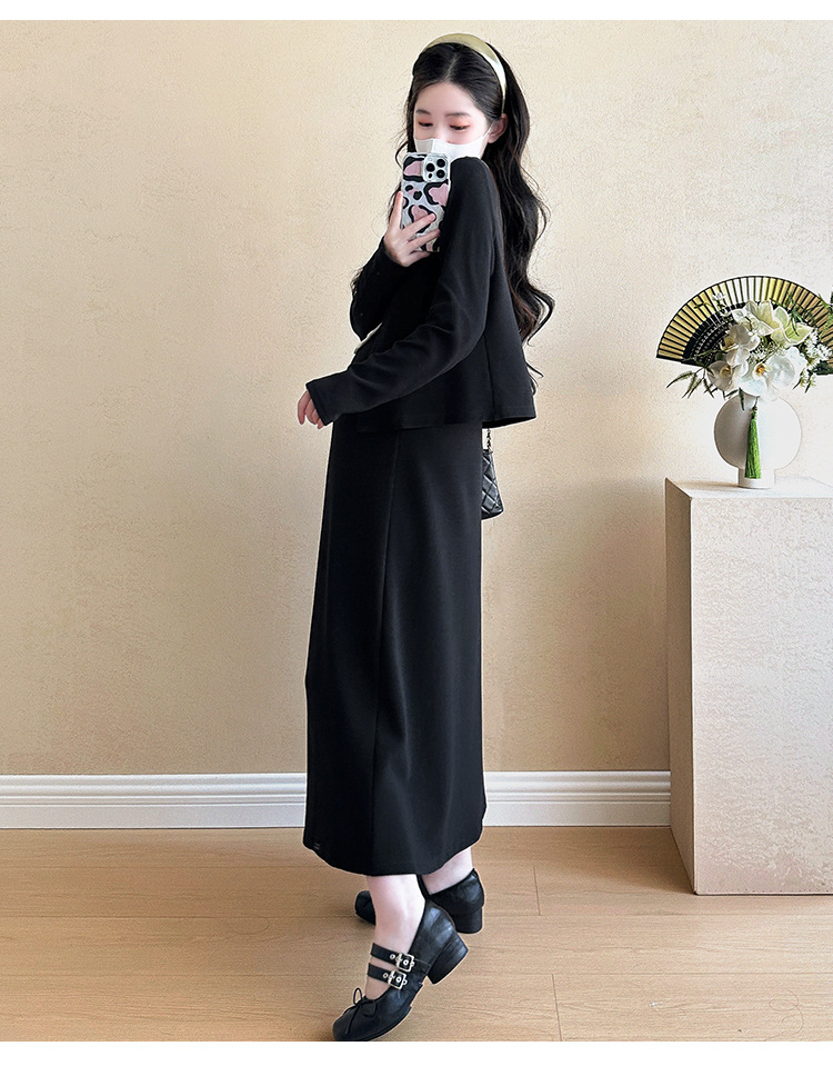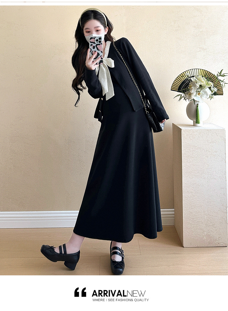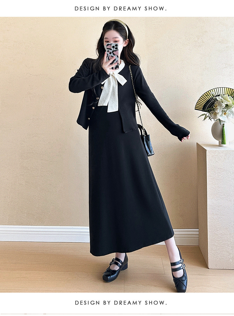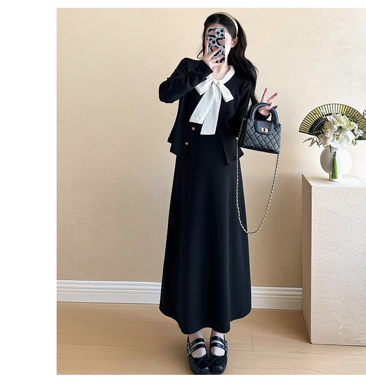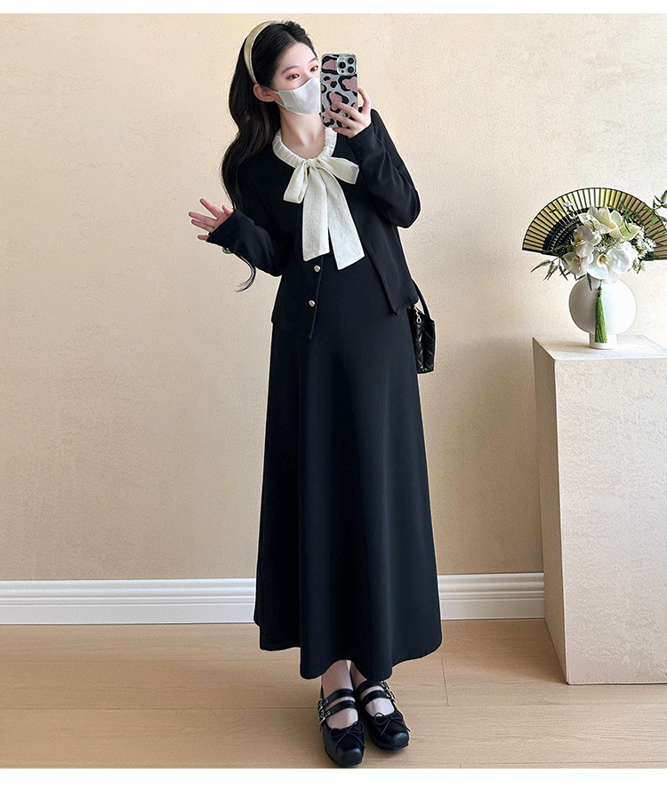 Одежда для беременных осень-зима 2024 новое платье на рабочем месте черная тонкая юбка большого размера осень-зима вне набора