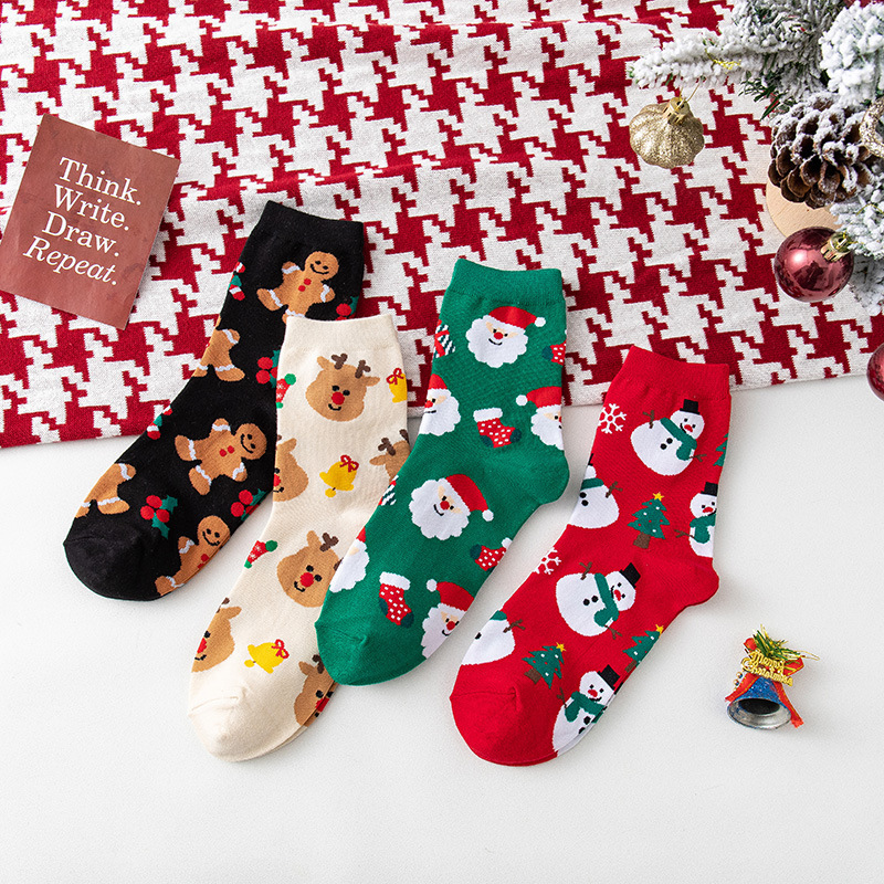2024, рождественские носки, женские осенние и зимние носки средней длины с героями мультфильмов, милые красные носки Санта-Клауса, лося, снеговика