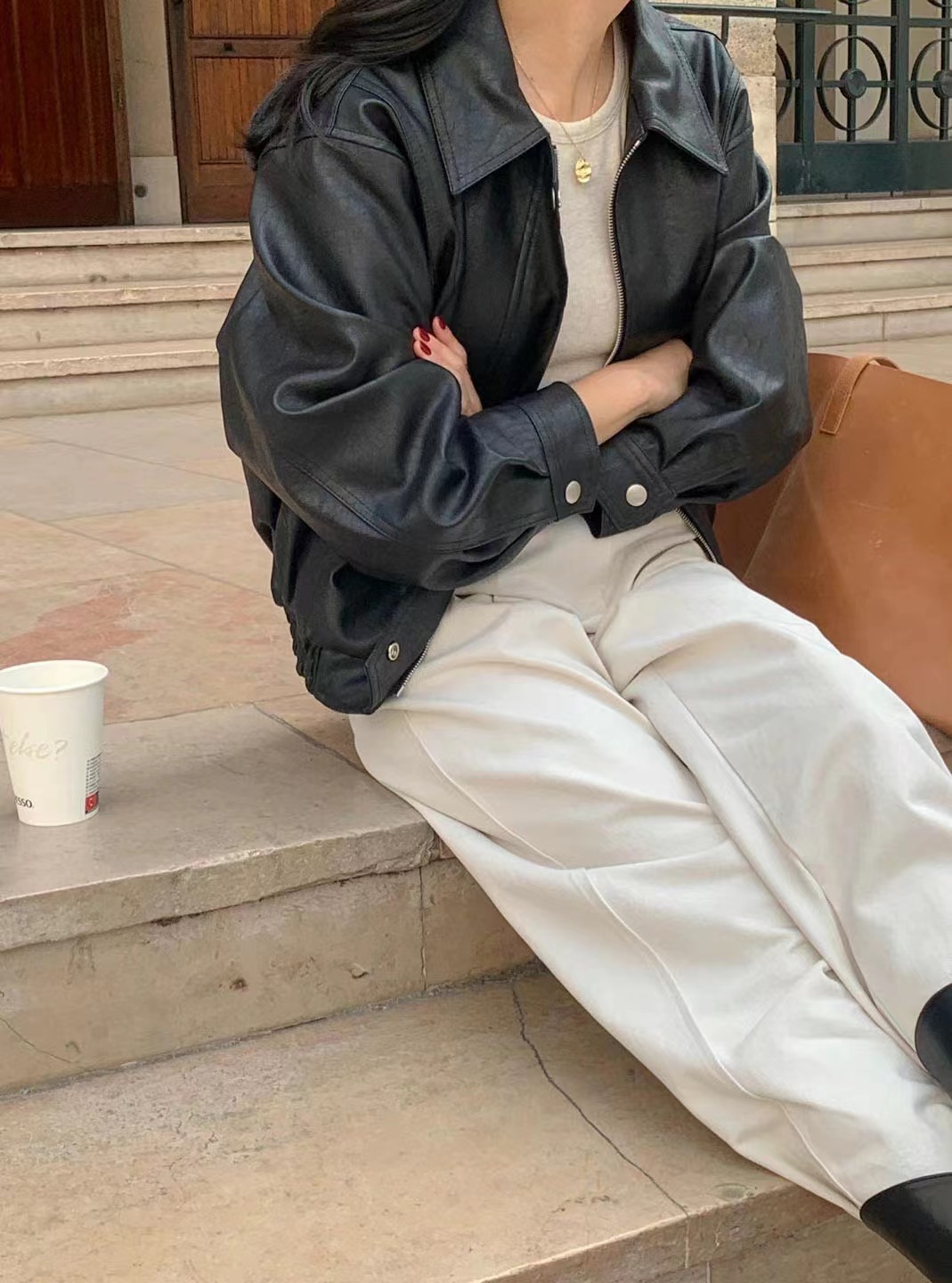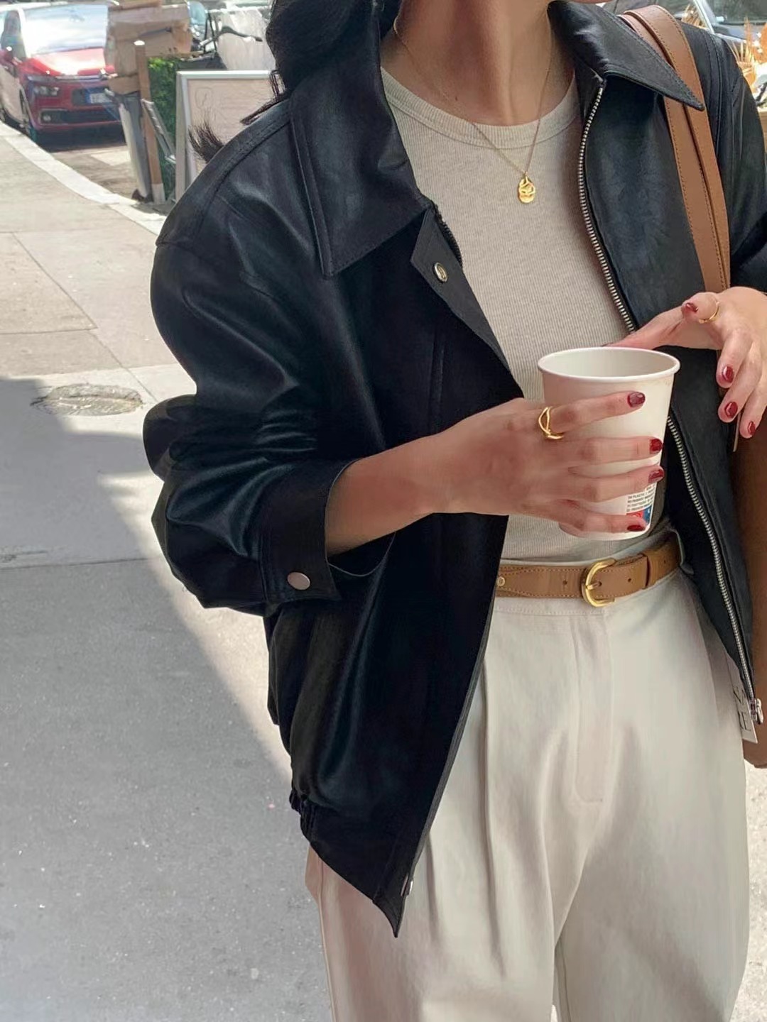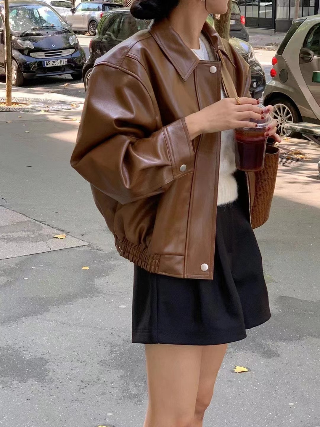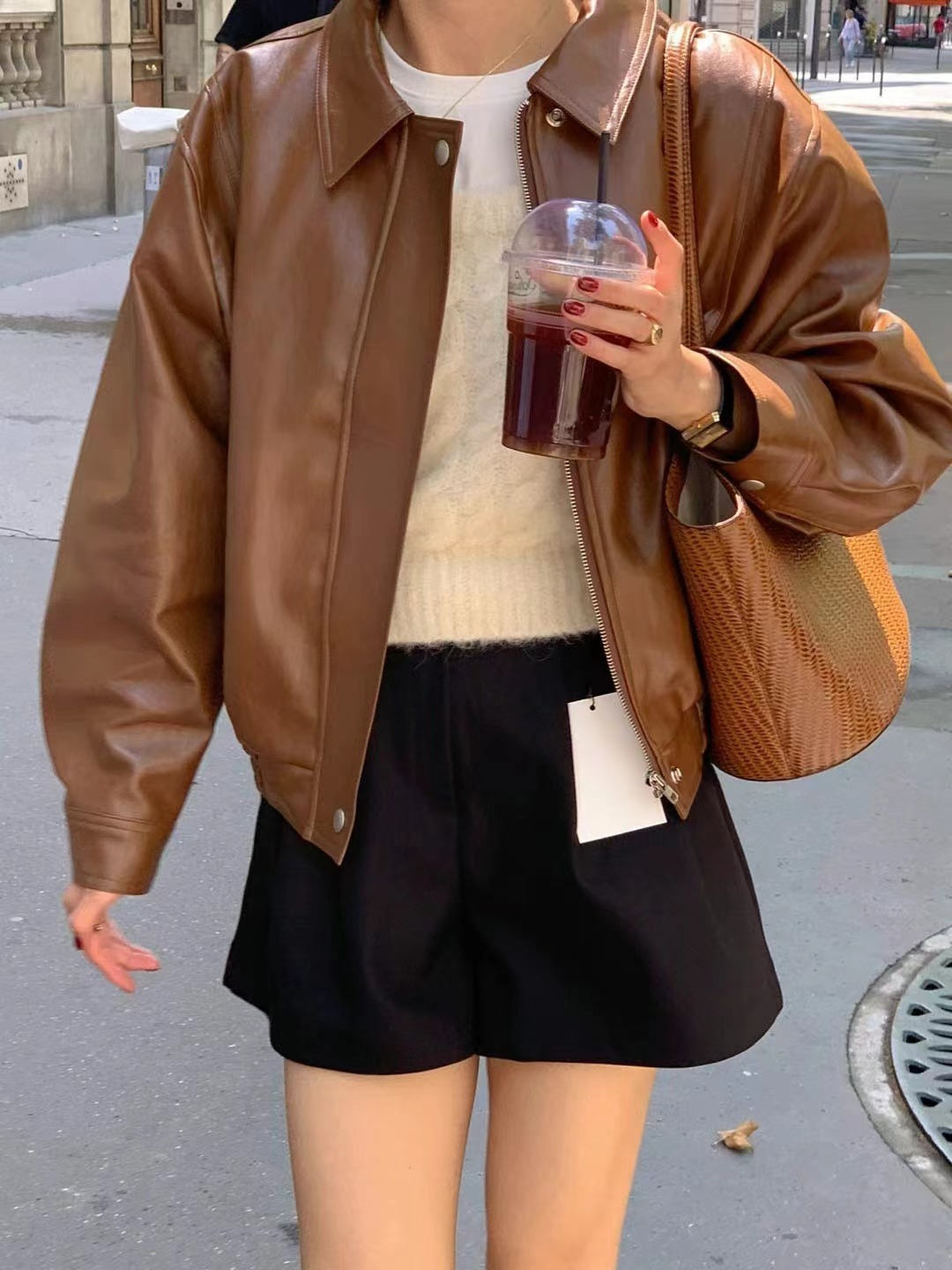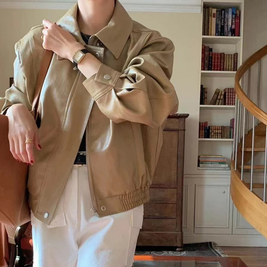 Южная Корея Dongdaemun осень и зима новая французская ретро-мода в гонконгском стиле с длинными рукавами из искусственной кожи женская модная мотоциклетная куртка