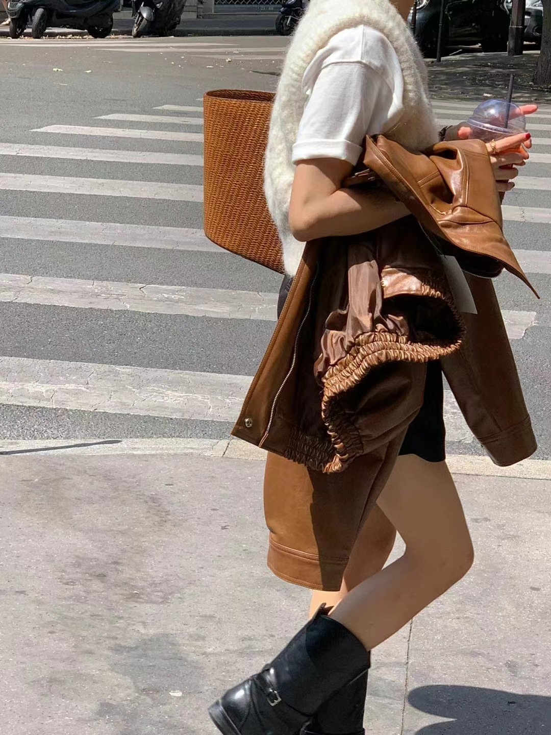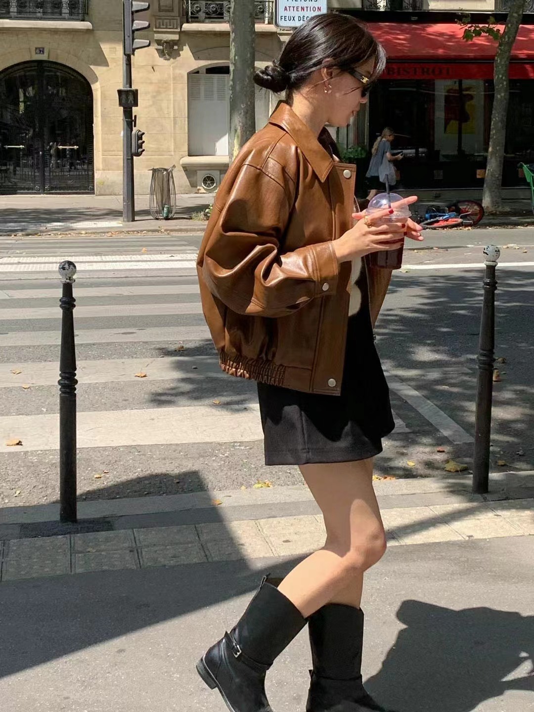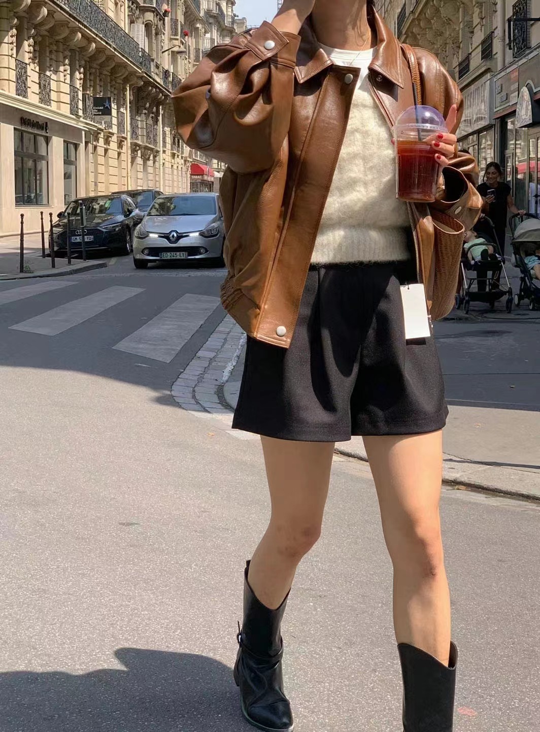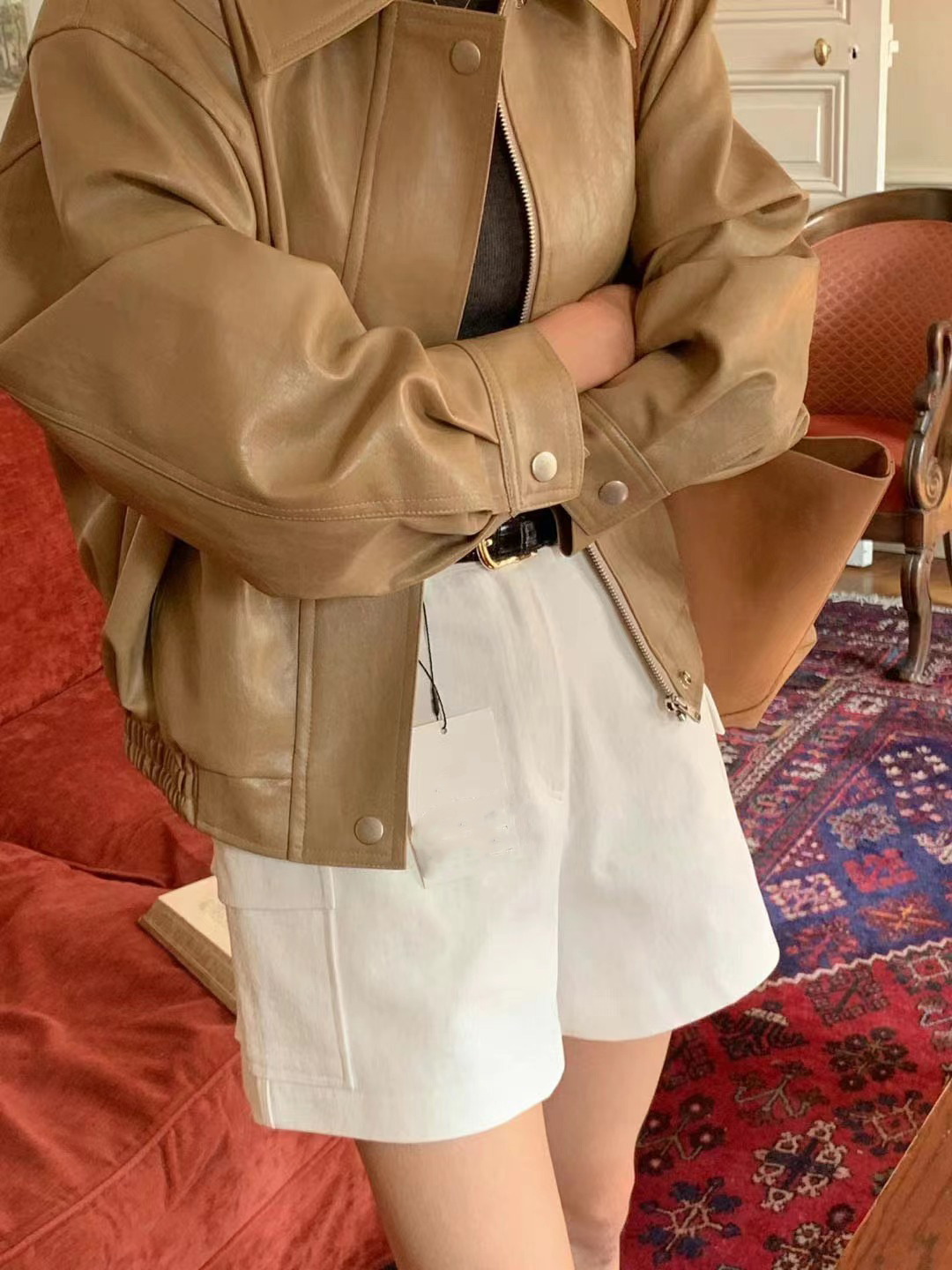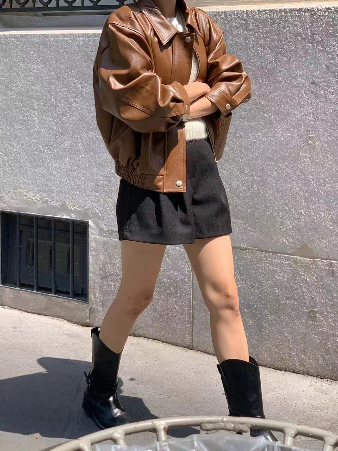 Южная Корея Dongdaemun осень и зима новая французская ретро-мода в гонконгском стиле с длинными рукавами из искусственной кожи женская модная мотоциклетная куртка