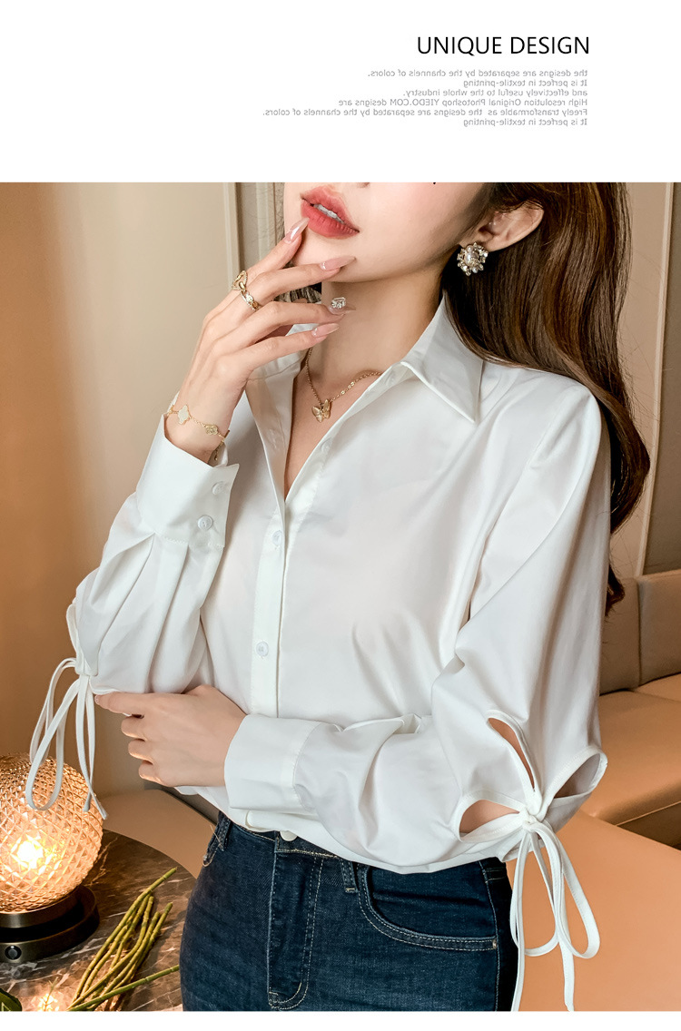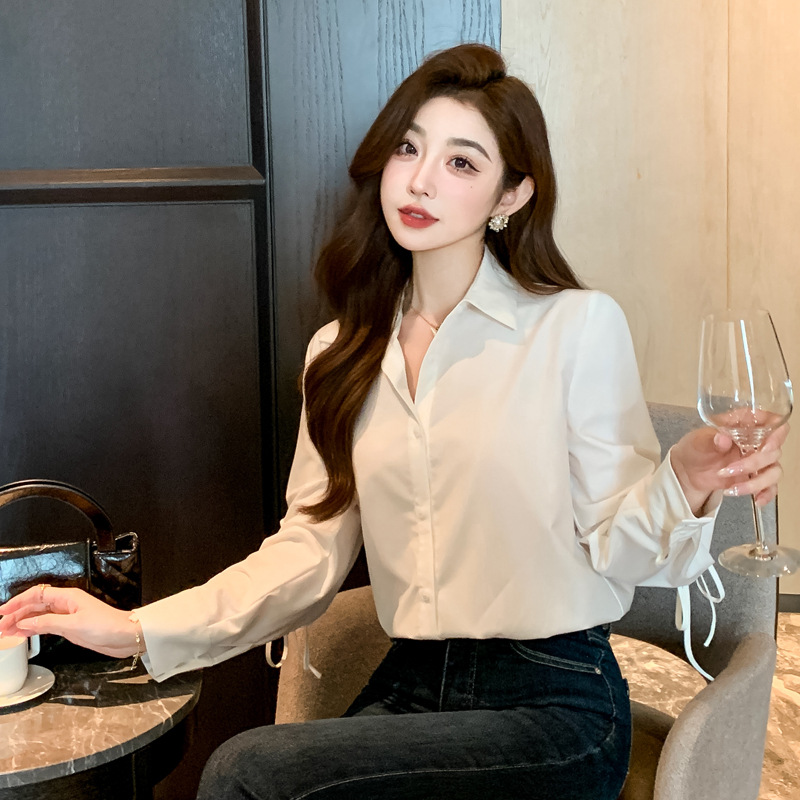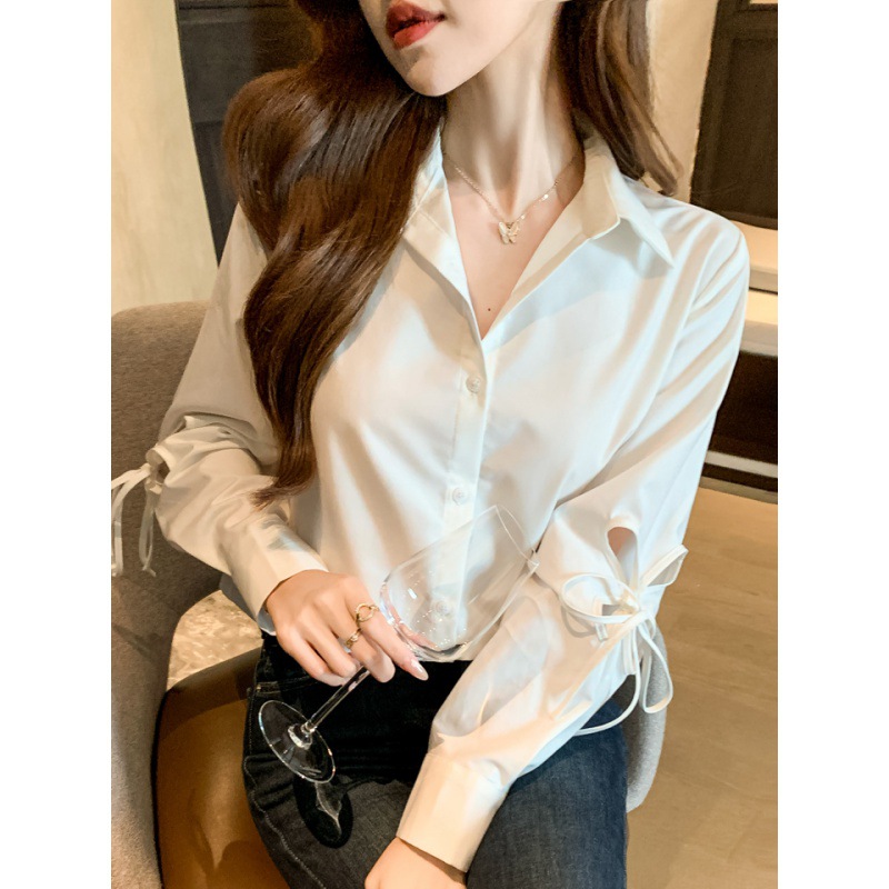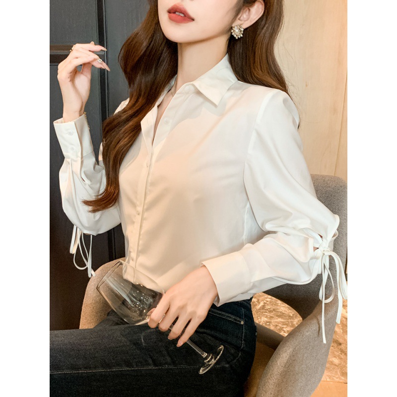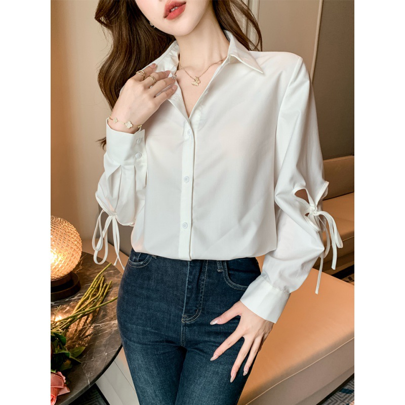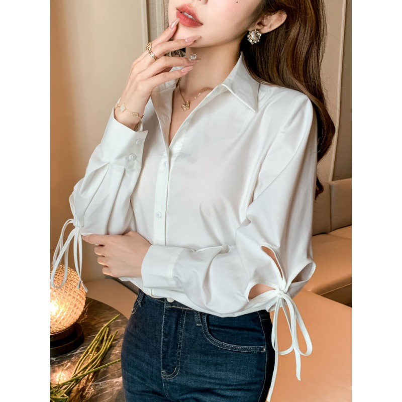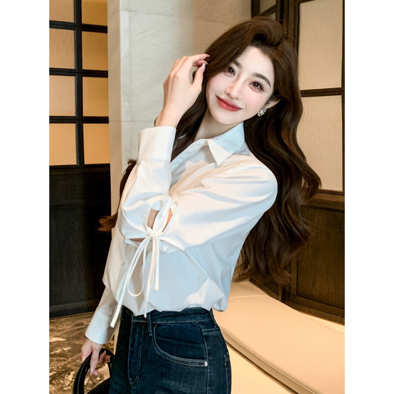 Поставлено 2024 осень и зима новый дизайн бант блузка белая рубашка с длинными рукавами рубашка