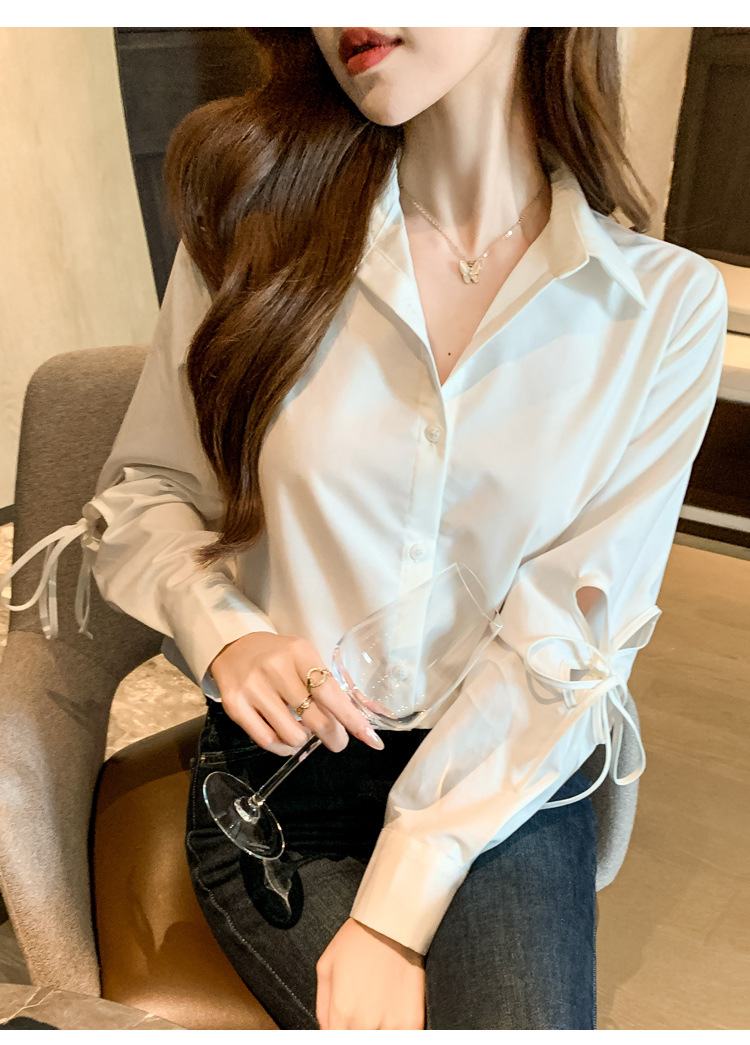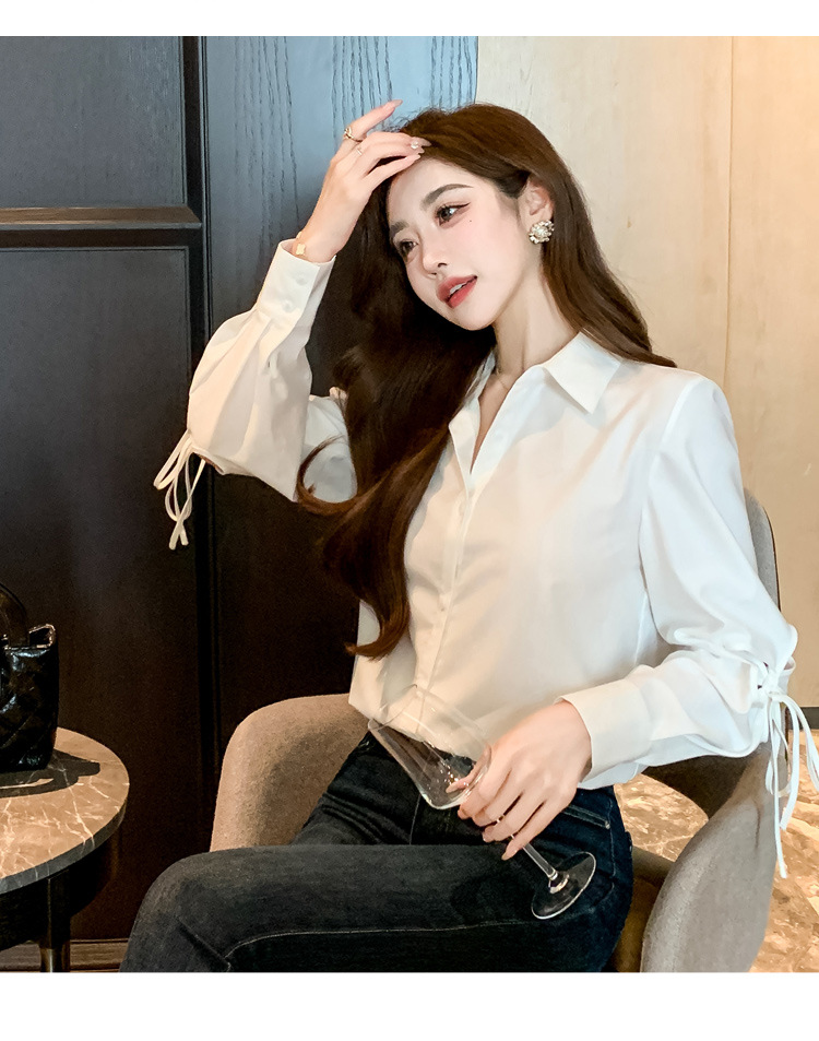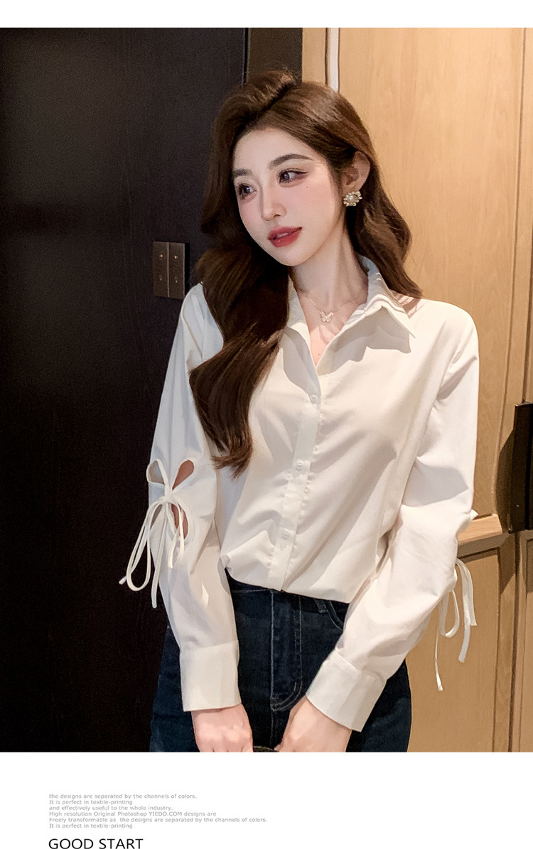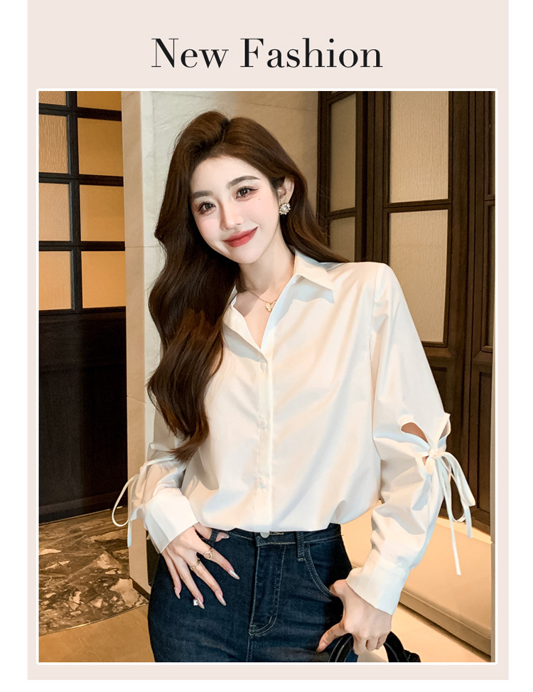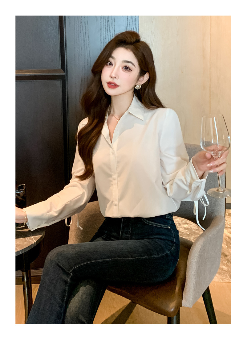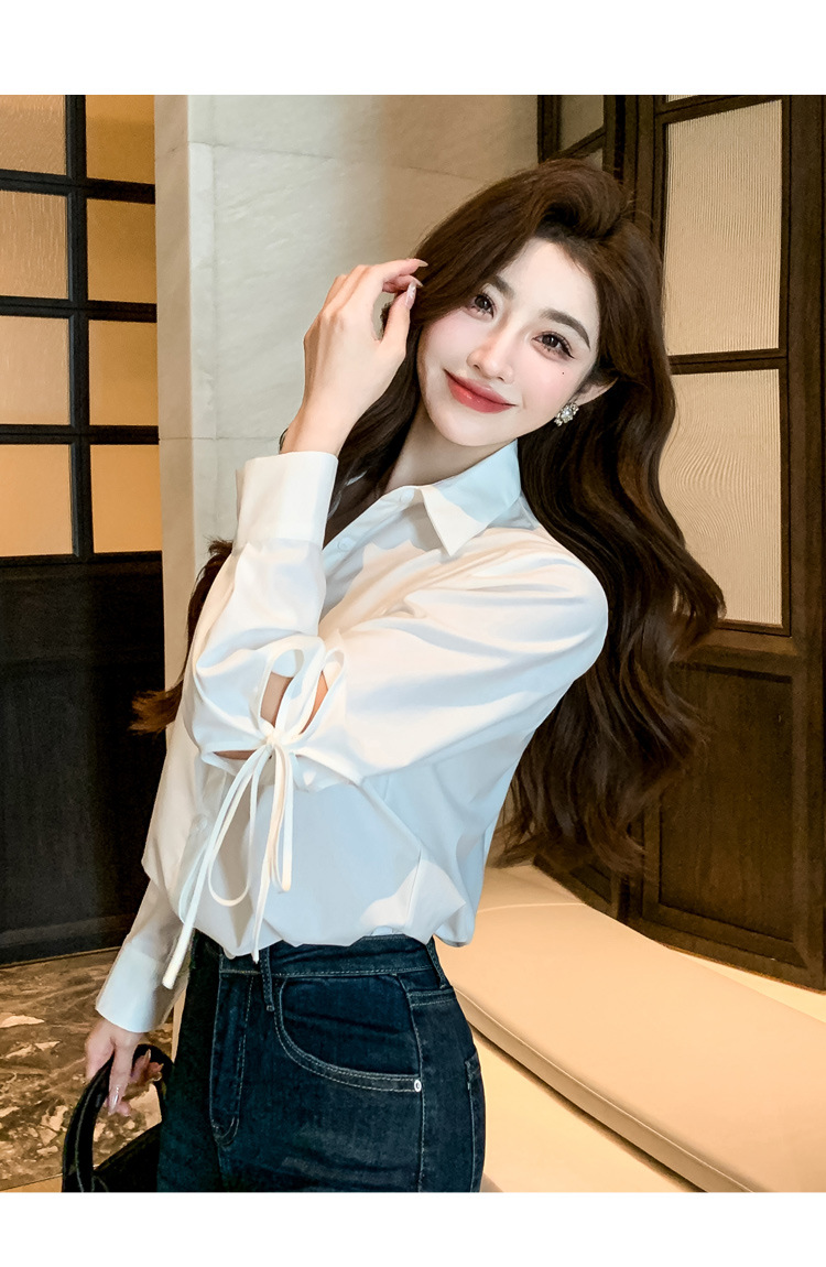 Поставлено 2024 осень и зима новый дизайн бант блузка белая рубашка с длинными рукавами рубашка