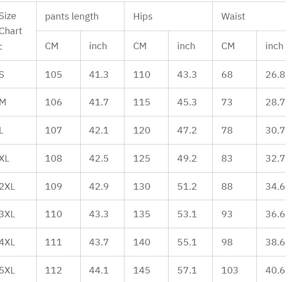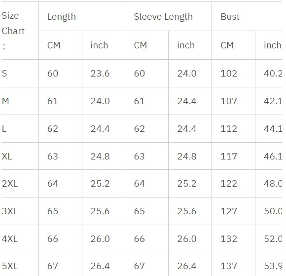 S; M; L; XL; 2XL; 3XL; 4XL; 5XL