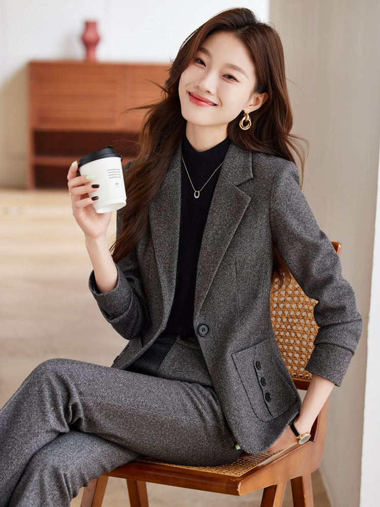 Женский шерстяной пиджак для трансграничной торговли, новая осенне-зимняя утолщенная модель, высококачественный деловой костюм для работы в отеле