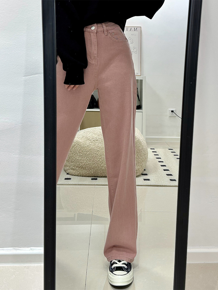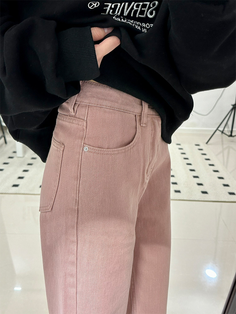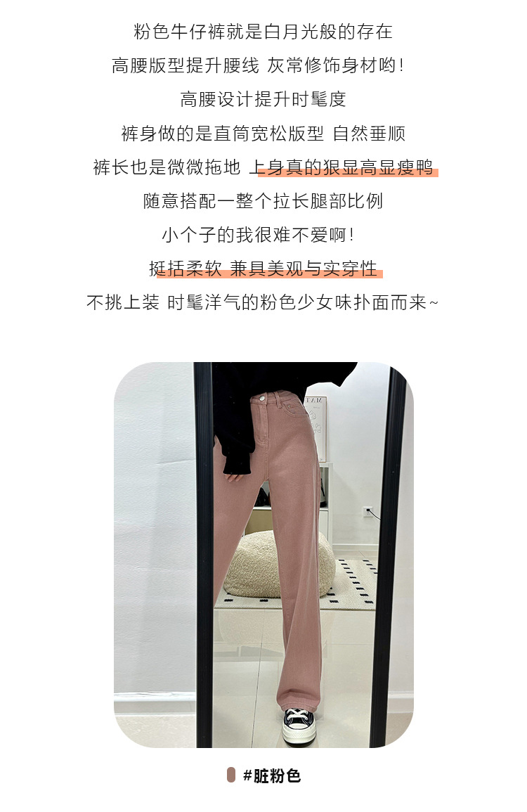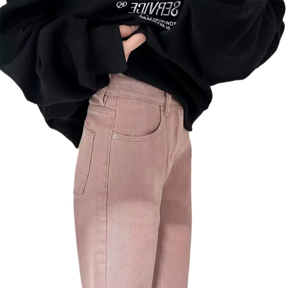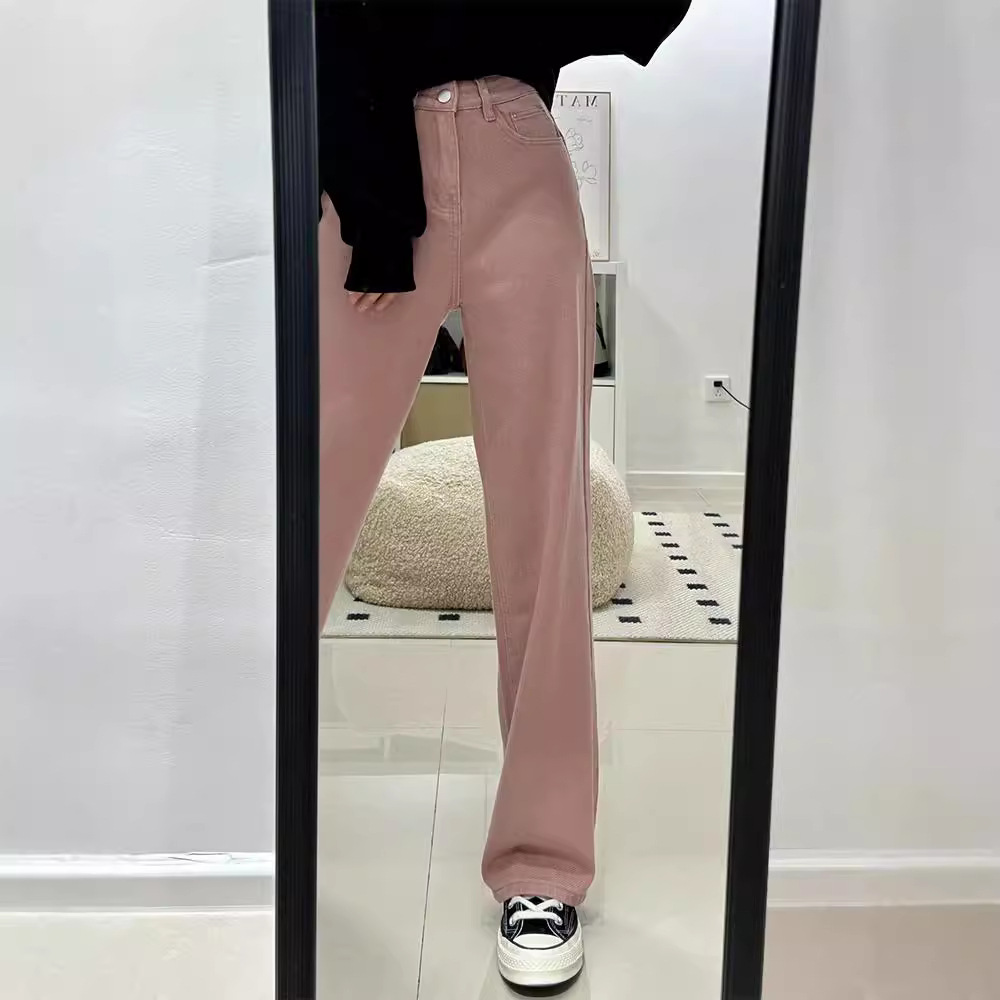 Грязные розовые прямые джинсы женские высокие талии весной и осенью большой размер толстый мм свободный тонкая грушевидная фигура узкая версия широкие брюки