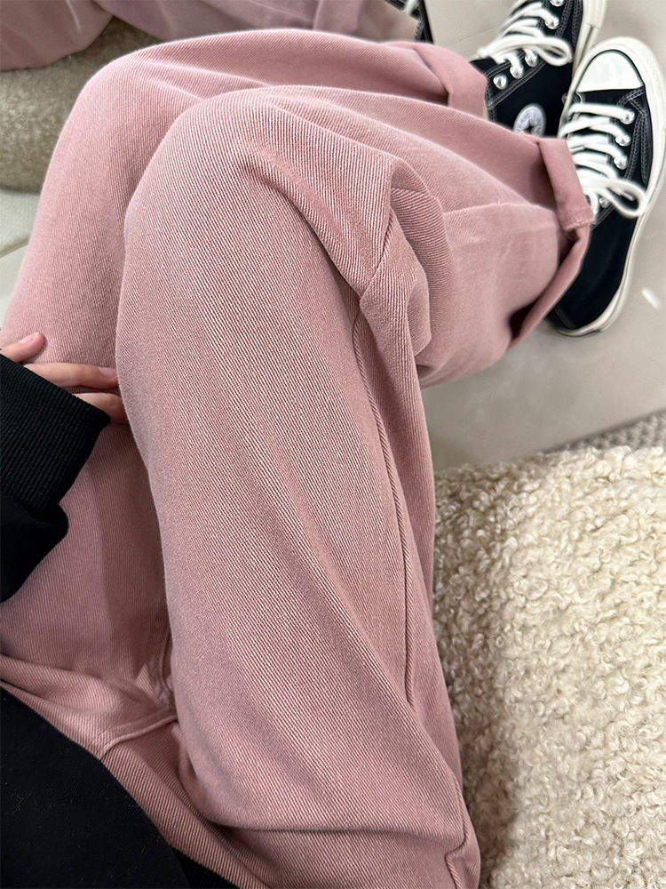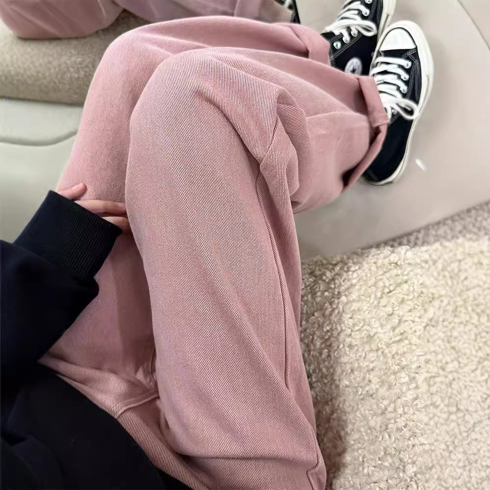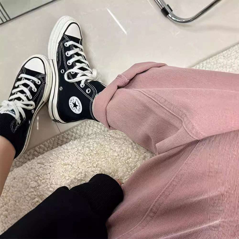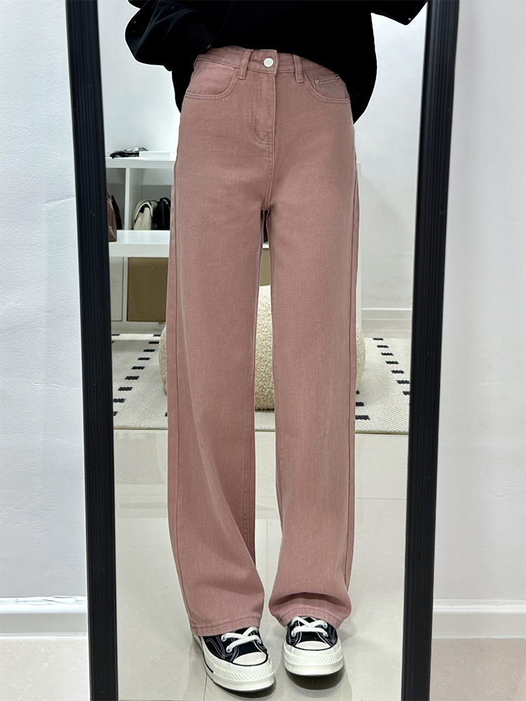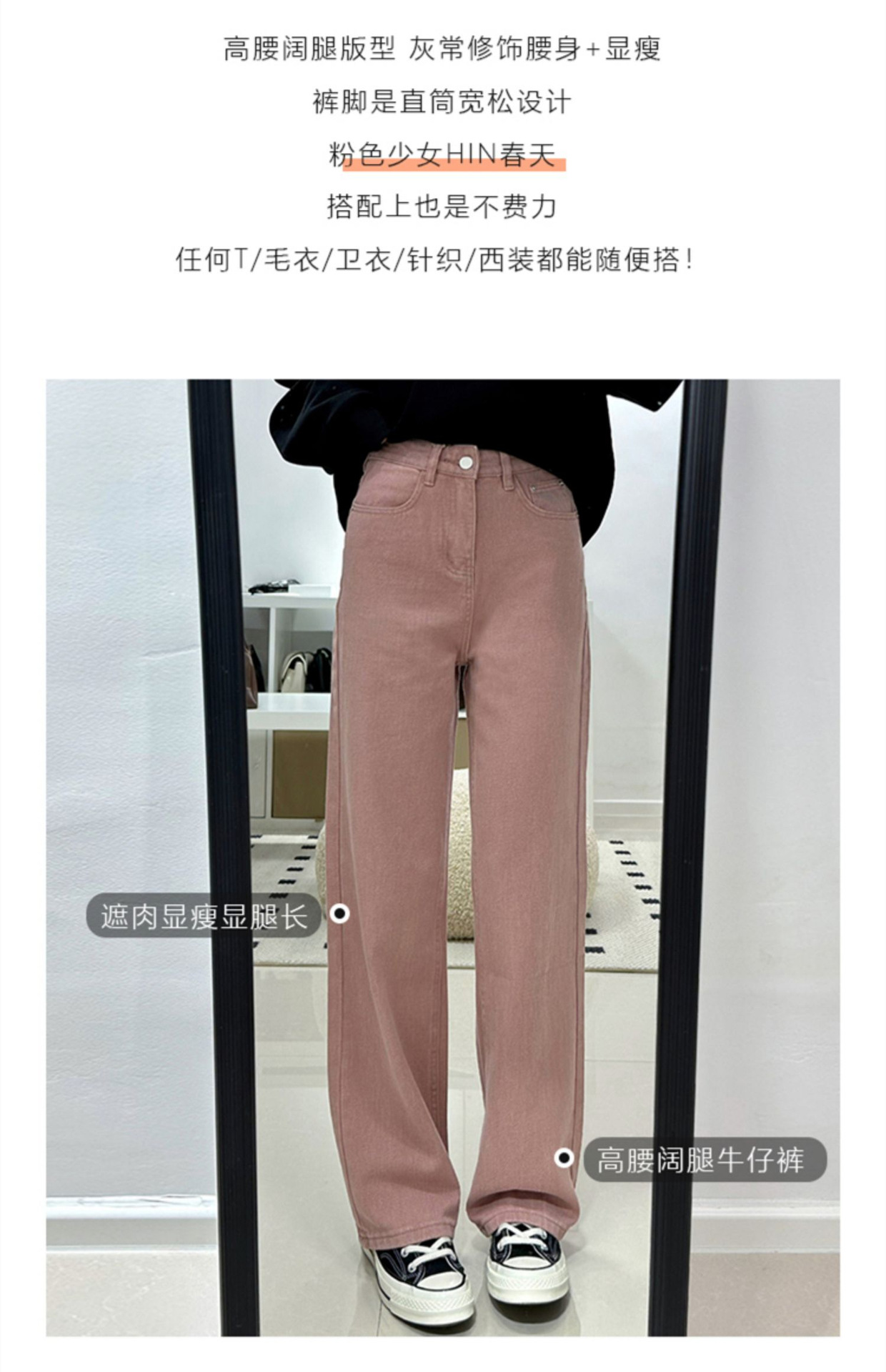 Грязные розовые прямые джинсы женские высокие талии весной и осенью большой размер толстый мм свободный тонкая грушевидная фигура узкая версия широкие брюки