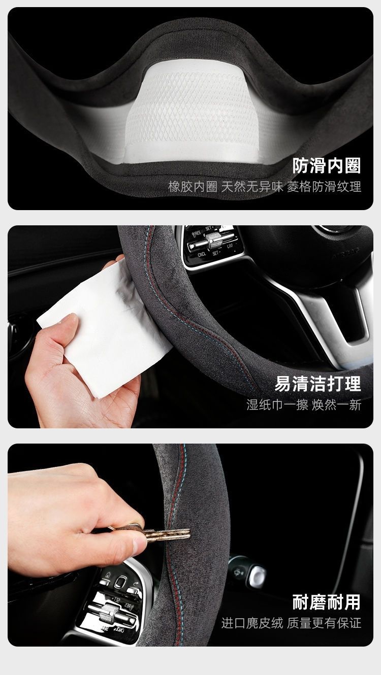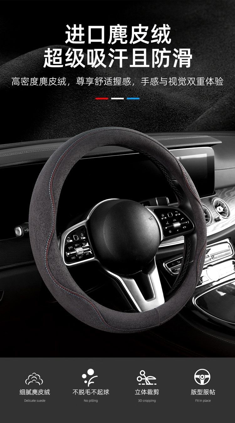 Чехол на руль с цветной нитью, замша, впитывающий пот, нескользящий, износостойкий, удобный, дышащий, всесезонный чехол на руль, трансграничный, дышащий и впитывающий пот