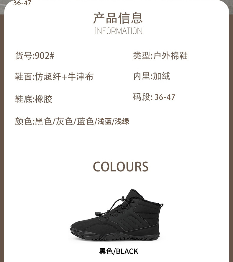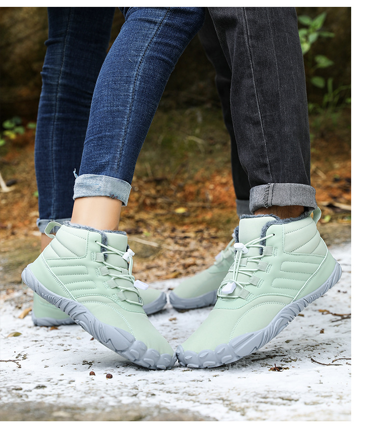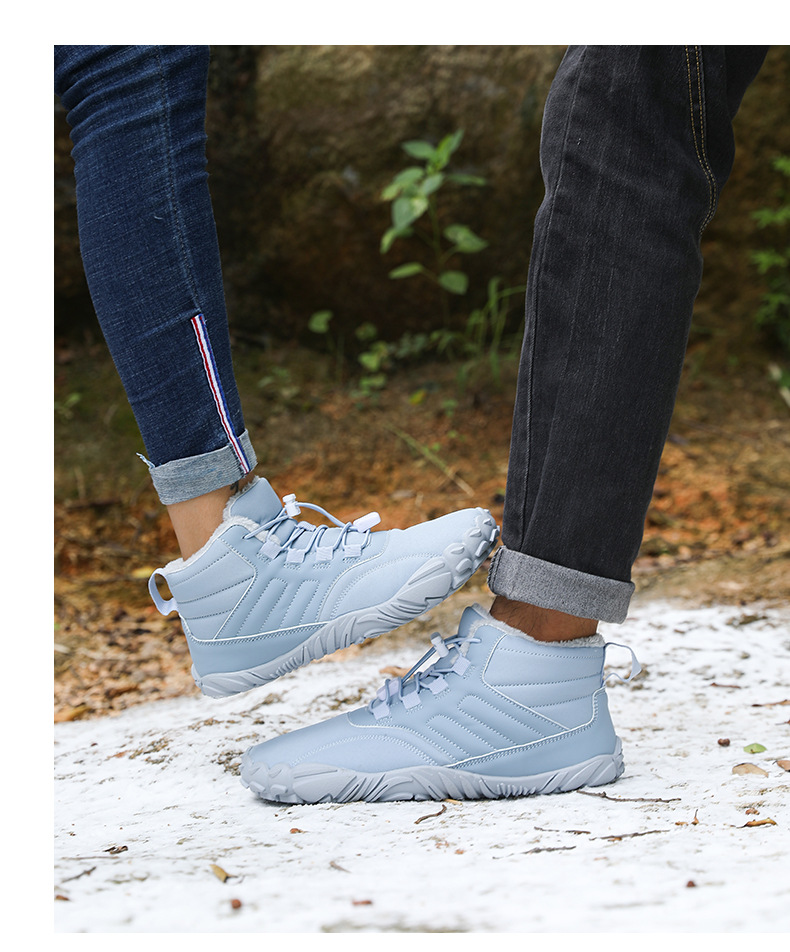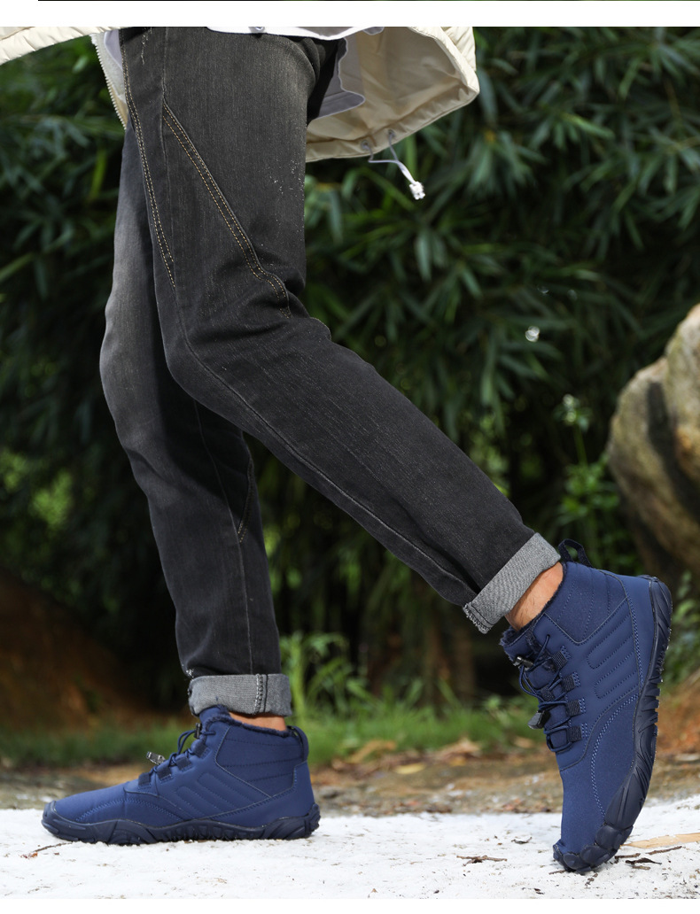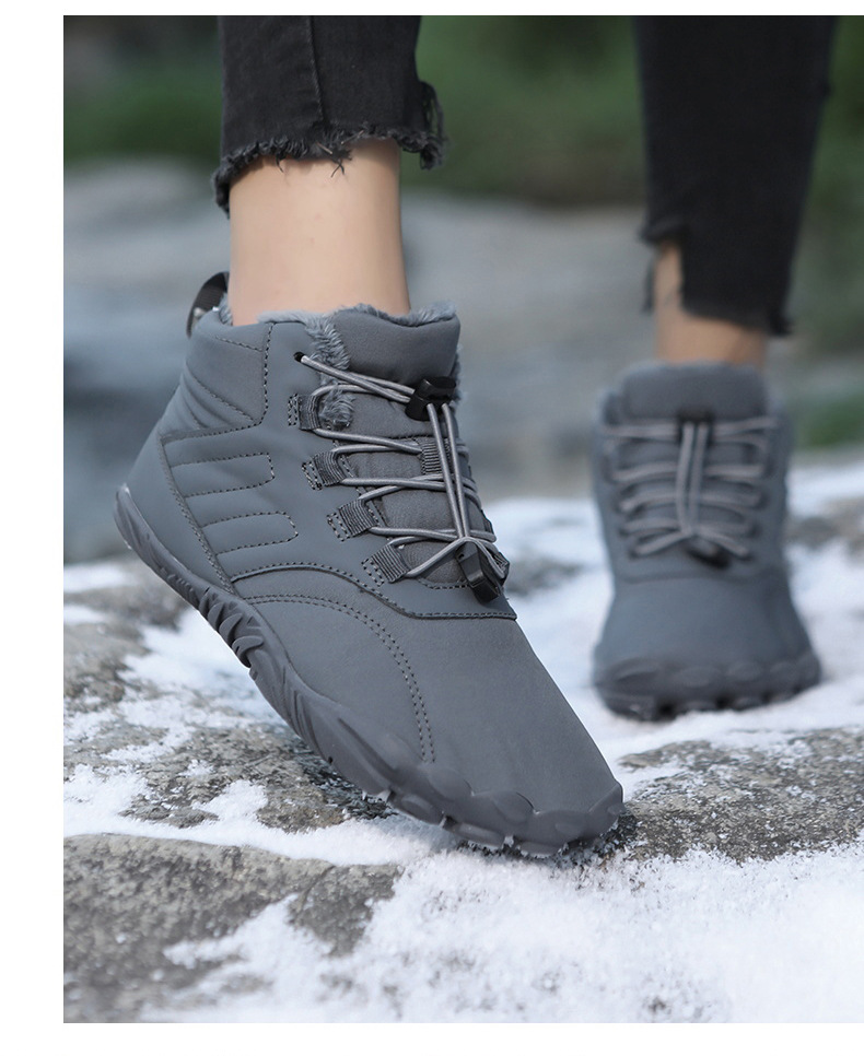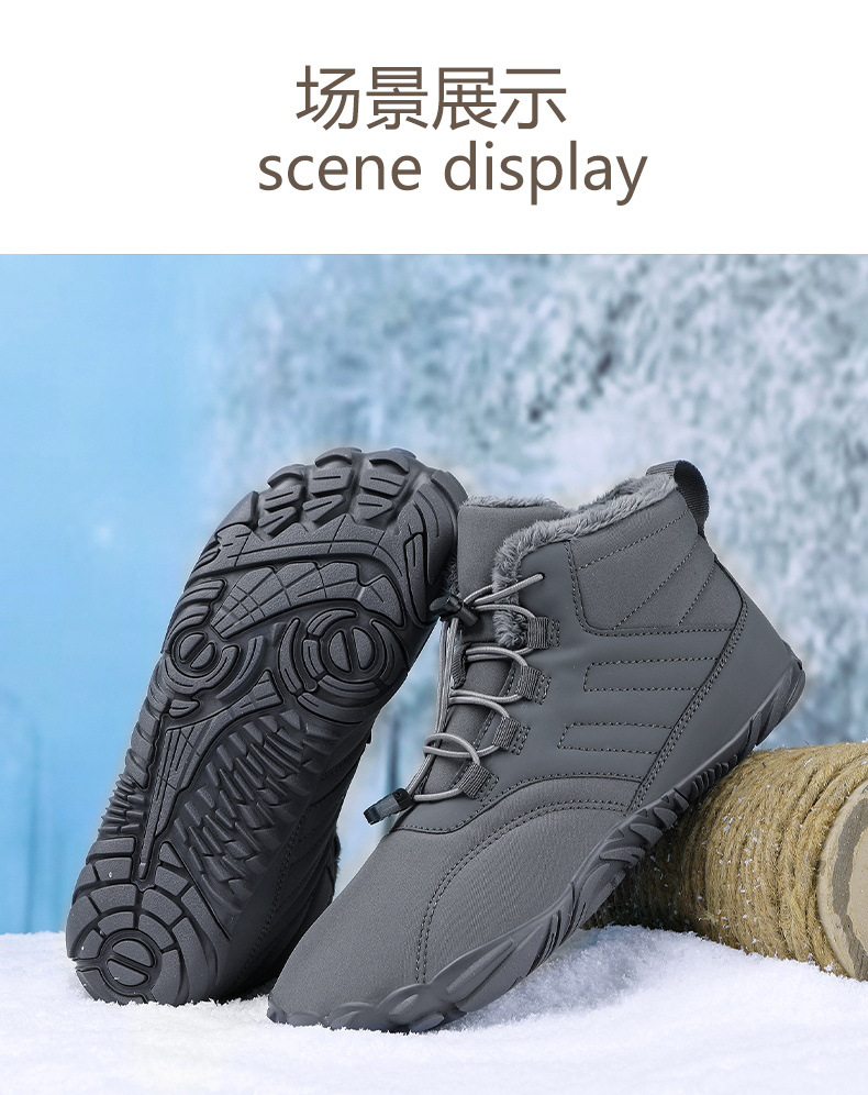 Трансграничные наружные снежные сапоги мужские зимние противоскользящие водонепроницаемые плюс бархат теплые хлопчатобумажные туфли женские толстые подошвы босые сапоги с пятью пальцами