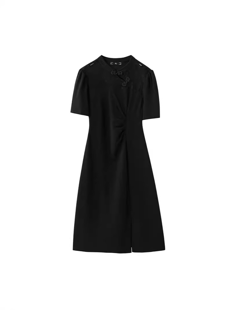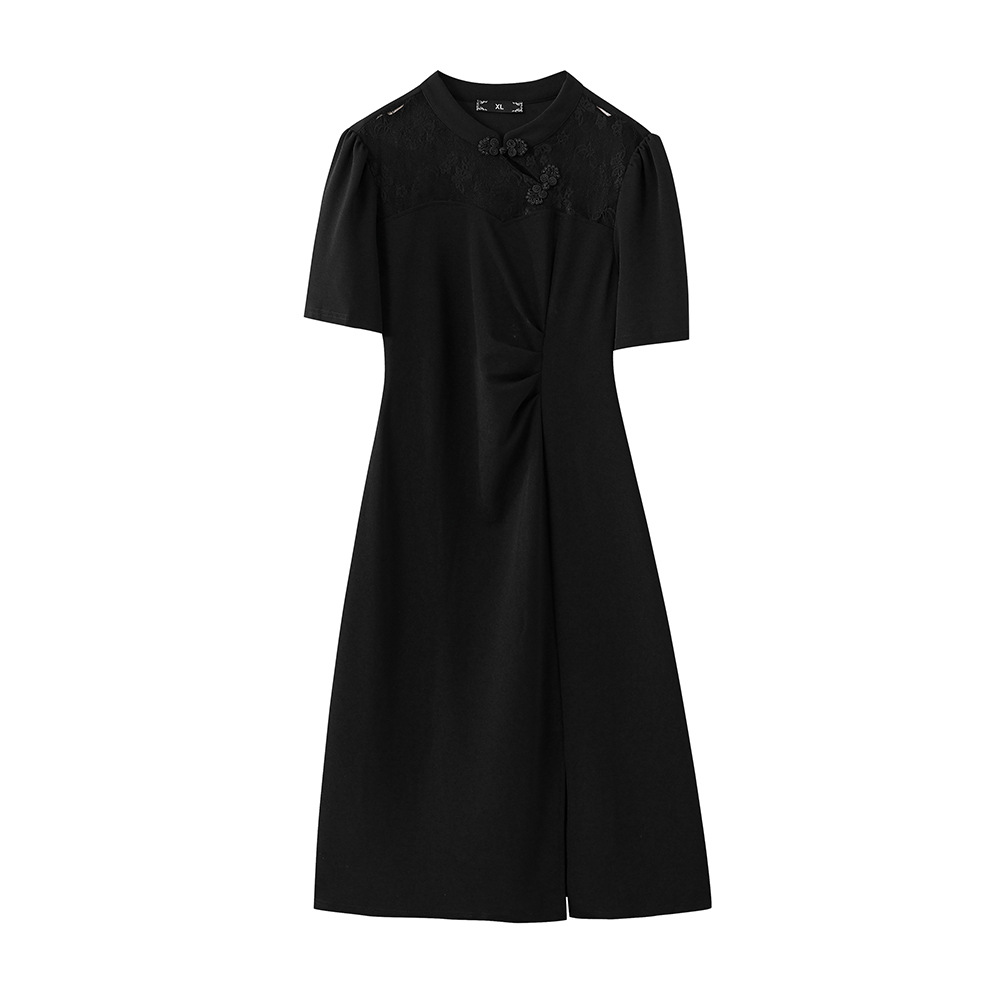 2024 летний новый стиль тонкая женская одежда плюс размер платье черная юбка темперамент с короткими рукавами толстая сестра новый национальный стиль юбка