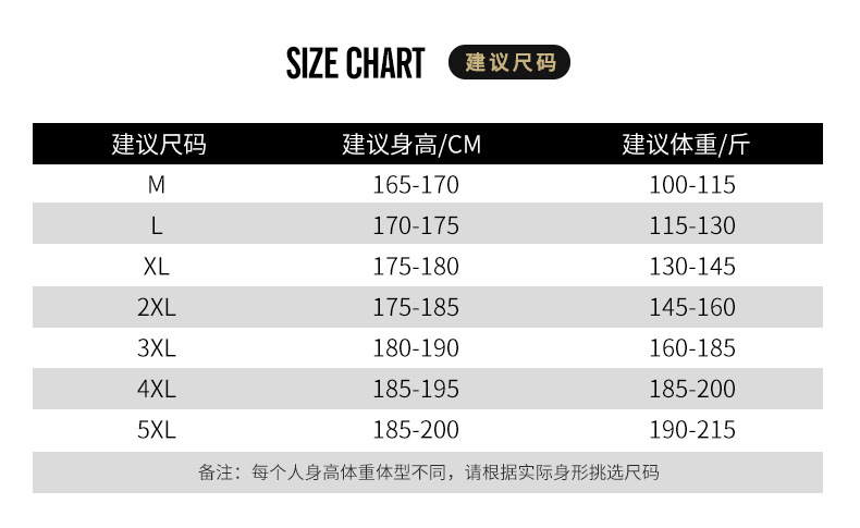 M; L; XL; XXL; 3XL; 4XL; 5XL