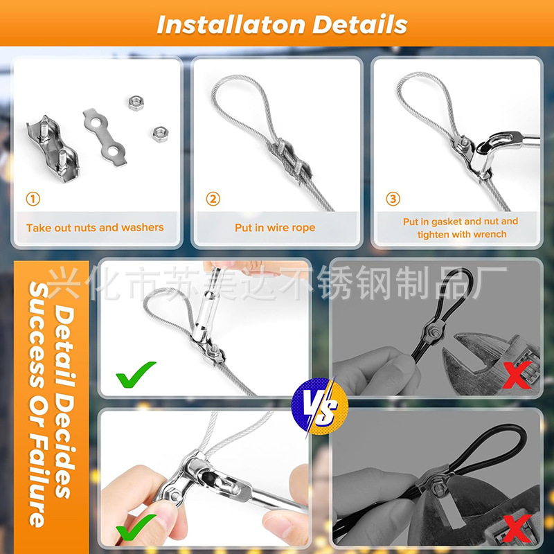 兴化市苏美达不锈钢制品厂是坐落于”中国不锈钢名镇”—江苏省兴化市戴南镇科技工业园区。是从事生产各种规格的不锈钢索具、钢丝绳配件、不锈钢U型螺栓、化学锚栓、不锈钢喉箍及各种销件等产品专业生产加工的公司,拥有完整、科学的质量管理体系。