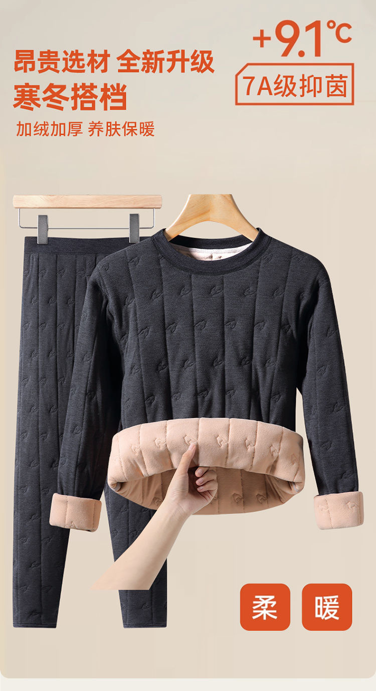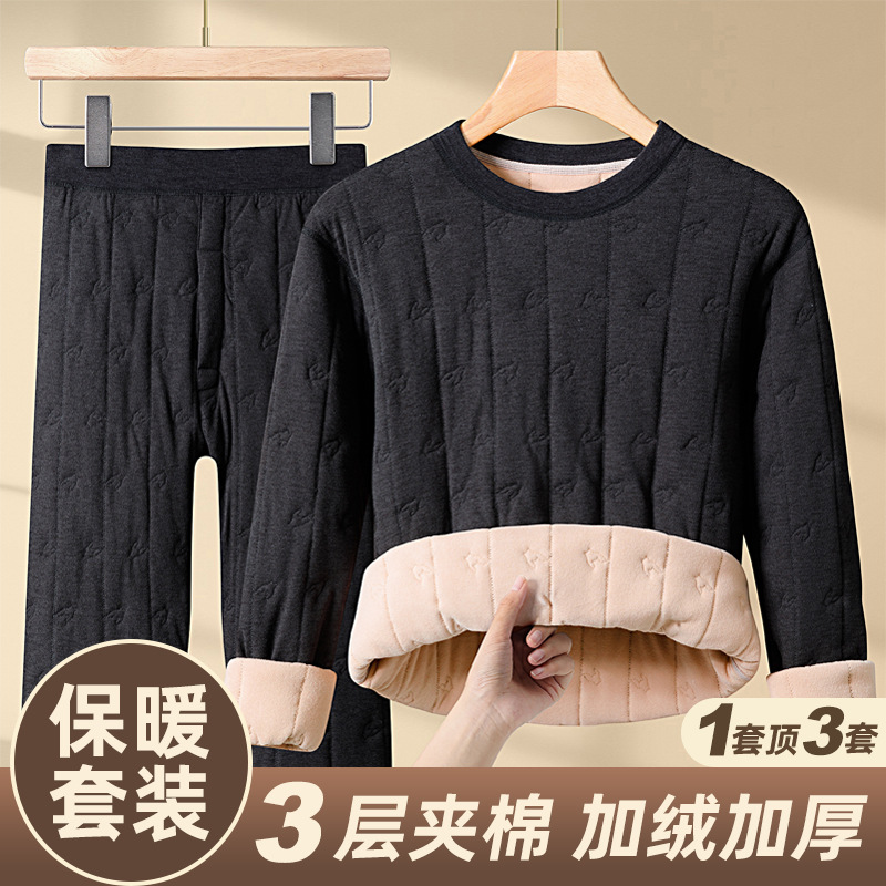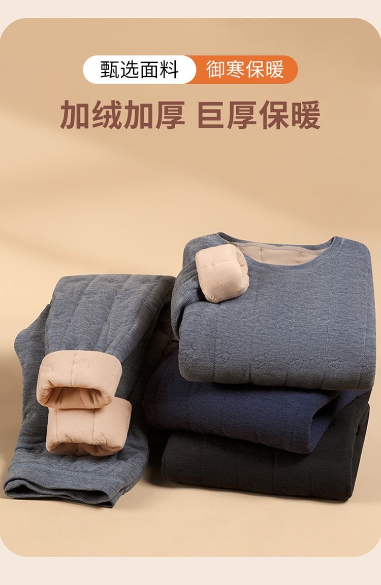 [Мягкая шерсть огромна] Теплый костюм для мужчин зимний большой размер плюс бархат утолщение для осенней одежды и нижнее белье для мужчин