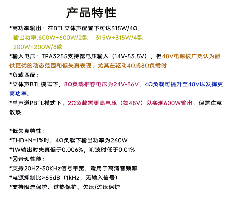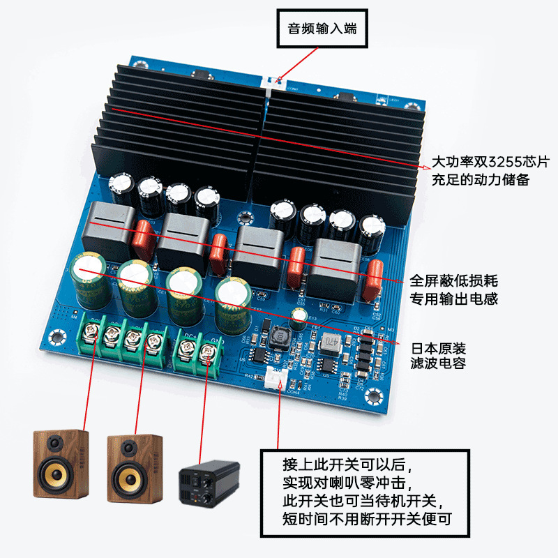 双TPA3255HIFI发烧大功率D类功放板DIY模块双声道600W+600W立体声