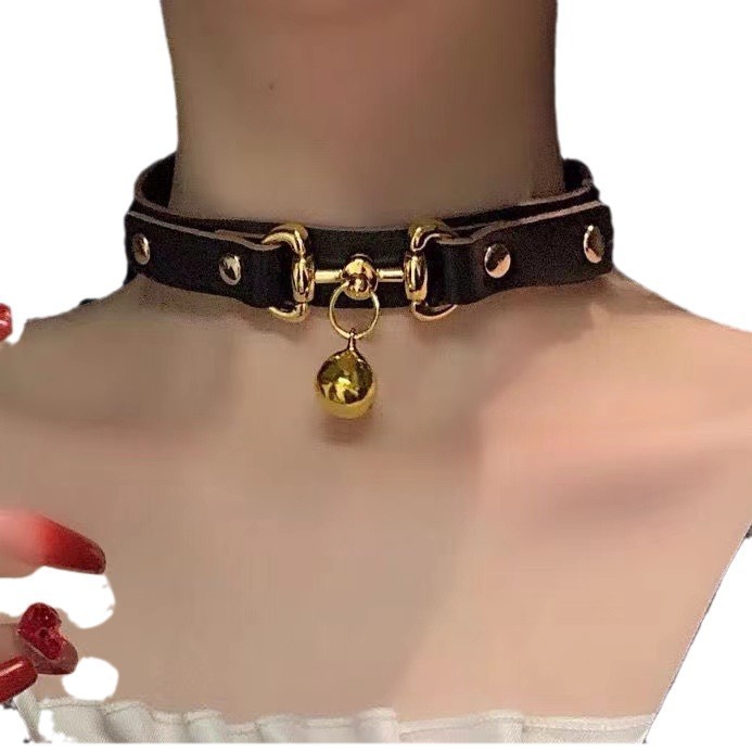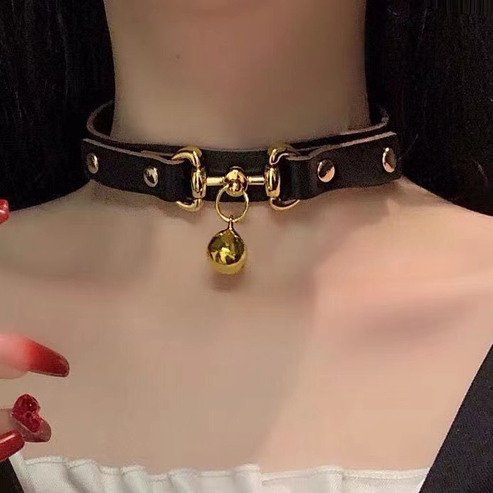 Маленький колокольчик ошейник женский шейный ремень черный шейный круг choker choker кожаный шейный кольцо ожерелье шейный шейный шейный ремень