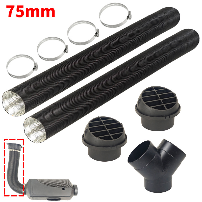 75 мм дизельный нагреватель Y-типа 3 разъема и 2 выхода воздуха и 2 трубы с подогревом черный