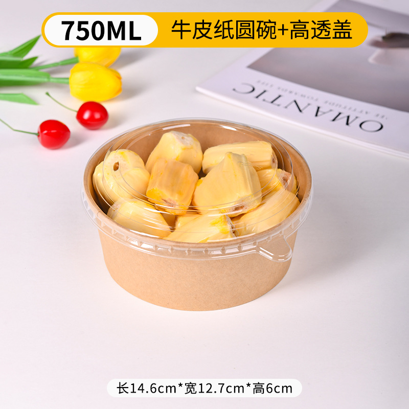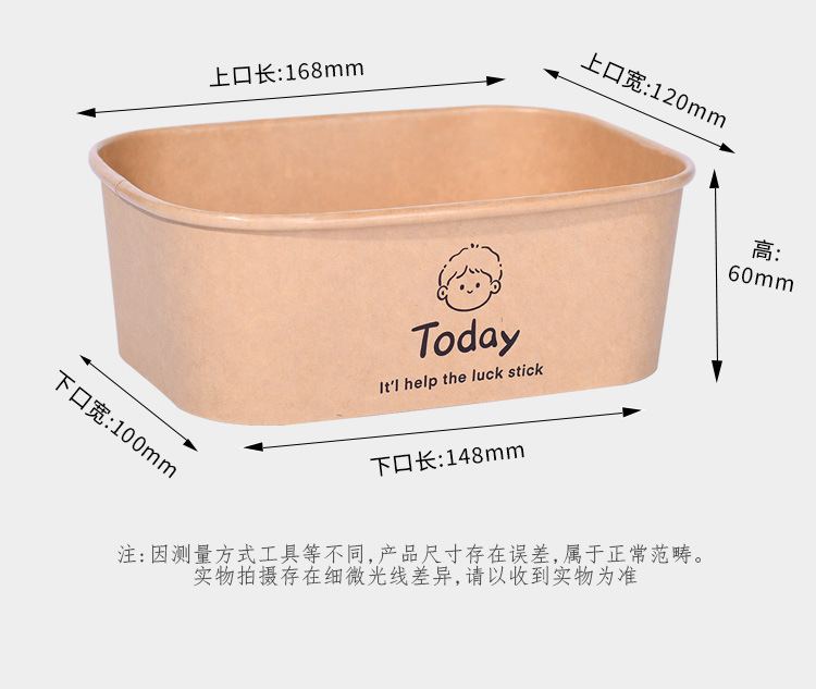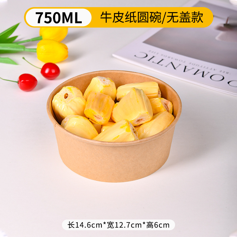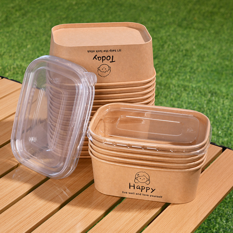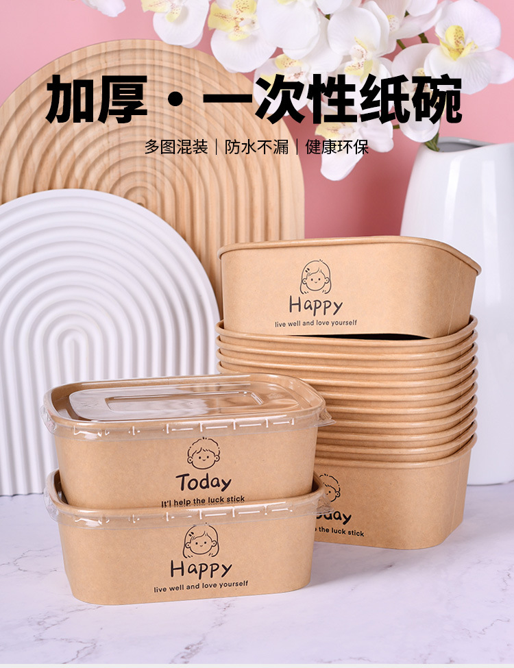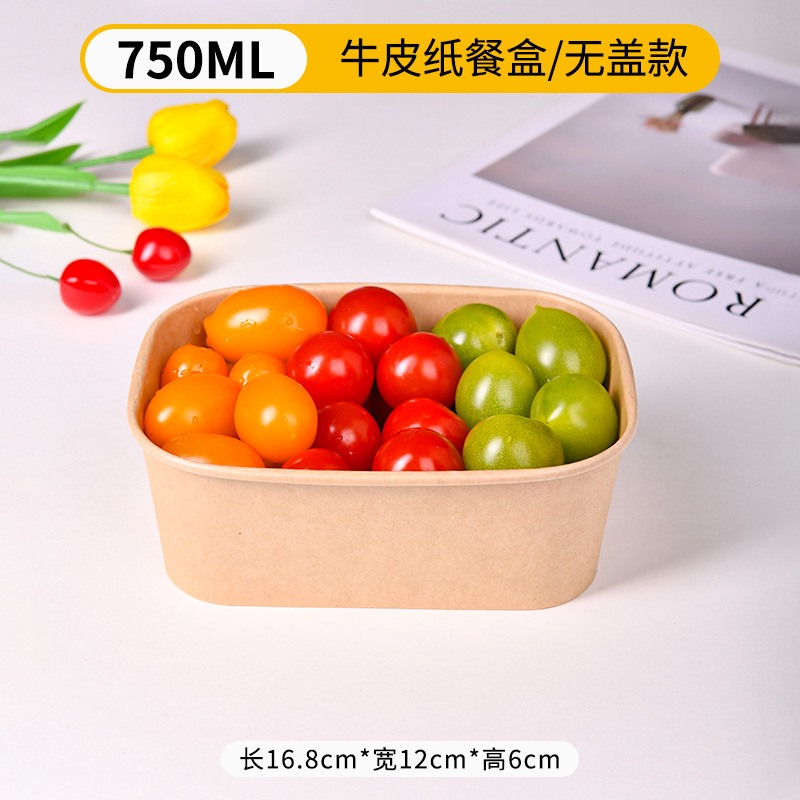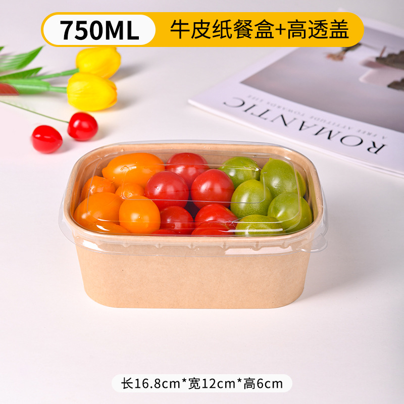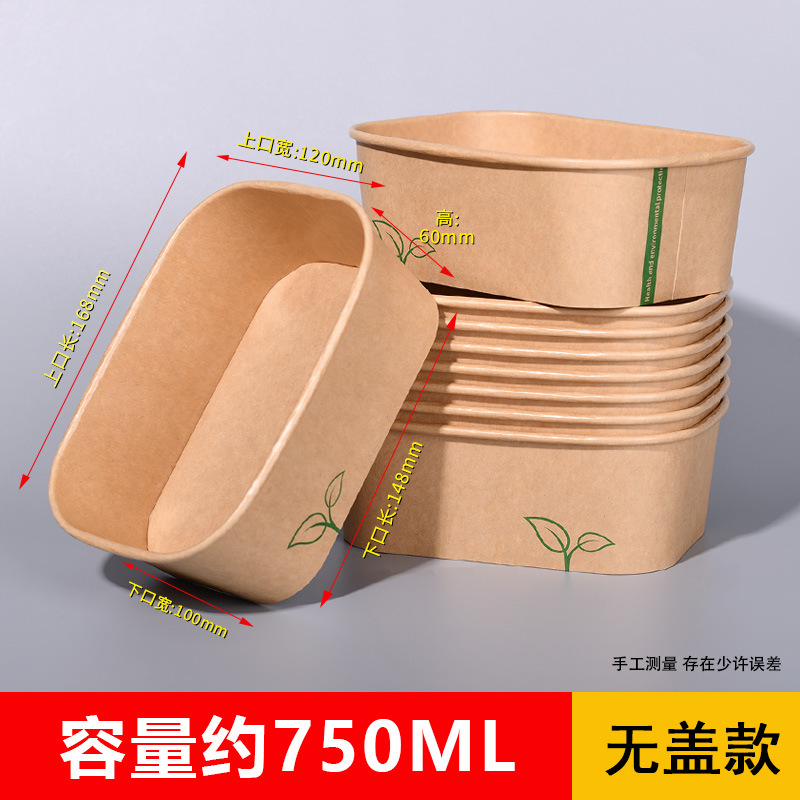 Крафт-бумага одноразовая ланч-бокс 750ml прямоугольный пикник для кемпинга фрукты салатная коробка на вынос бумажная миска упаковщик