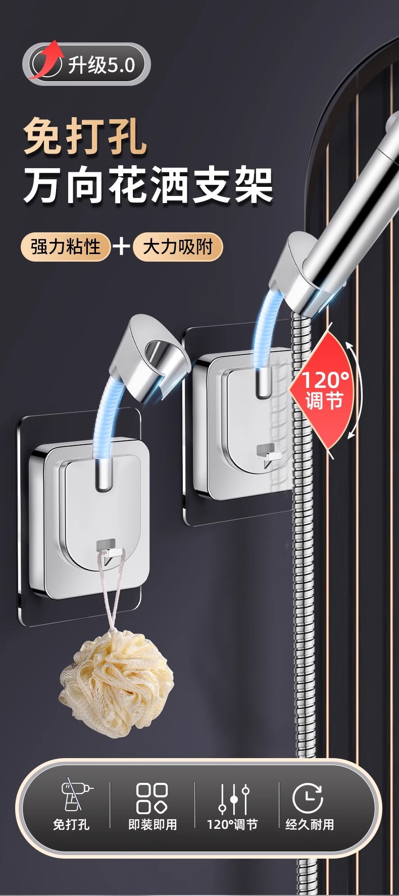 Подушитель для душа держатель насадки для душа без пробивания отверстия в ванной комнате