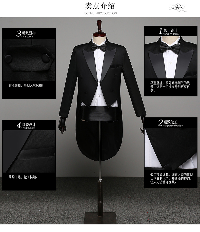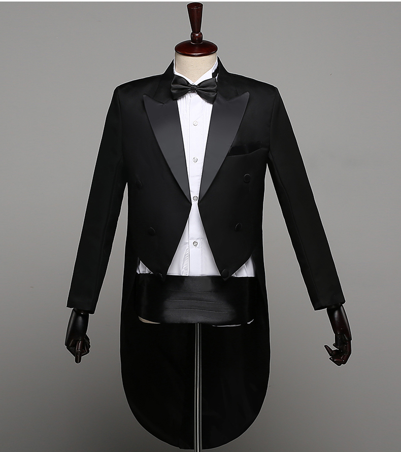 男装礼服 黑色燕尾服 圣诞节 魔术表演服装 爵士礼服 舞蹈比赛