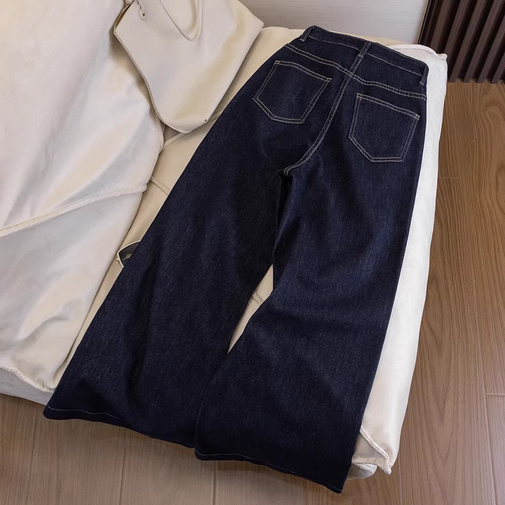 Джинсы с микро-клешем и высокой талией для женщин, на флисовой подкладке, для миниатюрных и полных фигур, винтажные, свободные, стройнящие, универсальные, прямые широкие брюки