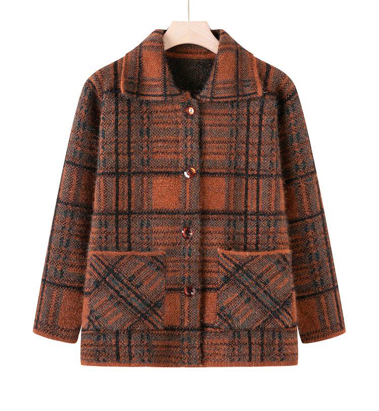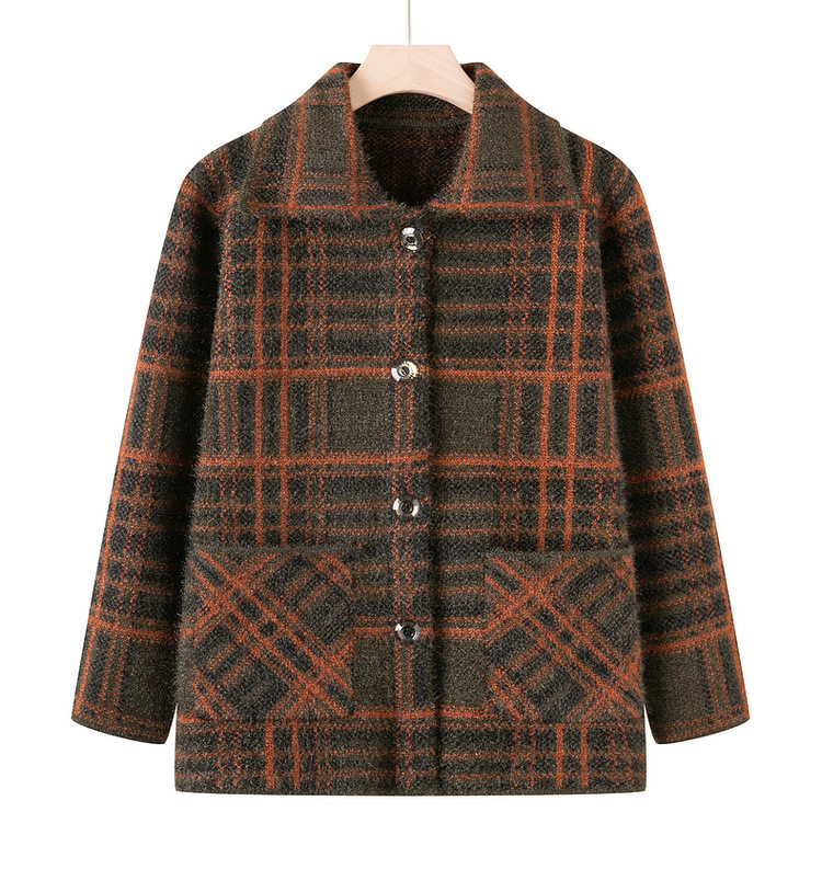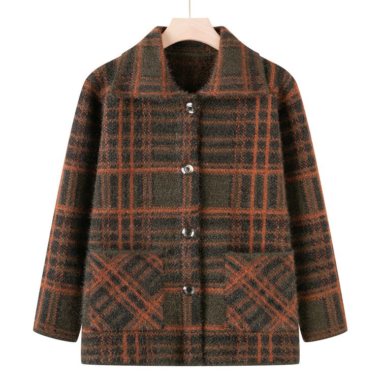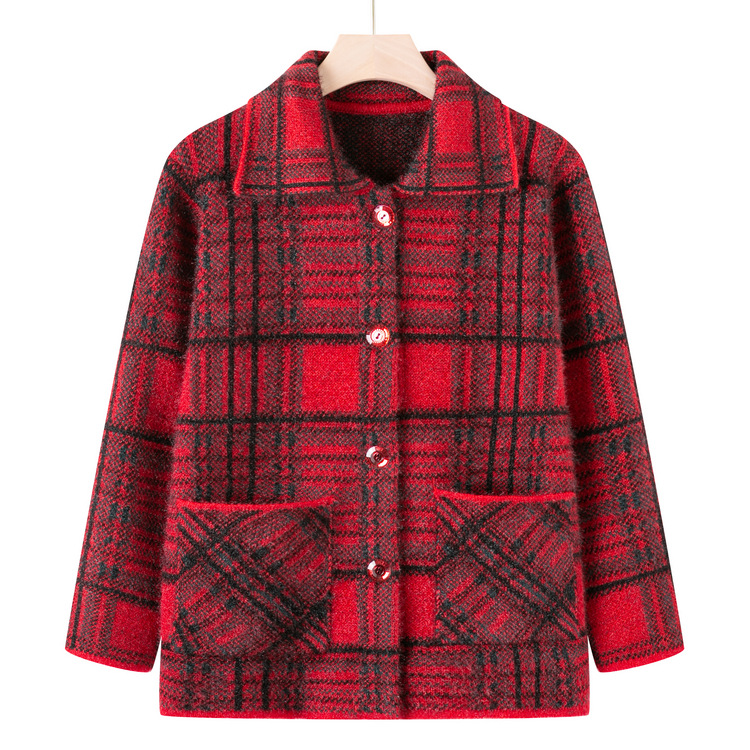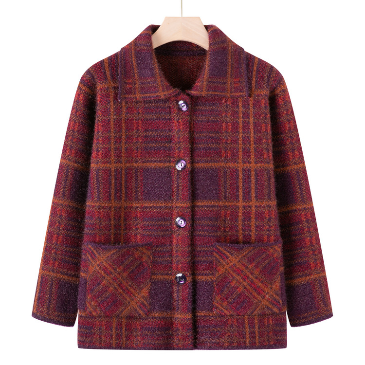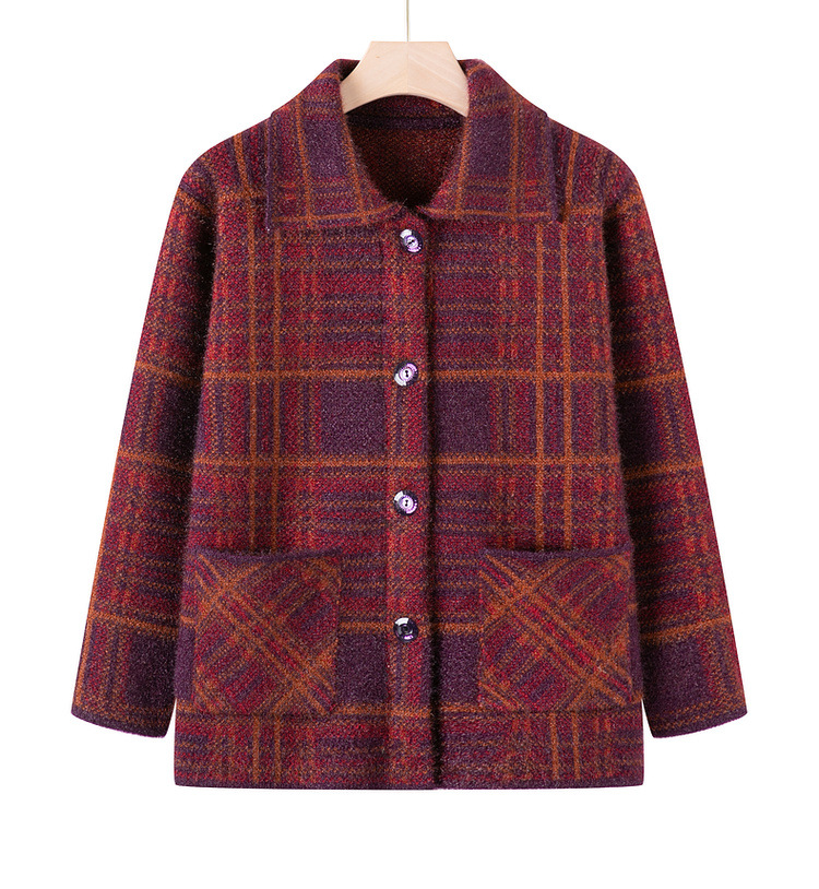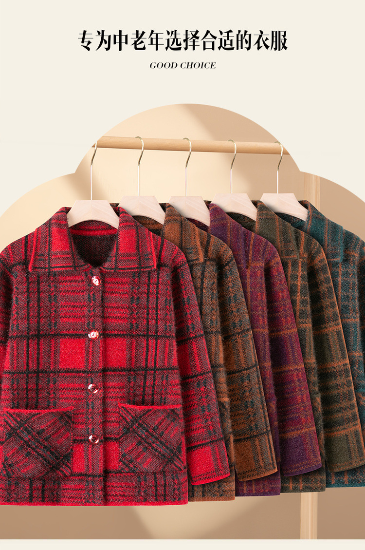 Бабушка весна и осень Новый свитер средний и пожилой мамы одеваются осенний толстый свитер женская старушка кардиган куртка