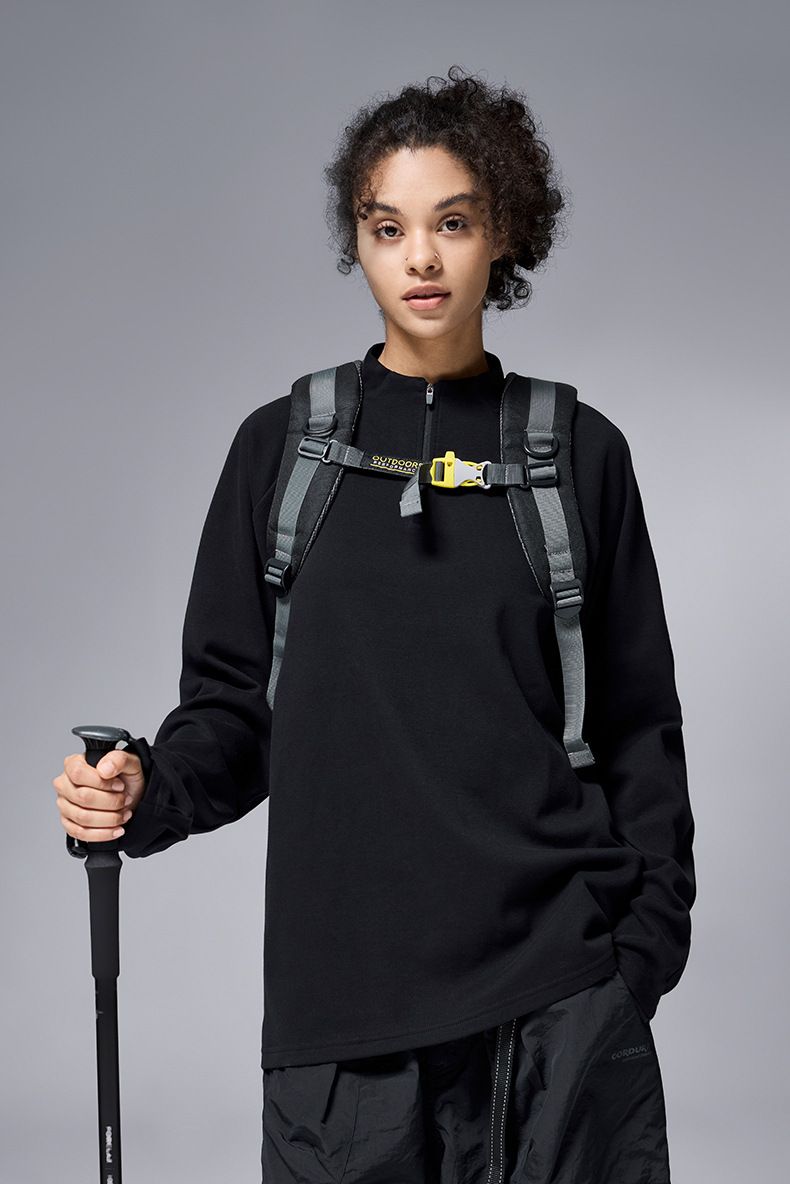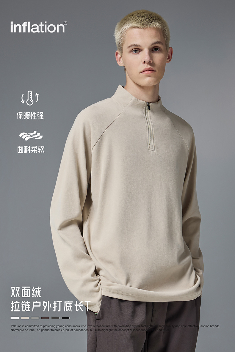 Мужская одежда Jie Zhan | Двусторонняя флисовая футболка на молнии до середины груди для активного отдыха, зимняя теплая, с рукавами реглан, длинный рукав, базовый слой, 2025