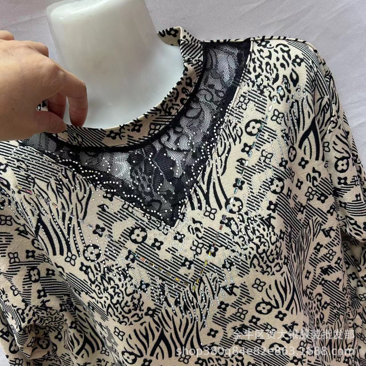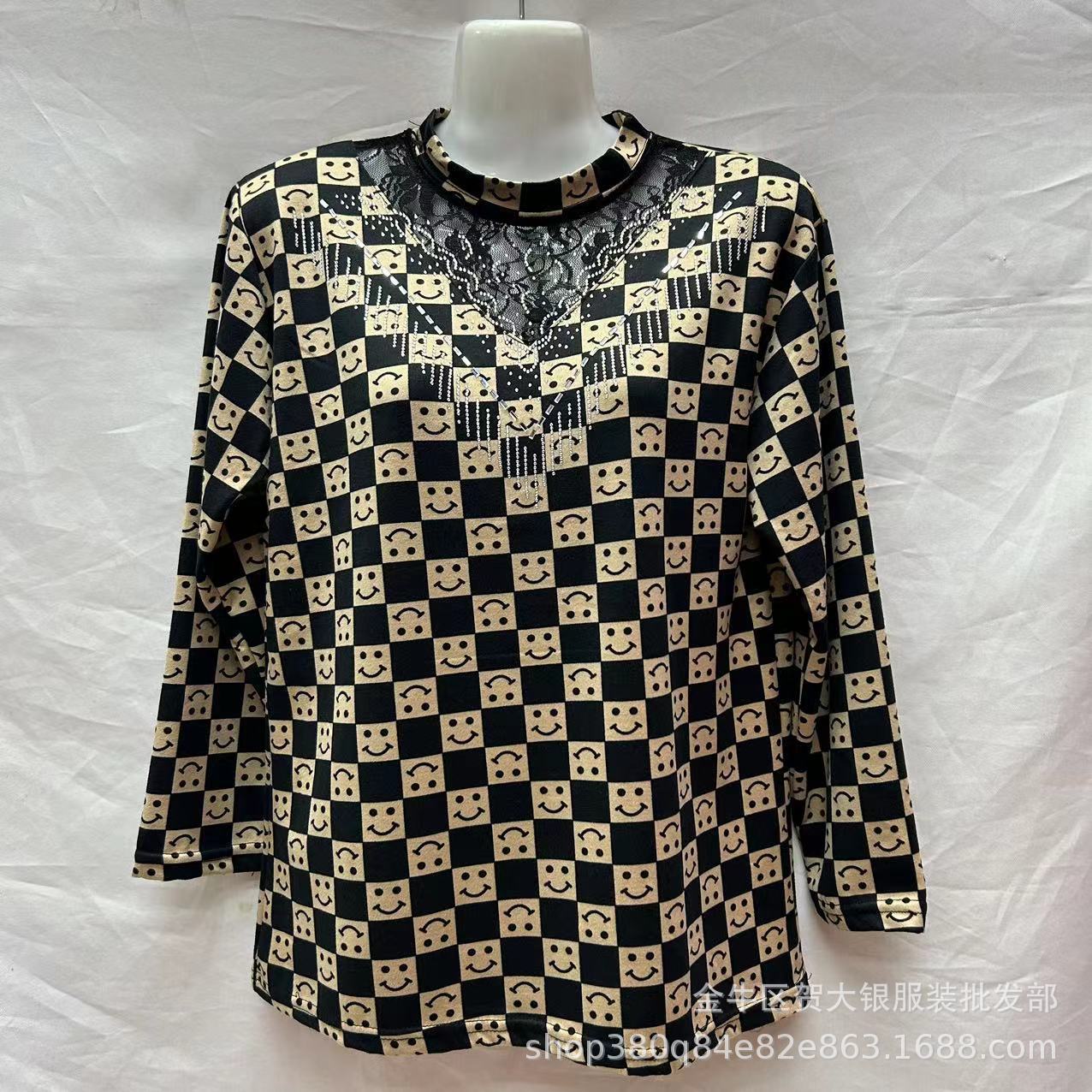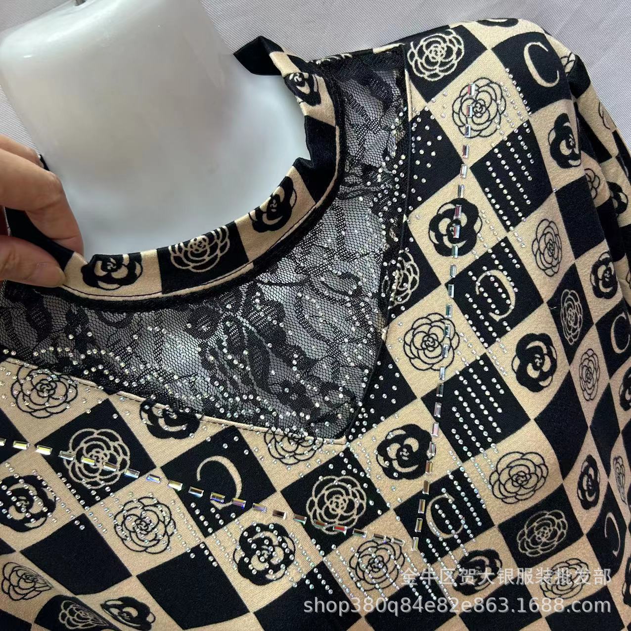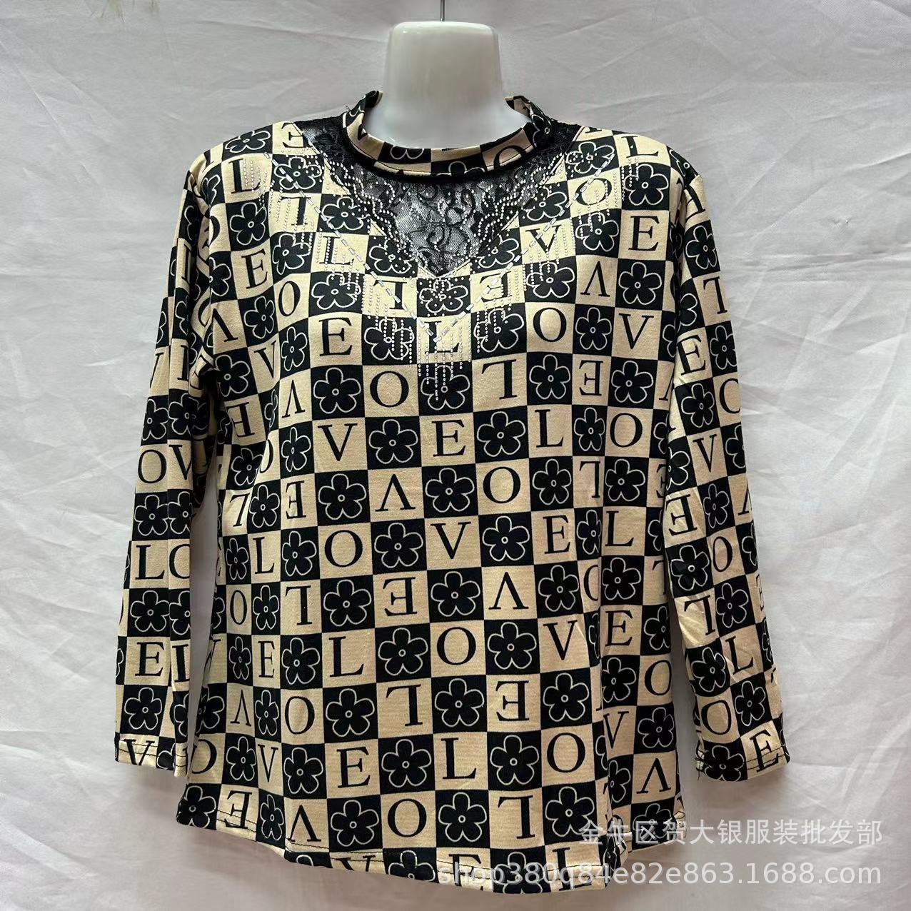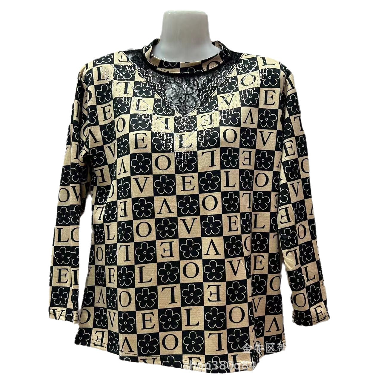 2024 осенняя и зимняя женская кожа, хлопчатобумажная кружевная футболка для пожилых мам