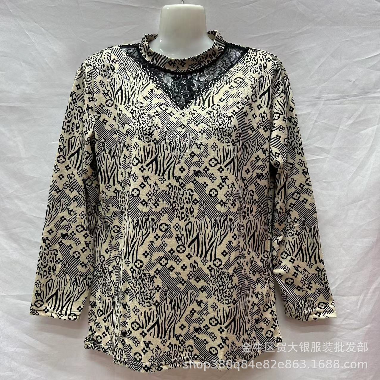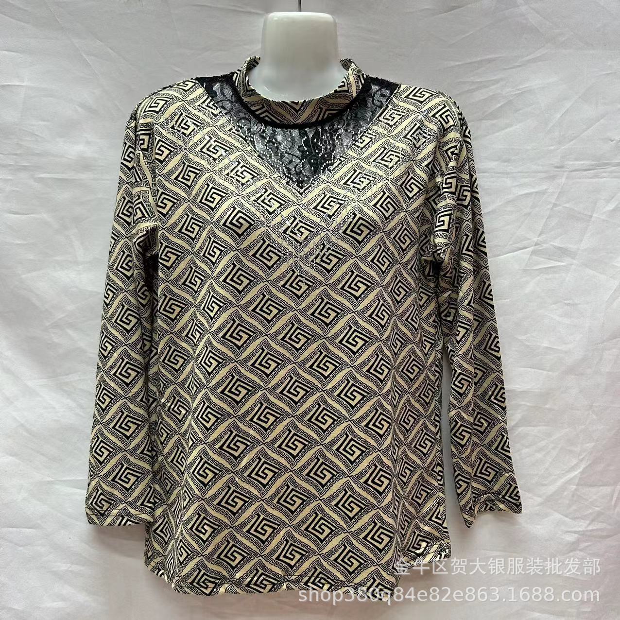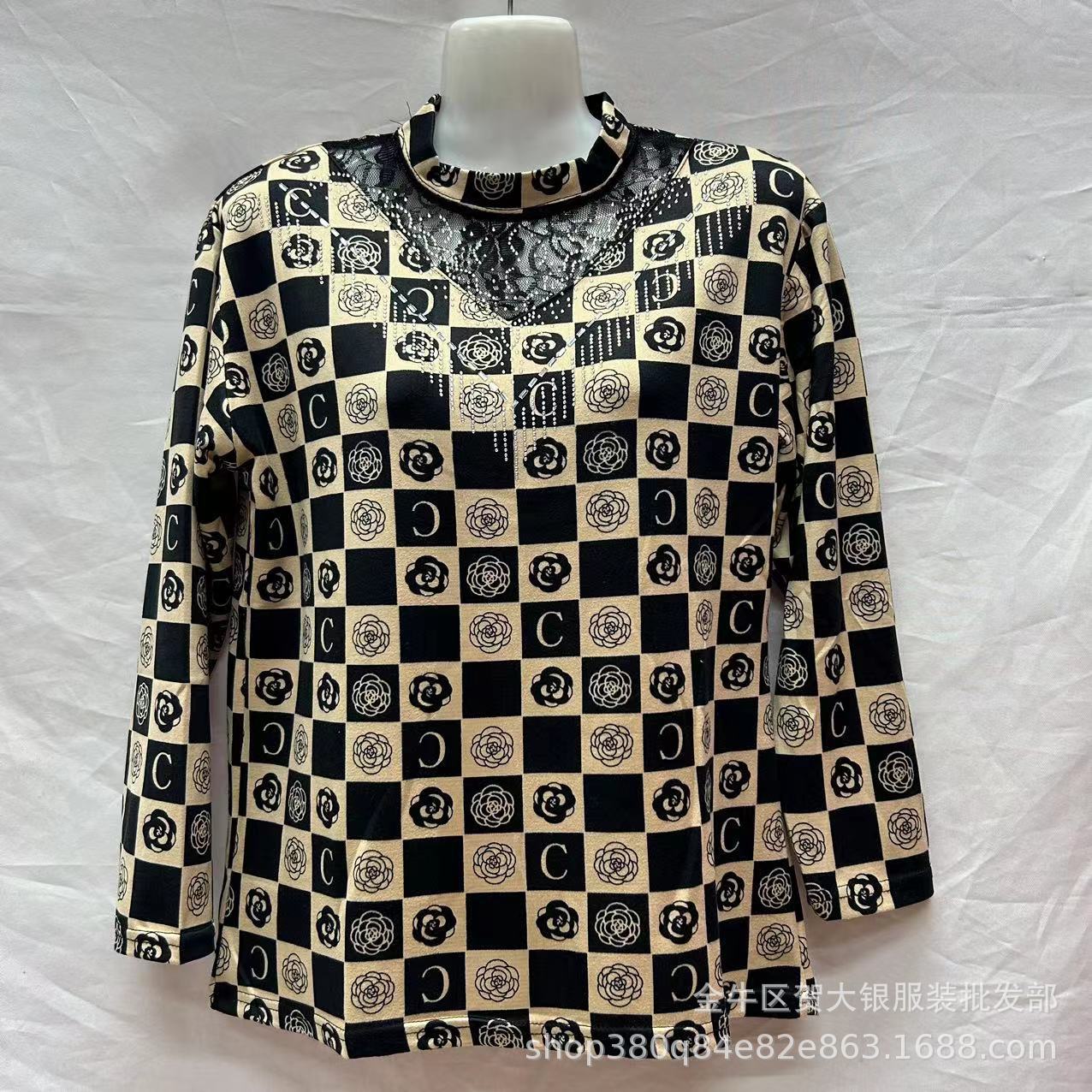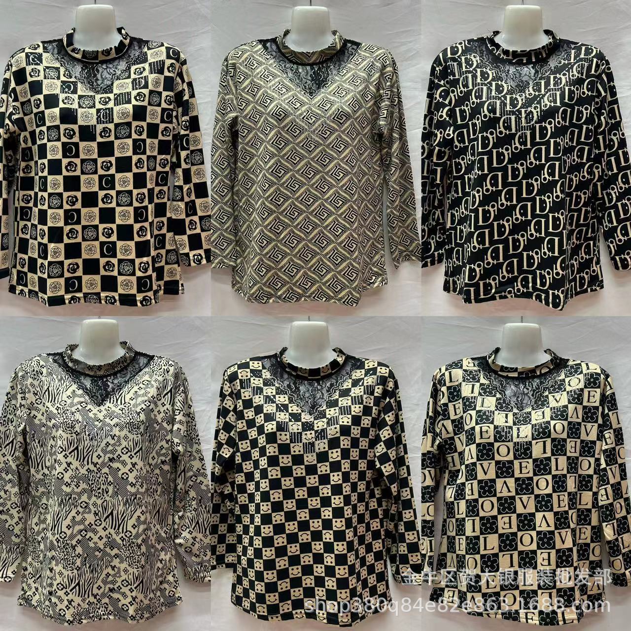2024 осенняя и зимняя женская кожа, хлопчатобумажная кружевная футболка для пожилых мам
