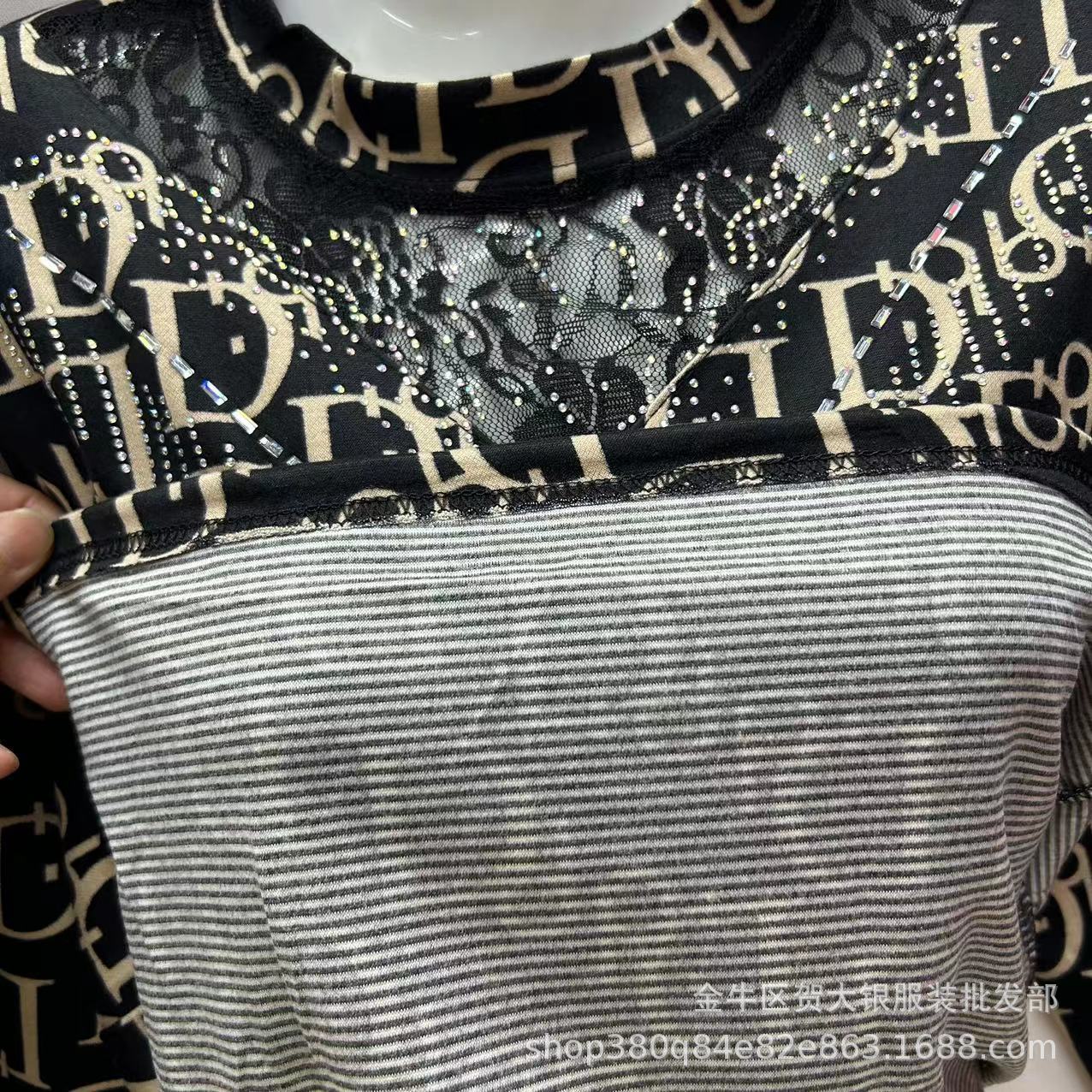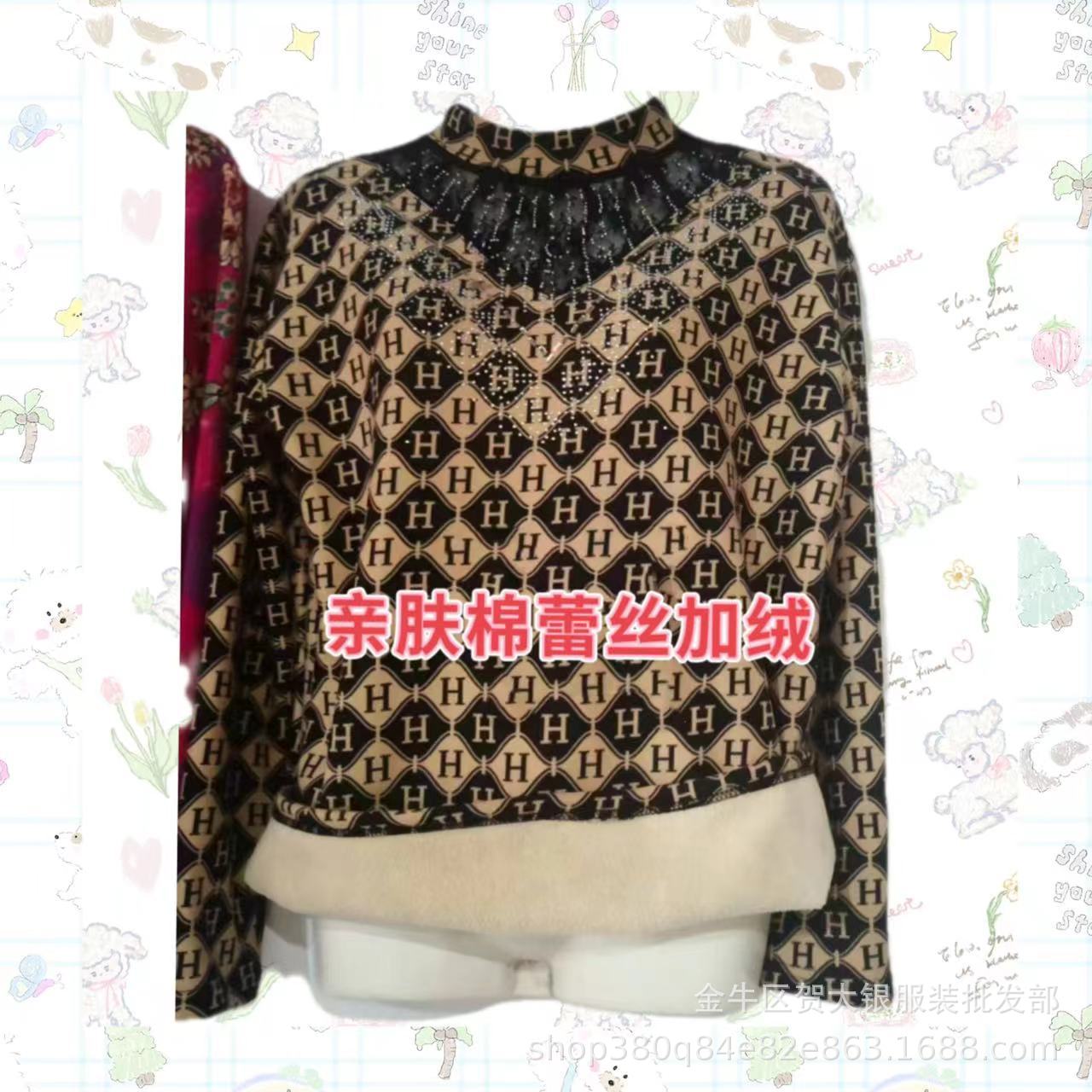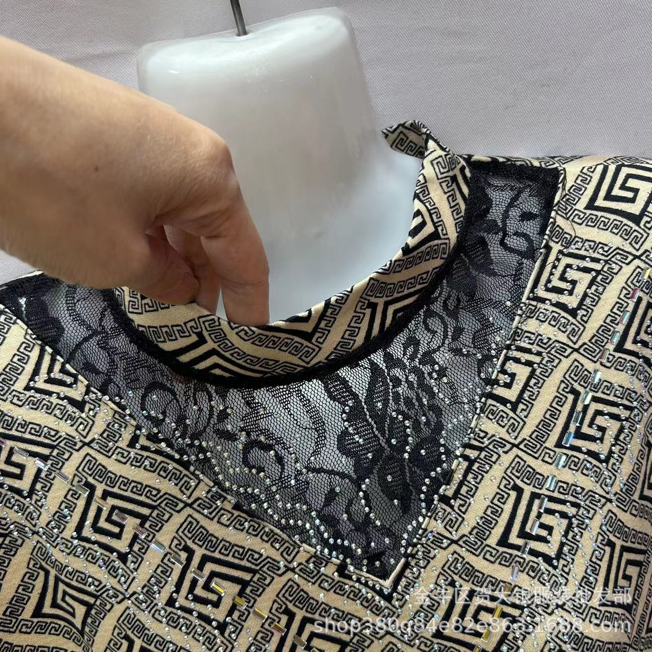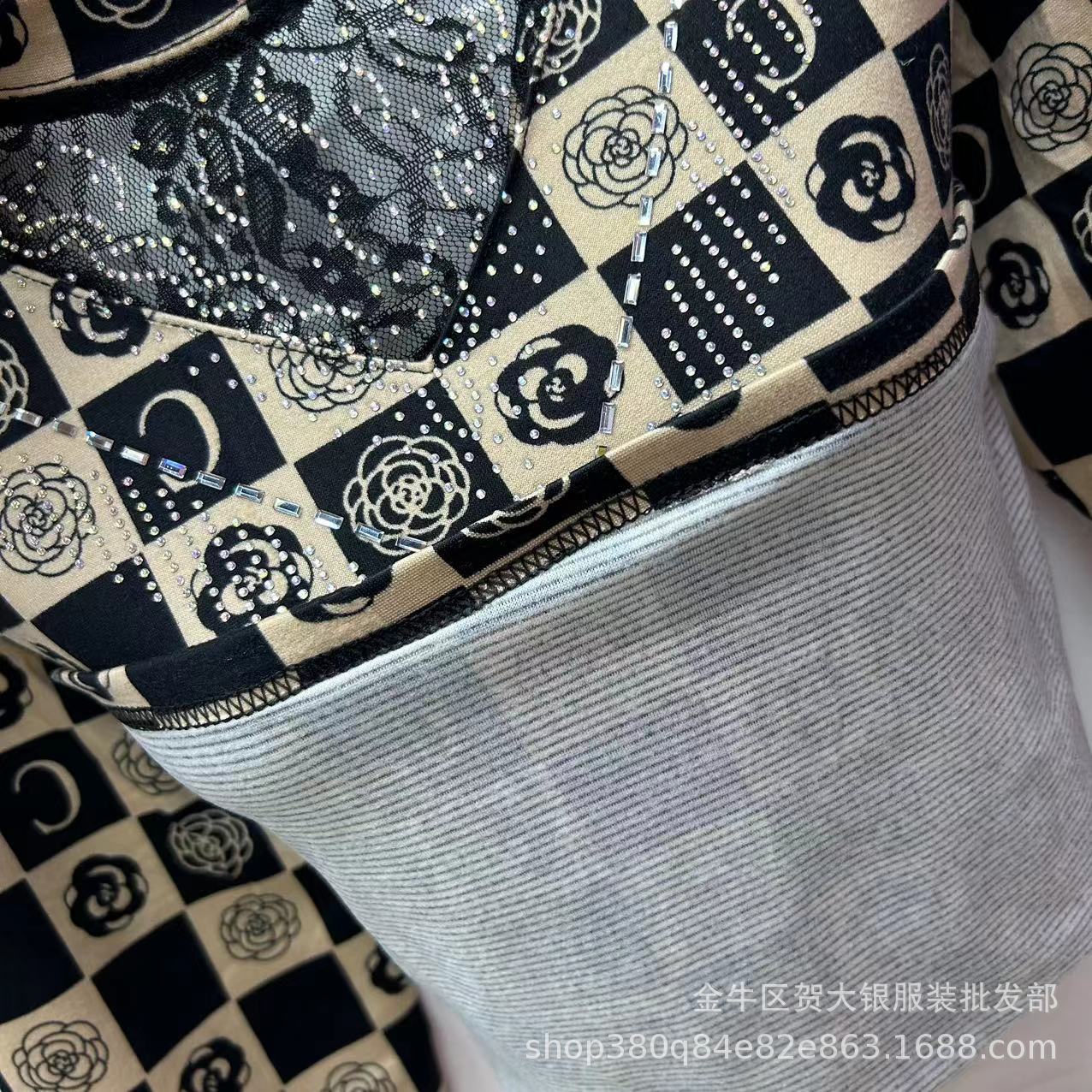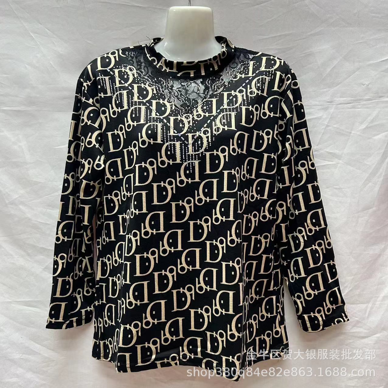 2024 осенняя и зимняя женская кожа, хлопчатобумажная кружевная футболка для пожилых мам