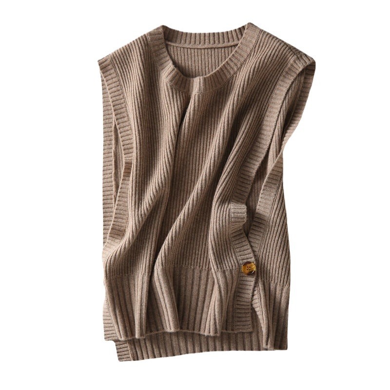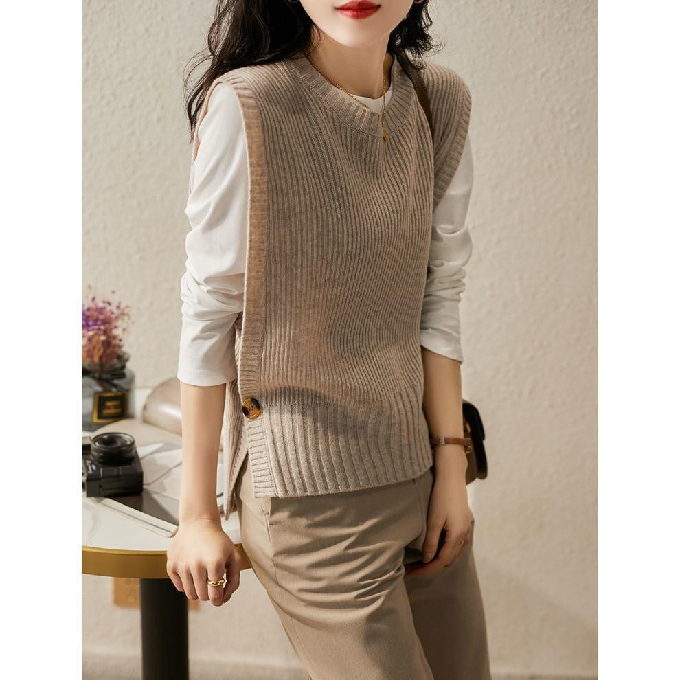 Новый женский трикотажный жилет в корейском стиле для трансграничной торговли, повседневный, с круглым вырезом, в полоску, без рукавов, на пуговицах.