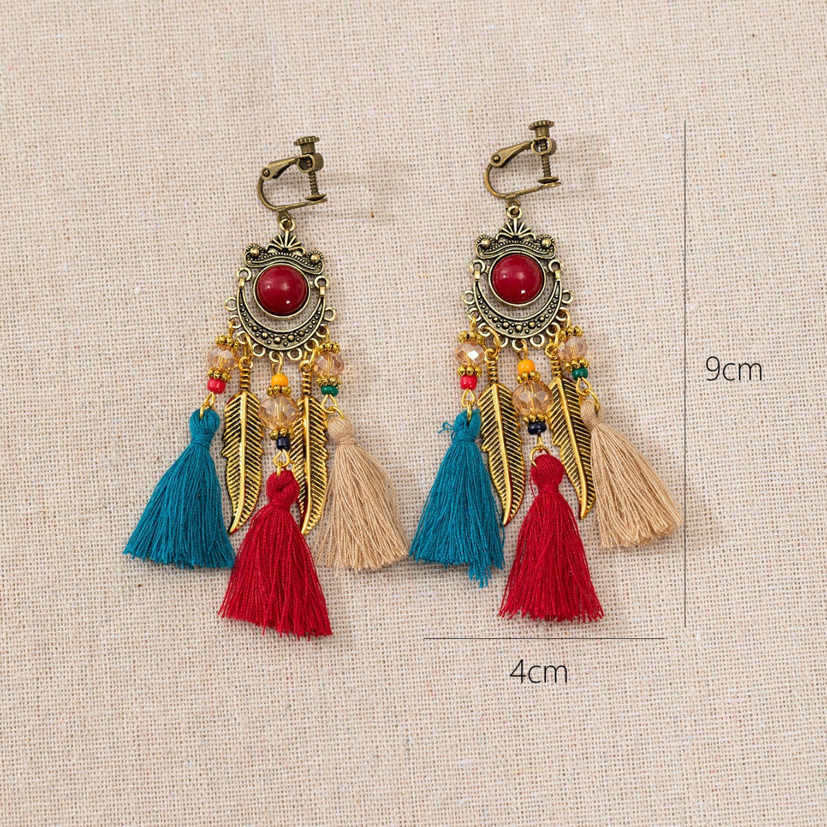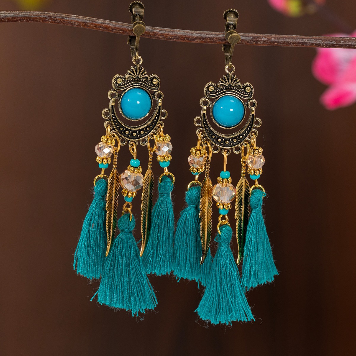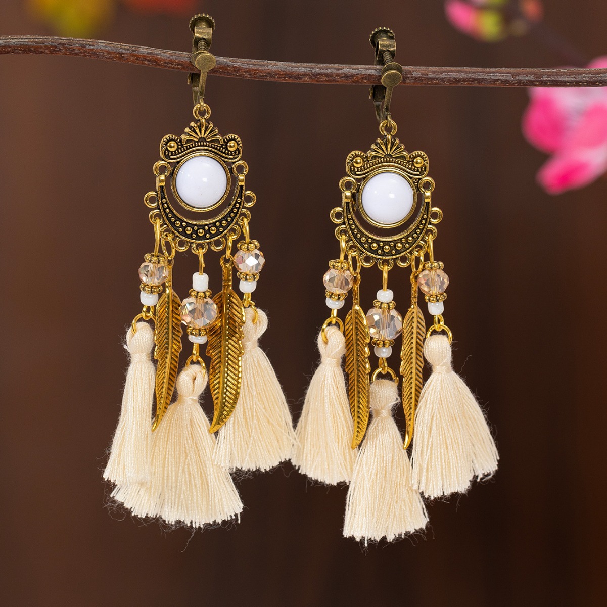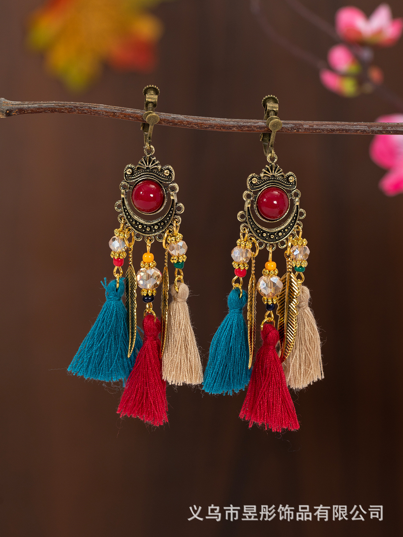 Богемный стиль длинные серьги с кисточками женские 2024 новый стиль высокого уровня чувство курорта ушные зажимы национальные серьги ветра