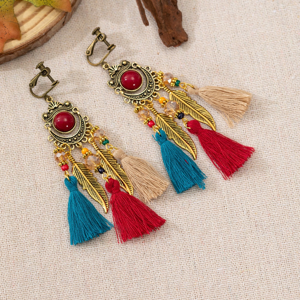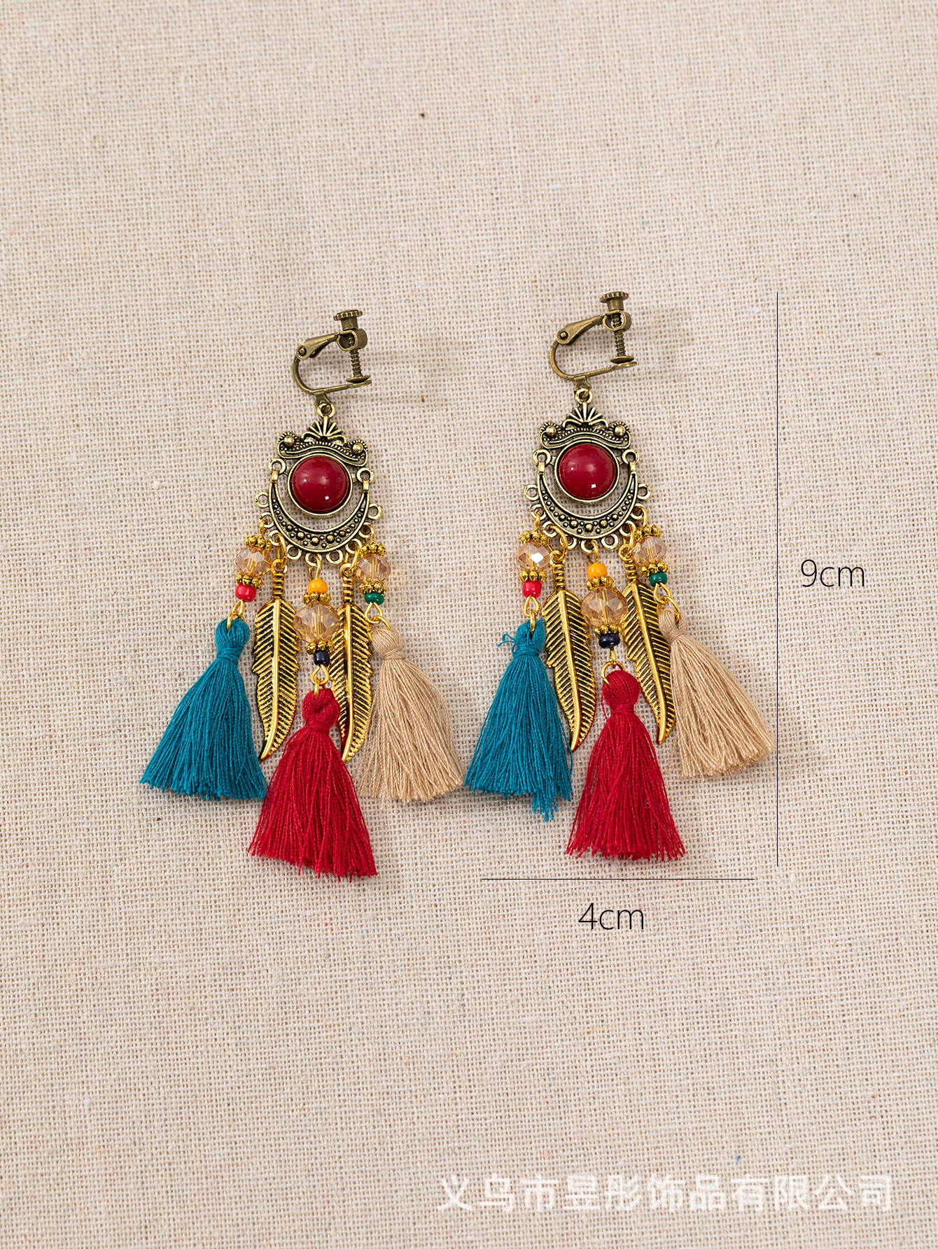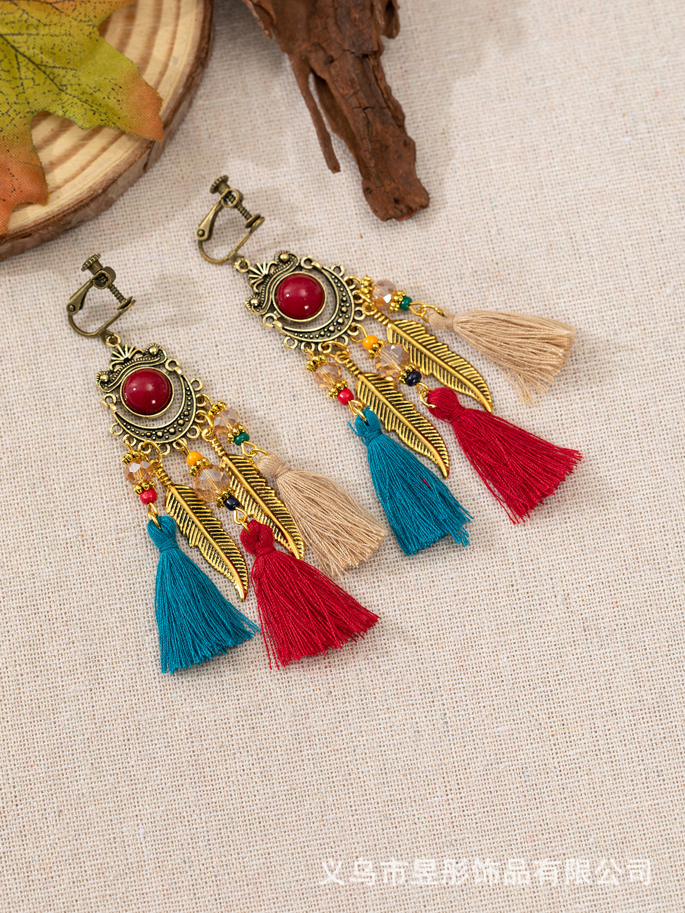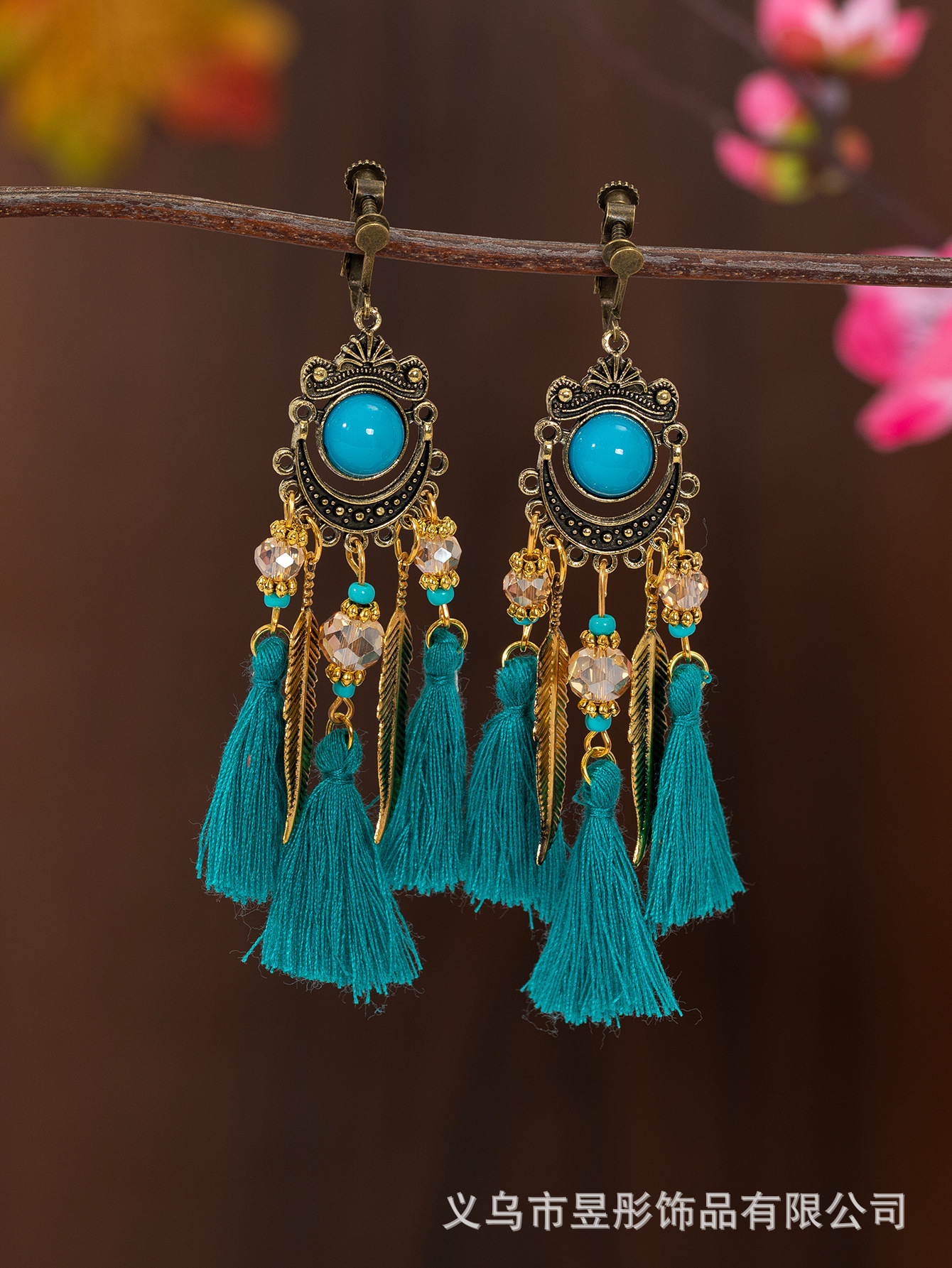 Богемный стиль длинные серьги с кисточками женские 2024 новый стиль высокого уровня чувство курорта ушные зажимы национальные серьги ветра