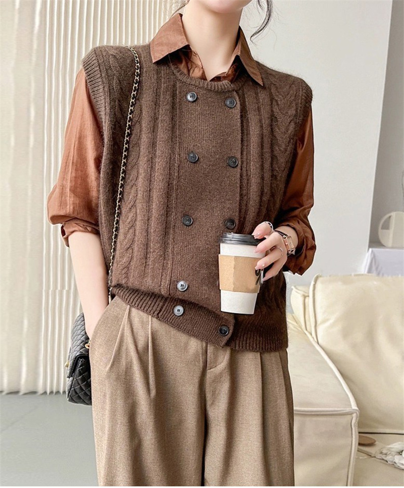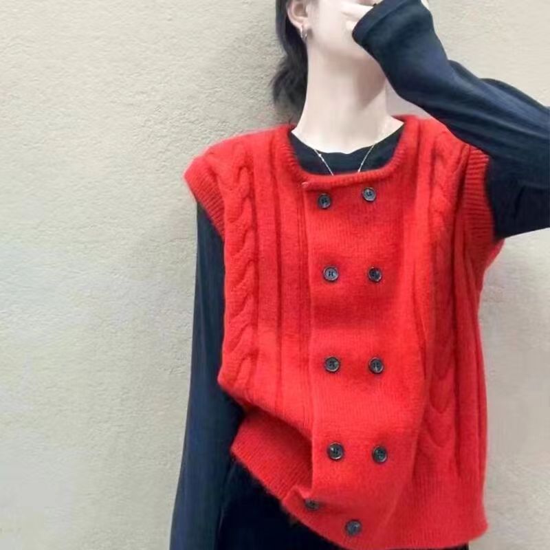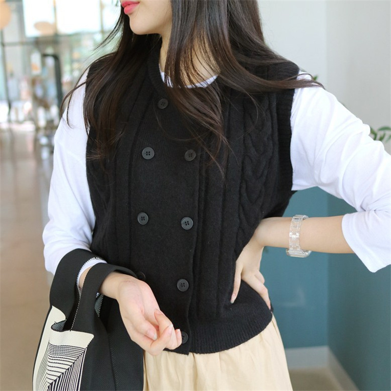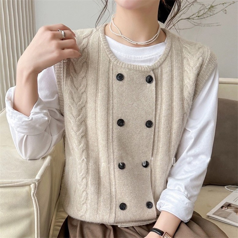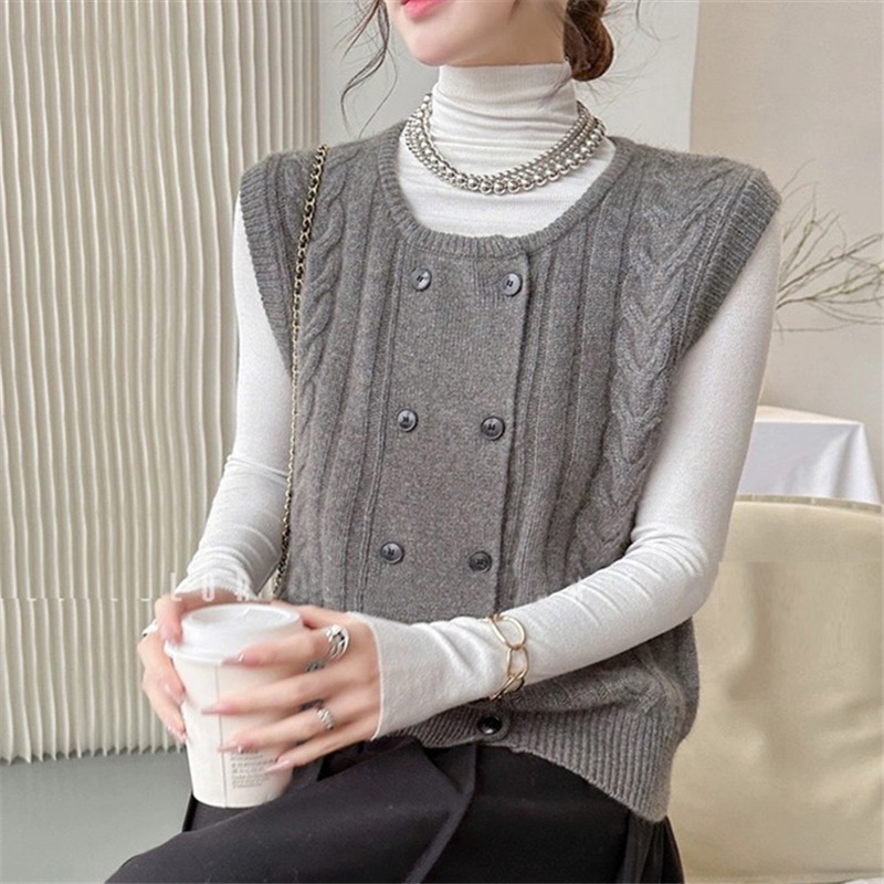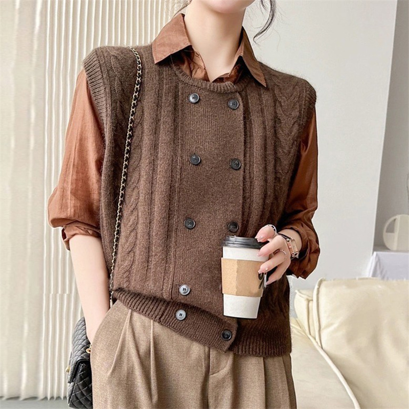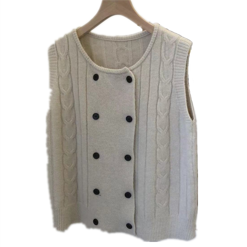 Корейский ретро-стиль двубортный трикотажный жилет кардиган женский 2024 осень и зима новый стек свитер жилетка женский