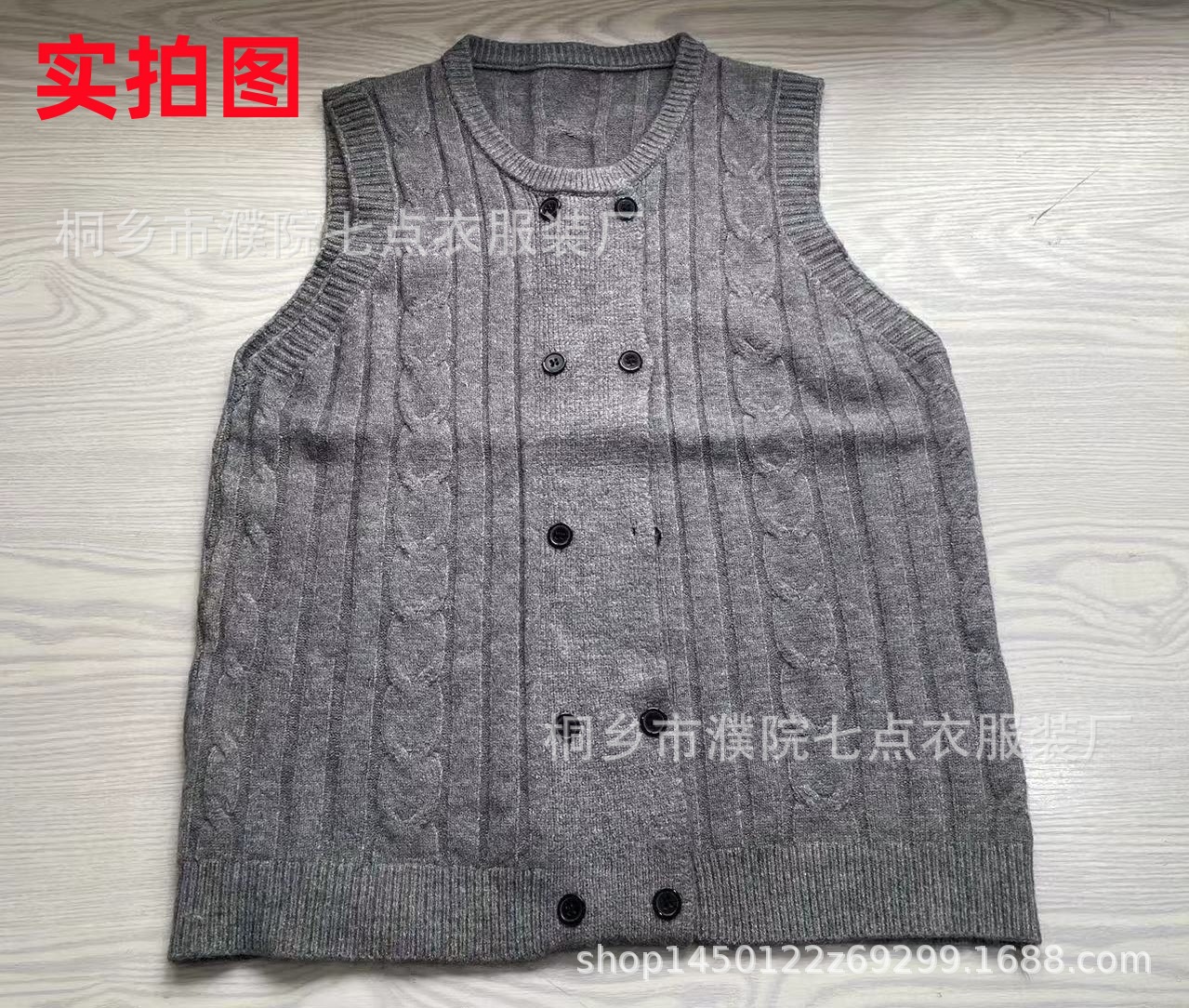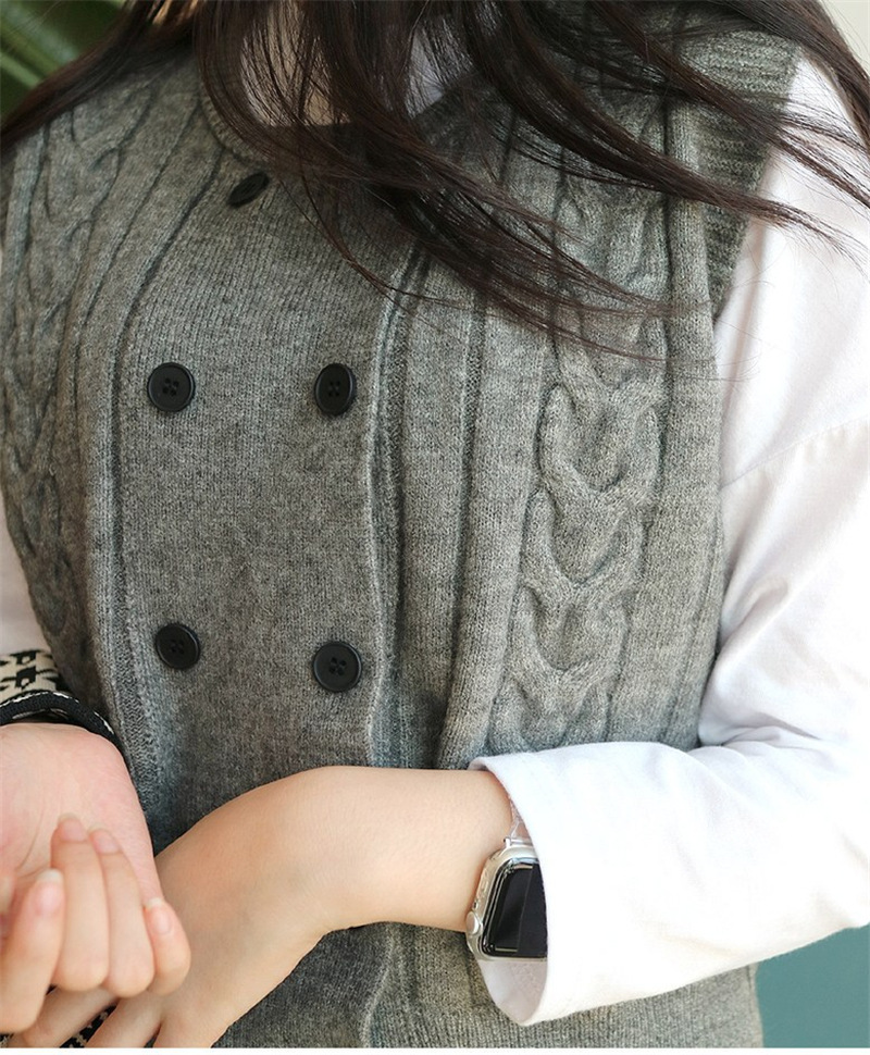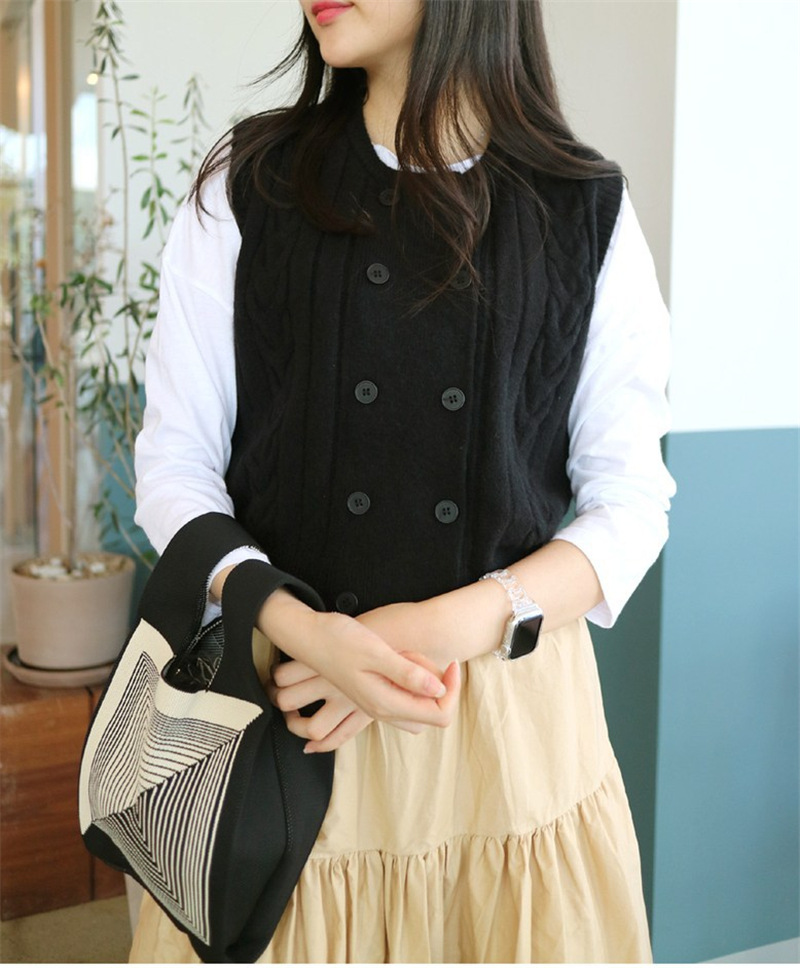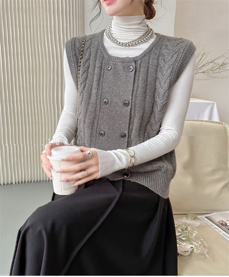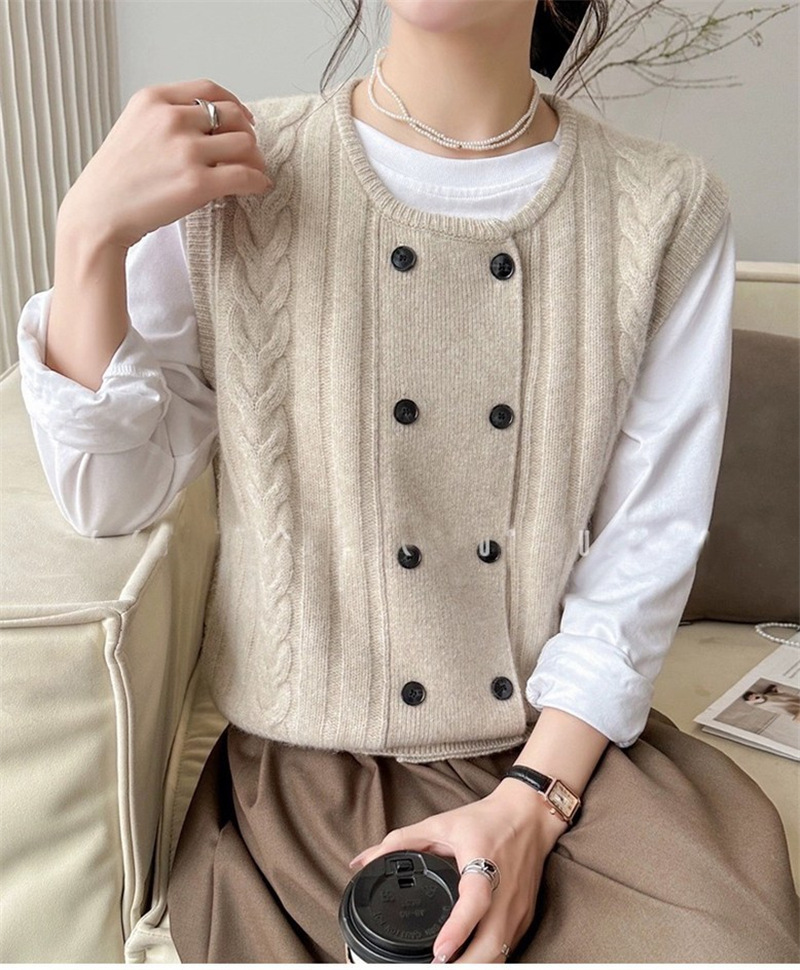 Корейский ретро-стиль двубортный трикотажный жилет кардиган женский 2024 осень и зима новый стек свитер жилетка женский