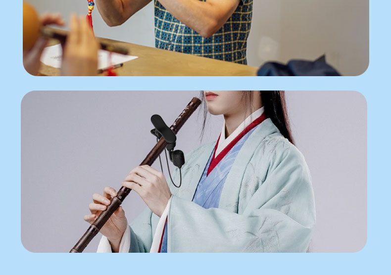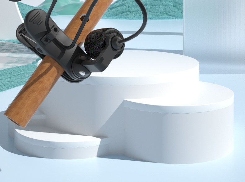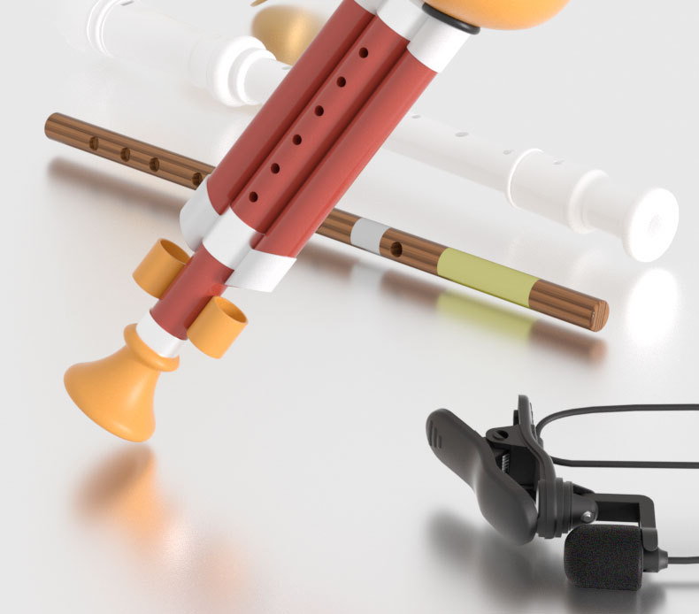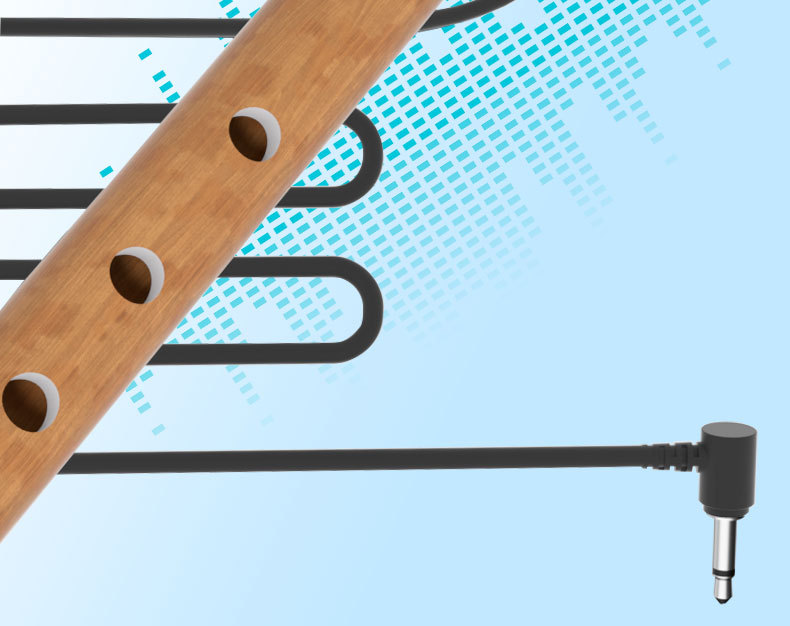 Бамбуковая флейта играет в проводной микрофон