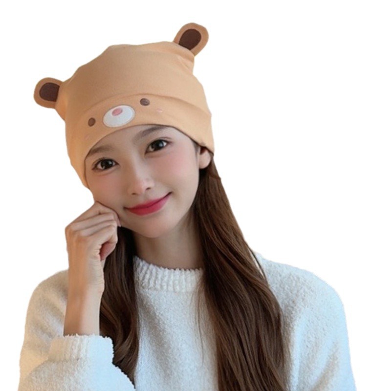 Мягкая маленькая круглая шапка Camel Cotton с медведем; Мягкая маленькая круглая шапка бежевого хлопка с медведем; Мягкая маленькая круглая повязка на голову из верблюжьей хлопка; Мягкая маленькая круглая повязка на голову из бежевого хлопка