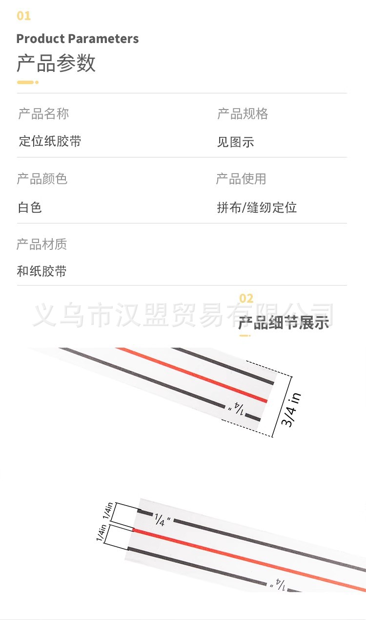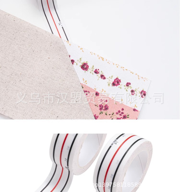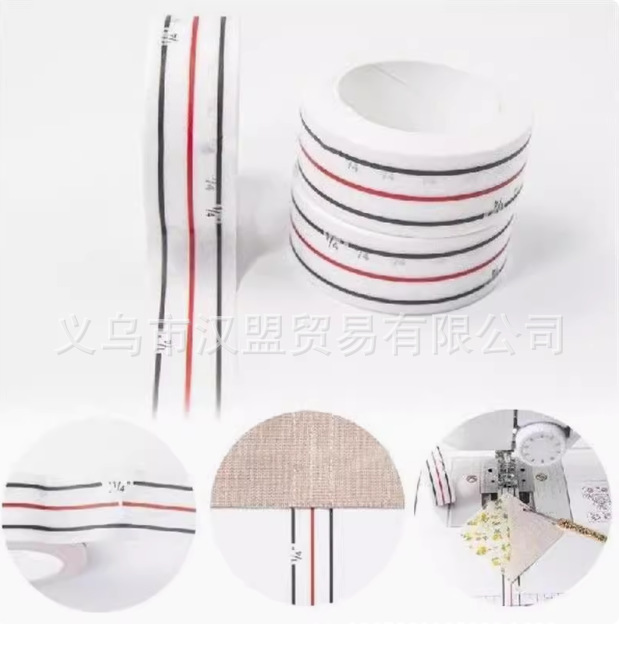 非常方便,用来缝直对角线,不需要标线,红色线迹,两边缝边; 易于去除,但建议经常或在每件物品后去除或更换胶带,避免在您的机器上留下任何残留物,长期使用而不更换可能会导致一些残留物不能被清理干净。