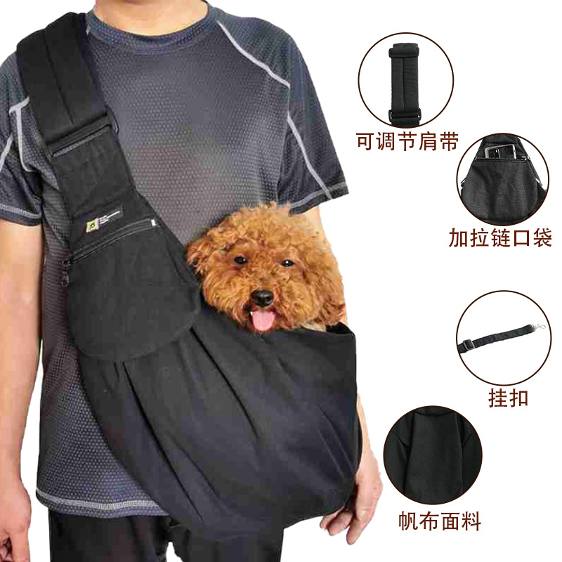 可折叠便携海绵肩带可调节宠物斜挎包 帆布材质宠物户外狗狗背包
