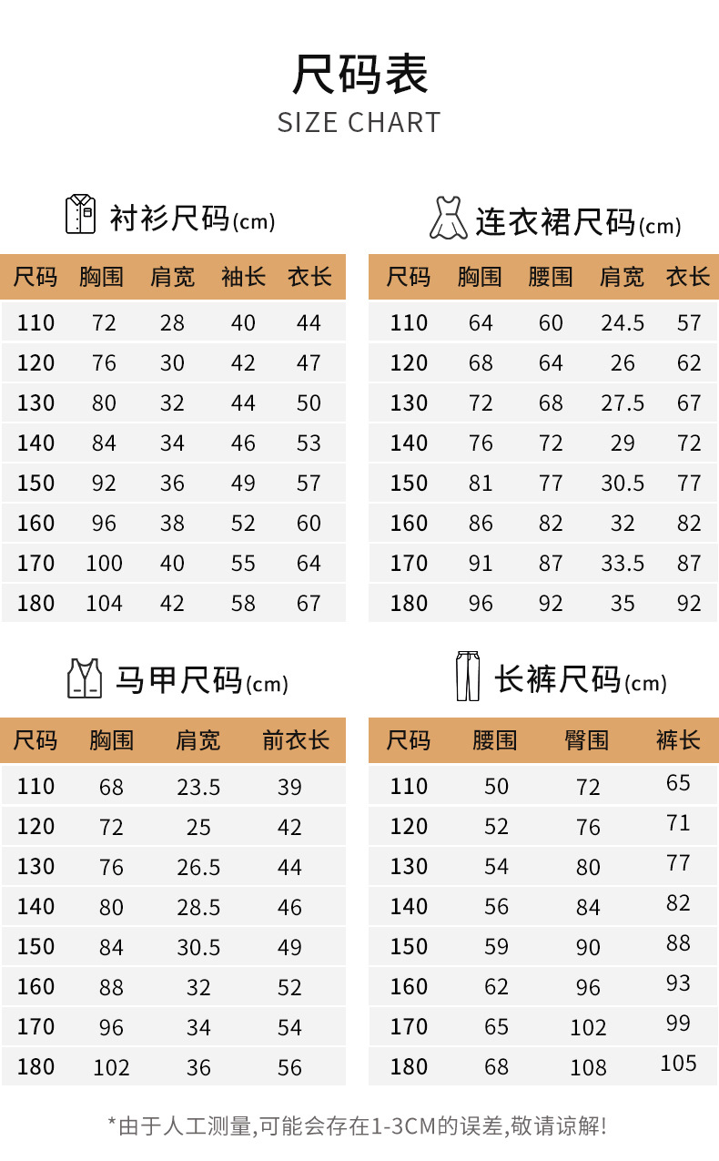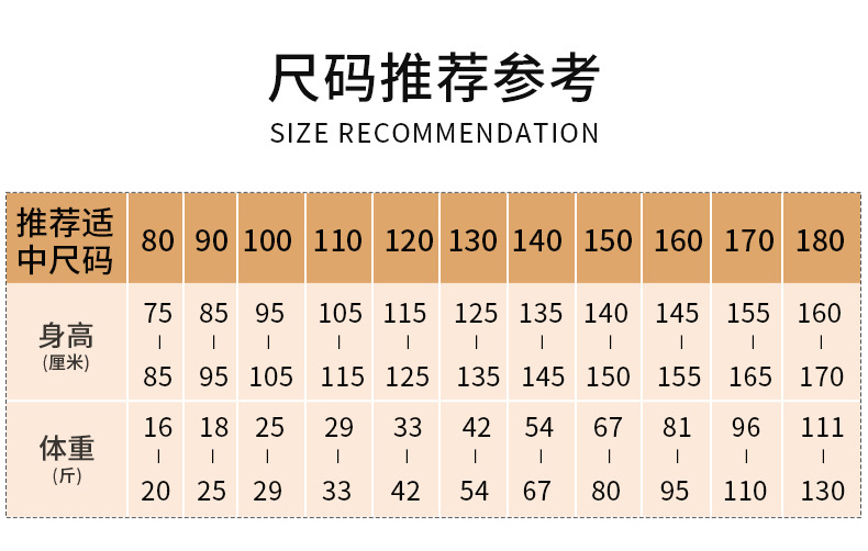 110cm; 120cm; 130cm; 140cm; 150cm; 160cm; 170cm; 180cm