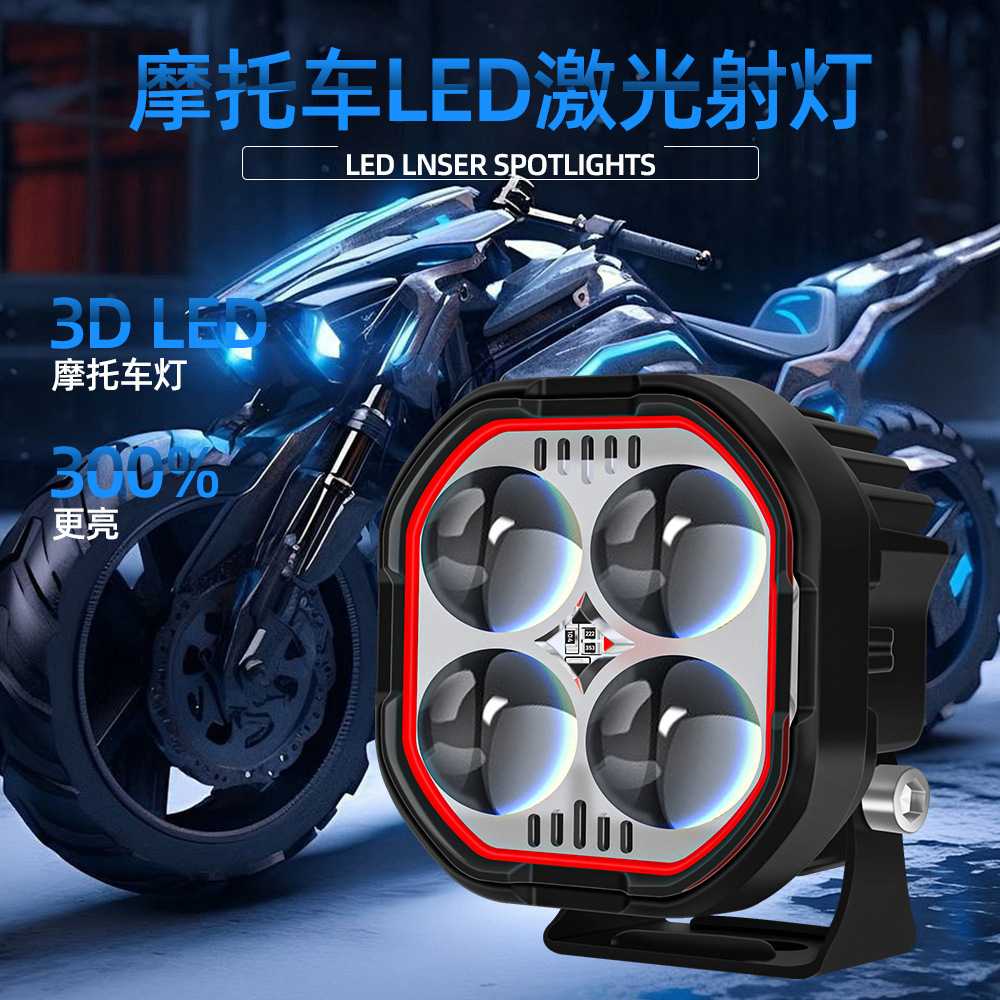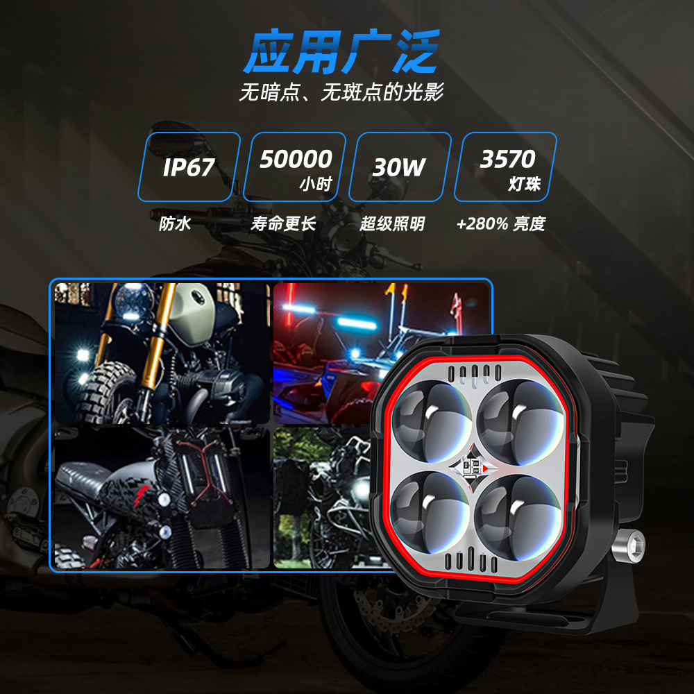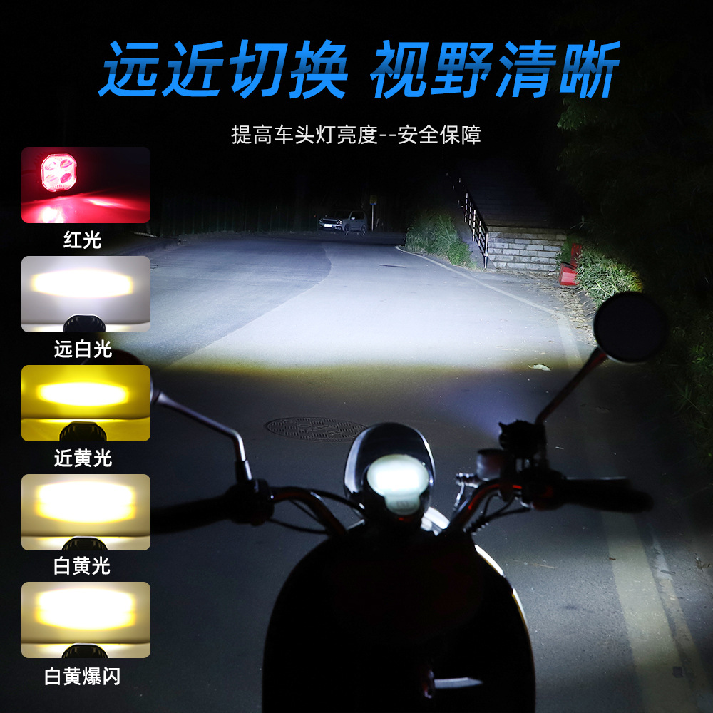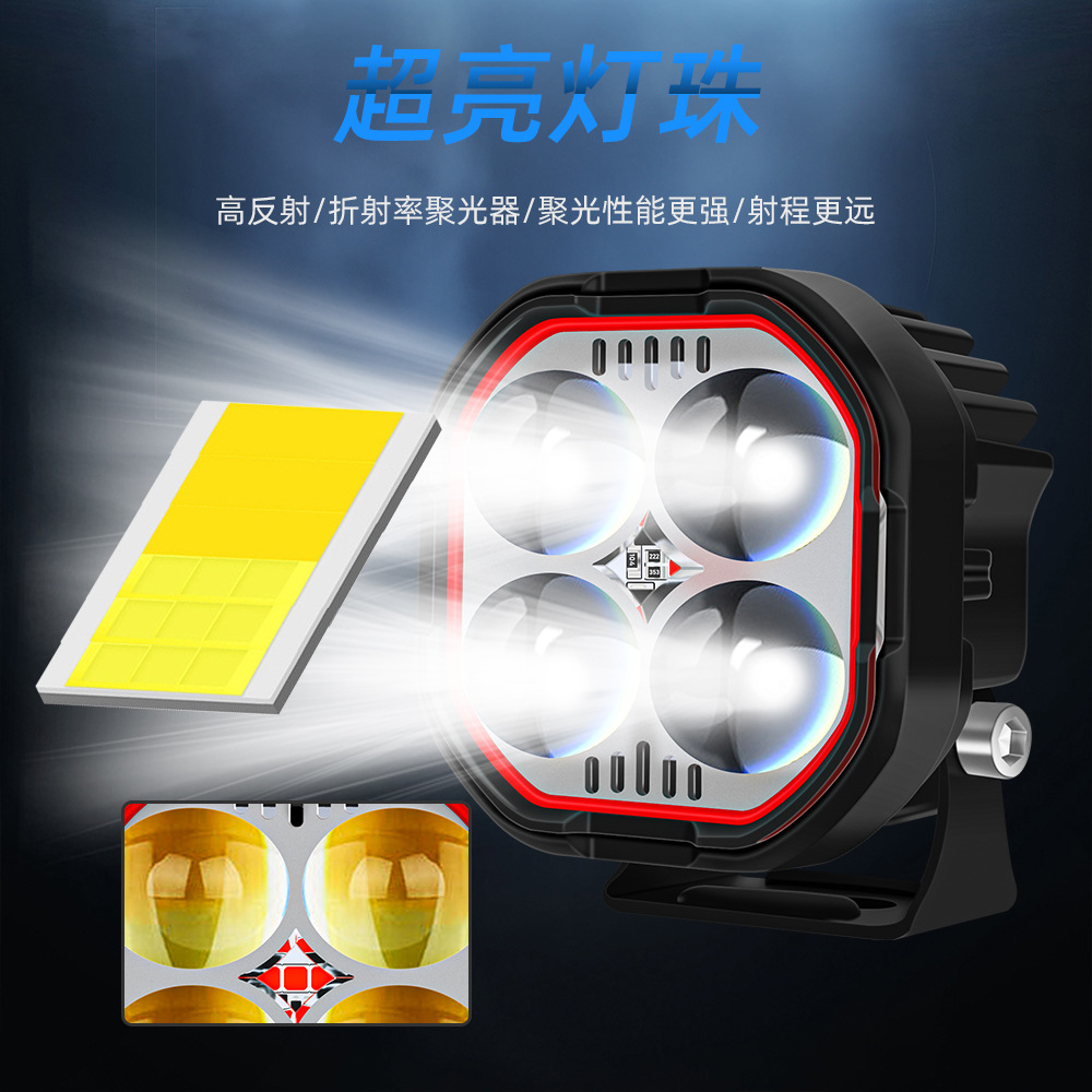 Высокояркий четырехлистный клевер, светодиодный прожектор для мотоцикла, белый, желтый, красный, вспышка, электромобиль, фара дальнего и ближнего света, внешняя фара