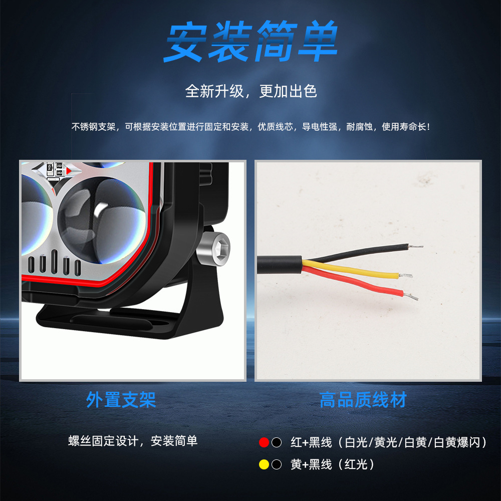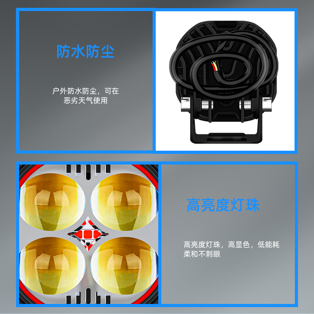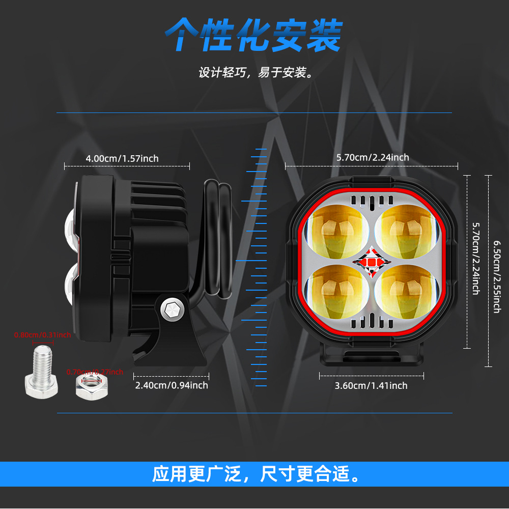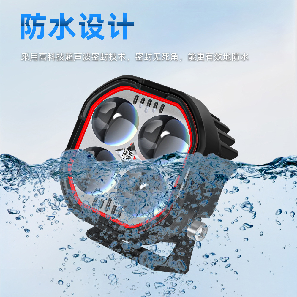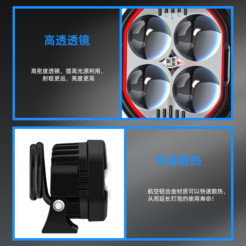 Высокояркий четырехлистный клевер, светодиодный прожектор для мотоцикла, белый, желтый, красный, вспышка, электромобиль, фара дальнего и ближнего света, внешняя фара