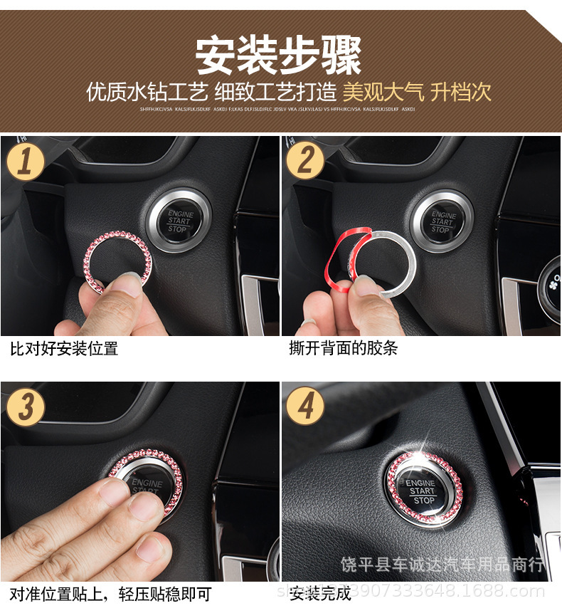 Автомобильная кнопка запуска Yijian, декоративное кольцо с бриллиантом, переключатель зажигания со стразами, декоративное кольцо зажигания, бриллиантовое кольцо, наклейка на сумку