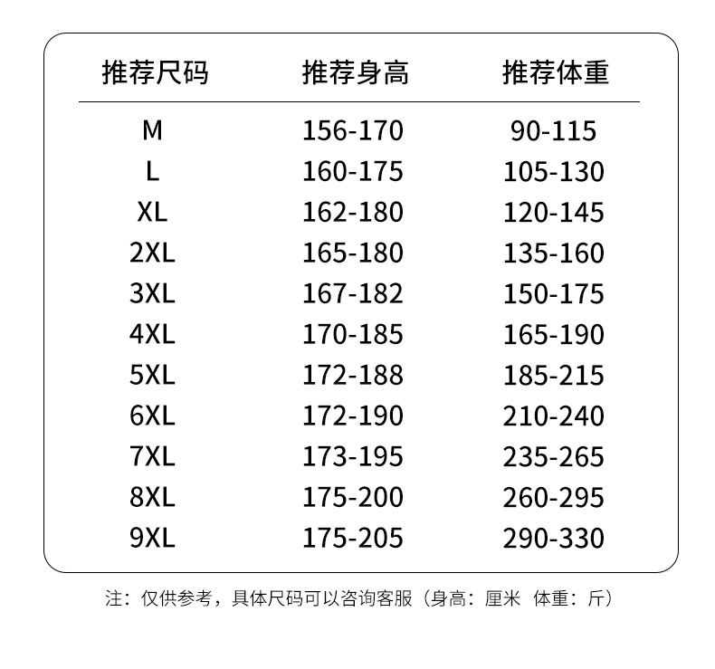 M; L; XL; 2XL; 3XL; 4XL; 5XL; 6XL; 7XL; 8XL; 9XL