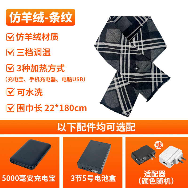 Серый шарф с USB-подогревом; Красный шарф с USB-подогревом; Черный шарф с USB-подогревом; Шарф Camel usb с подогревом; Серый флисовый трехскоростной шарф с регулируемой температурой и подогревом.; Черные флисовые капсулы, трехскоростной регулируемый по температуре шарф с подогревом; Серый искусственный кашемир, трехскоростной регулируемый по температуре нагревательный шарф; Черный шарф с подогревом из искусственного кашемира, трехскоростной регулируемый по температуре.; Полосатый шарф с имитацией кашемира, трехскоростной регулируемой температурой и подогревом.